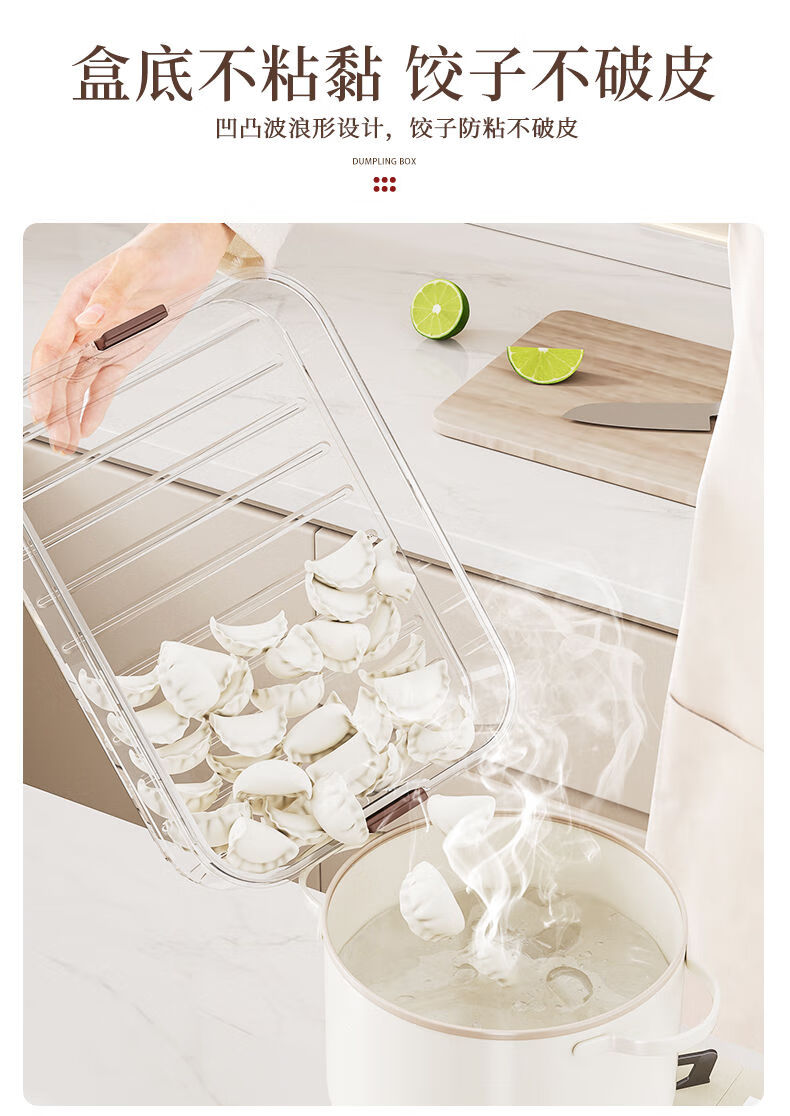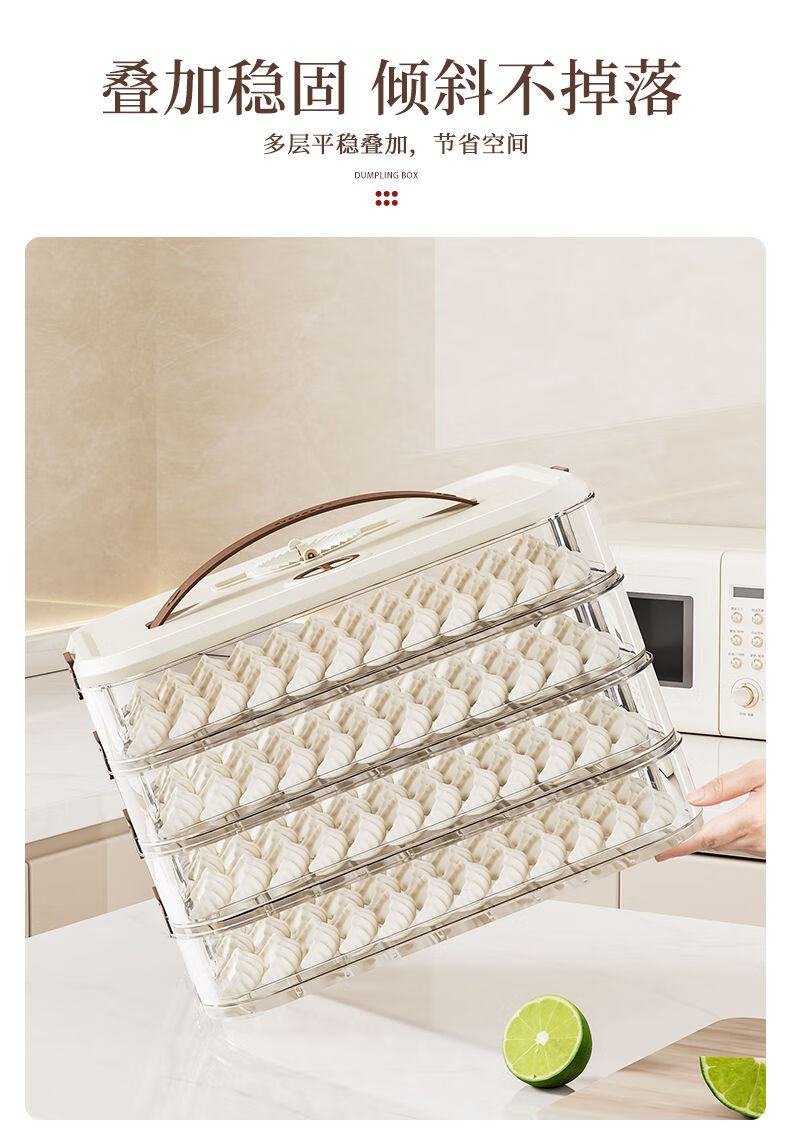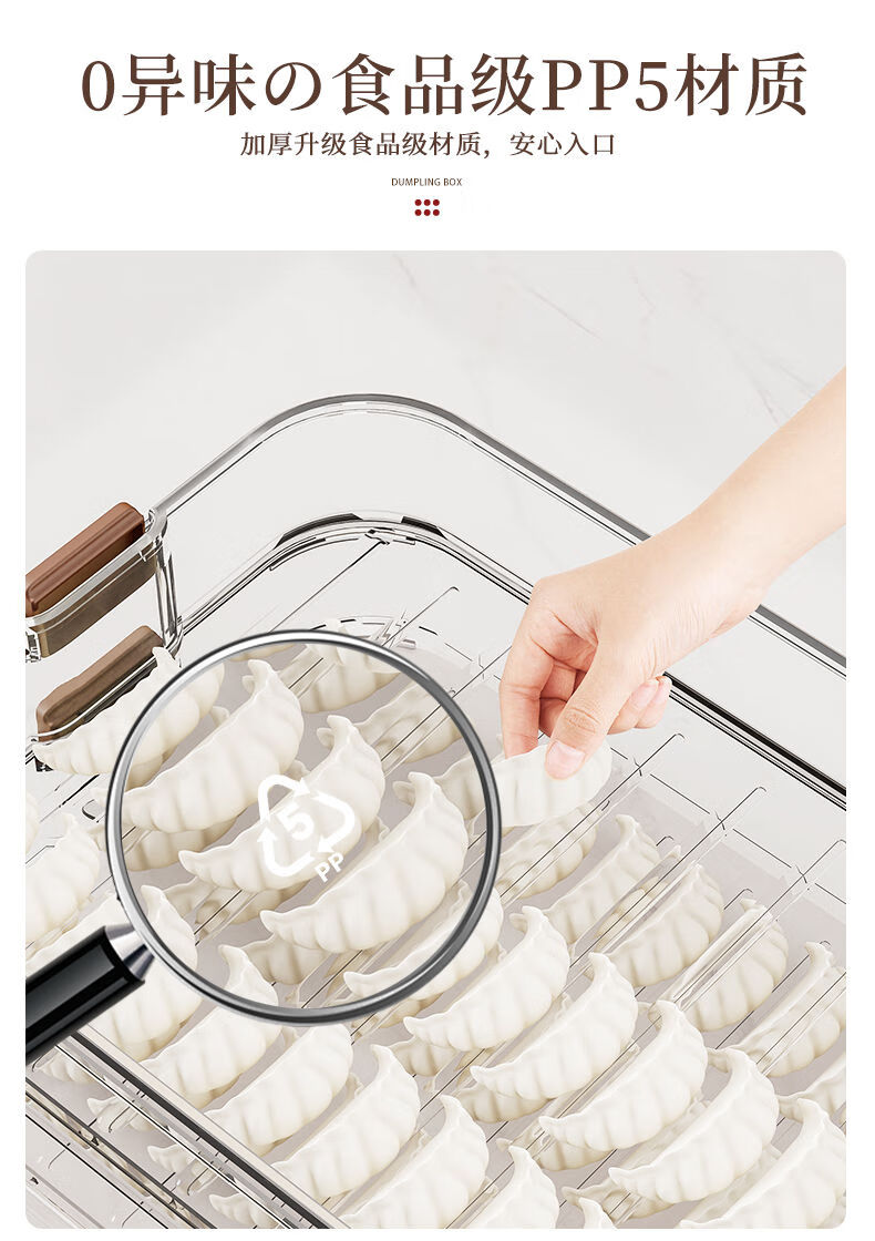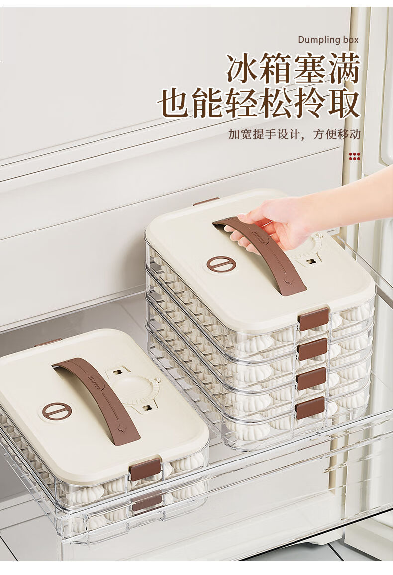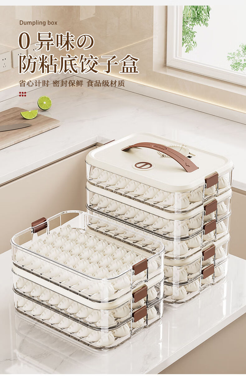 MEOD Japanese food-grade dumpling box refrigerator special storage box for keeping fresh wonton dumplings, food grade, 0 odor, free dumpling artifact, 3 layers, 1 cover, 210 pieces of water