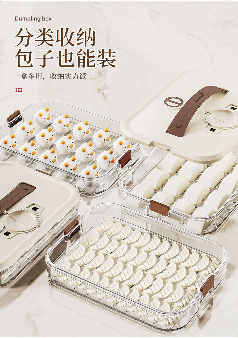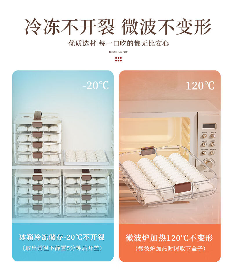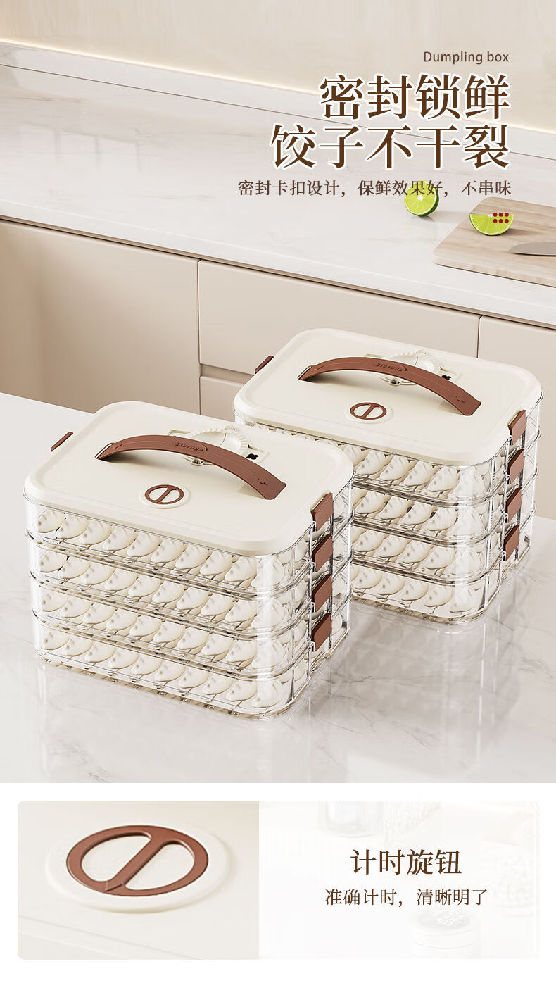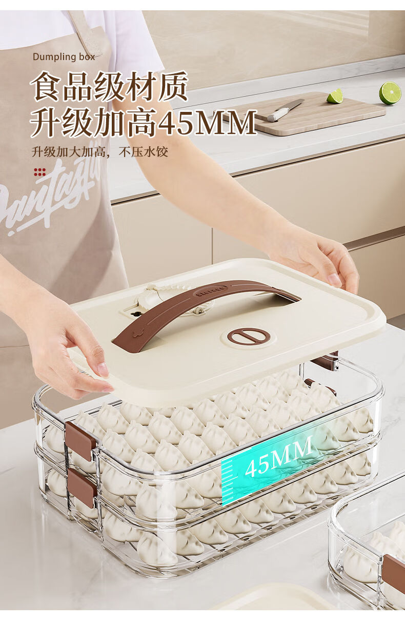 MEOD Japanese food-grade dumpling box refrigerator special storage box for keeping fresh wonton dumplings, food grade, 0 odor, free dumpling artifact, 3 layers, 1 cover, 210 pieces of water