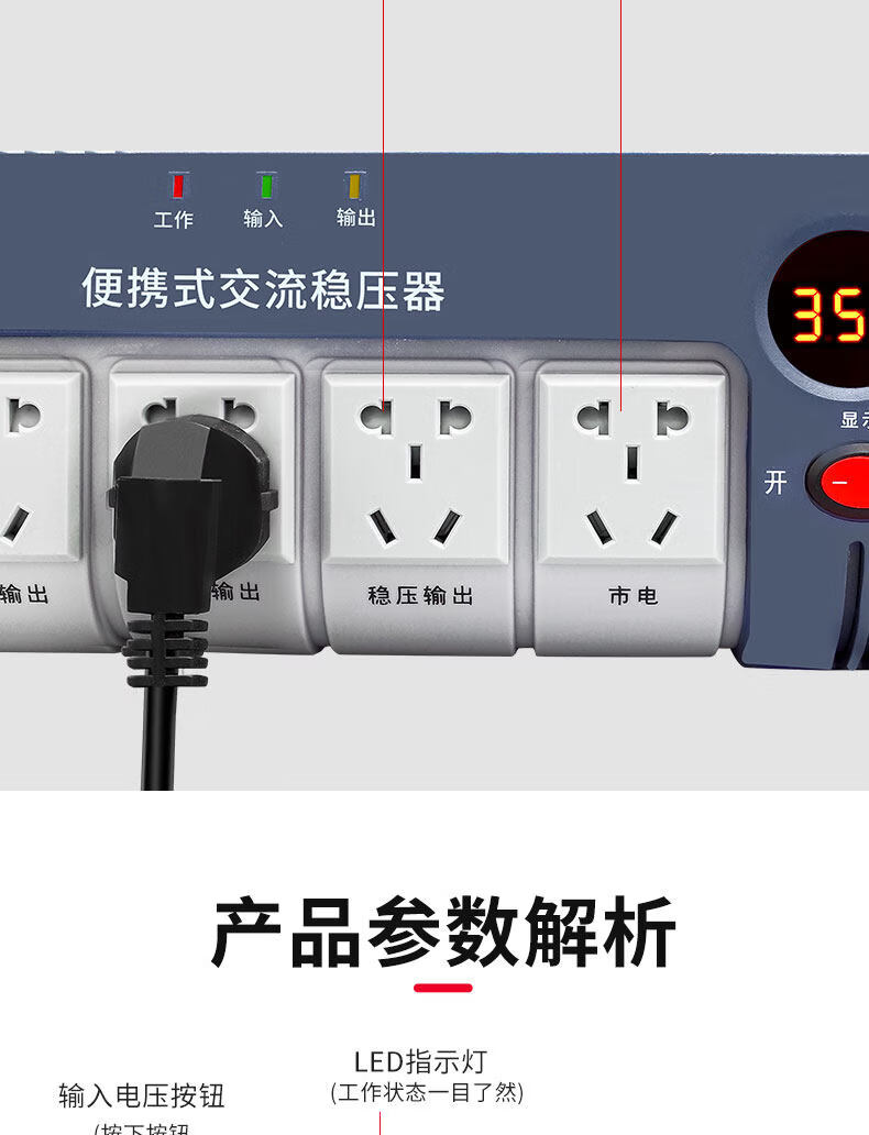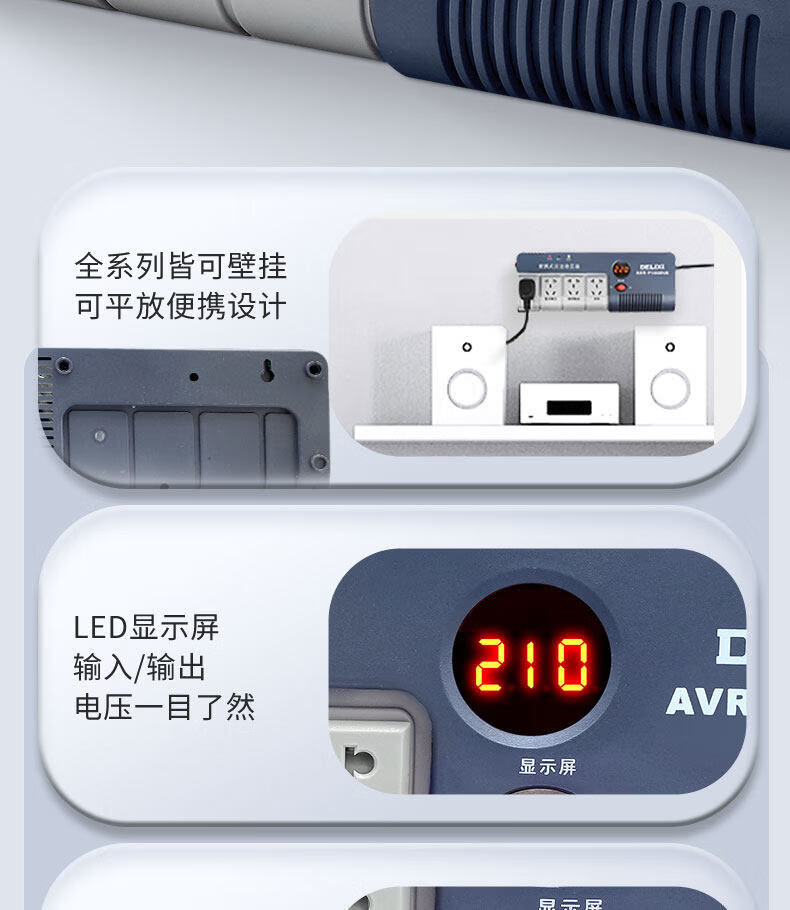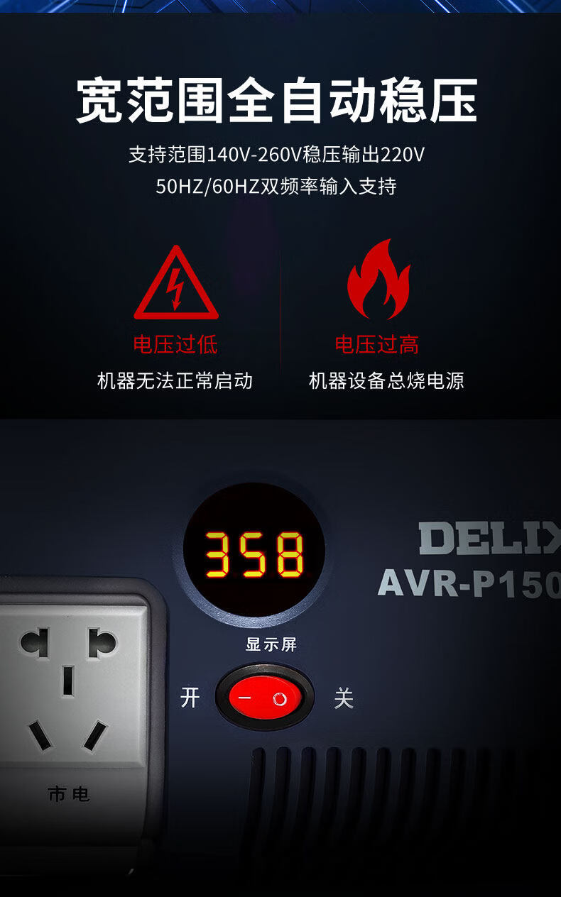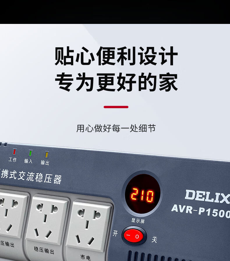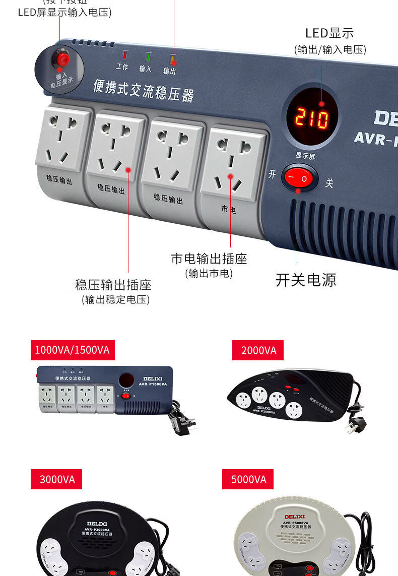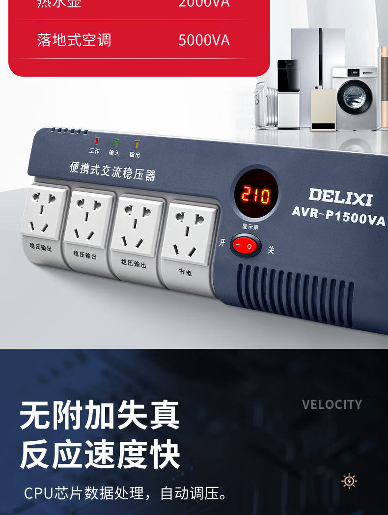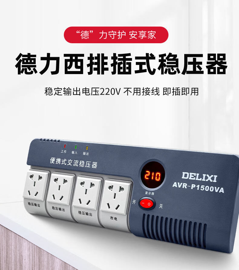 Delixi single-phase AC voltage regulator 220V fully automatic power socket strip 2000VA_AVRA2