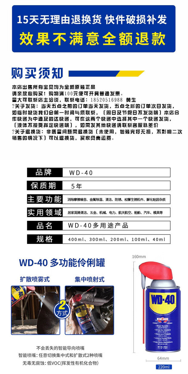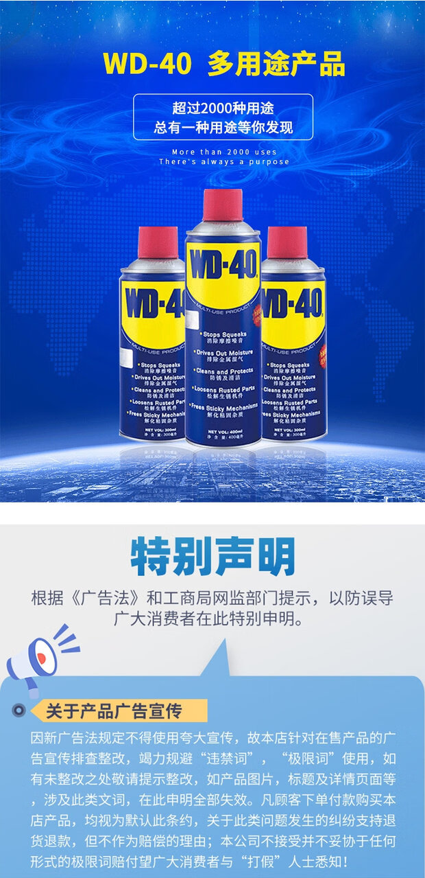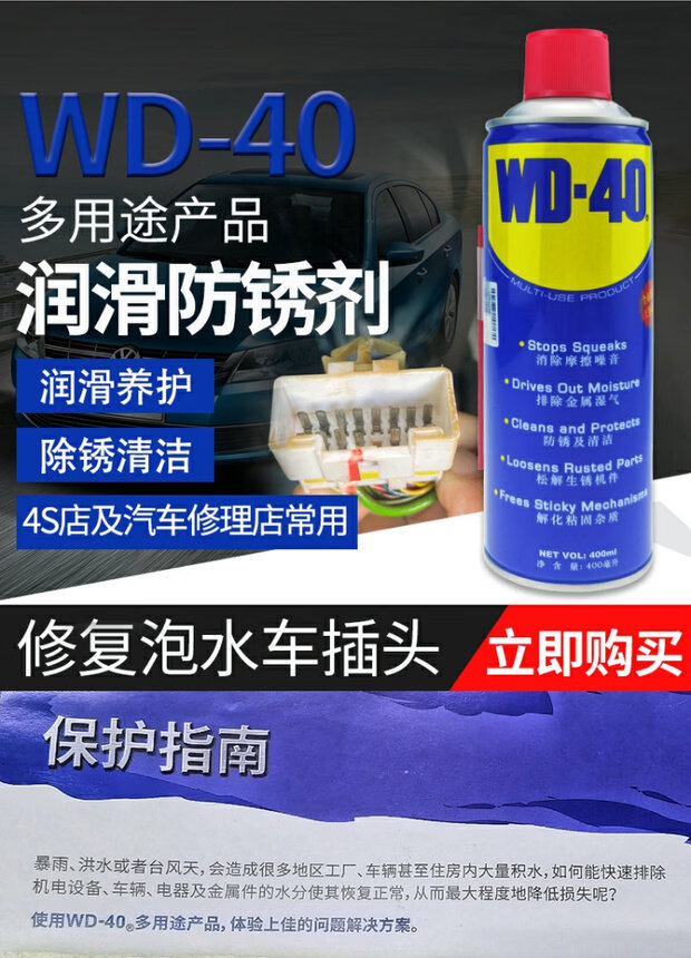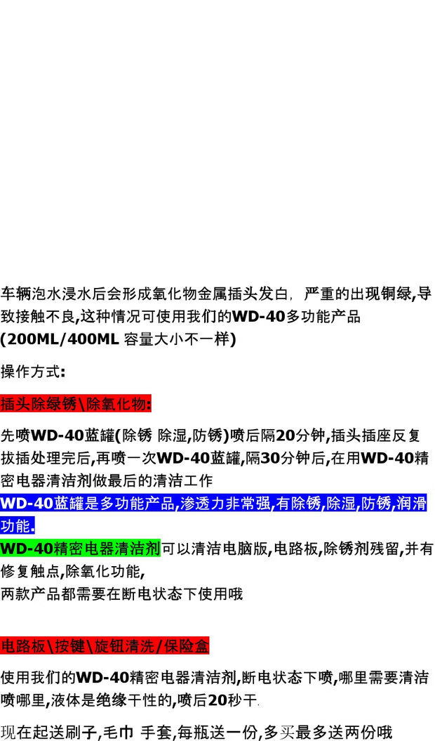 Imported from the United States, water-soaked car plug wire cleaning oxide copper-green rust removal rust-preventive agent WD-40_400ML+_Cleaning agent ()