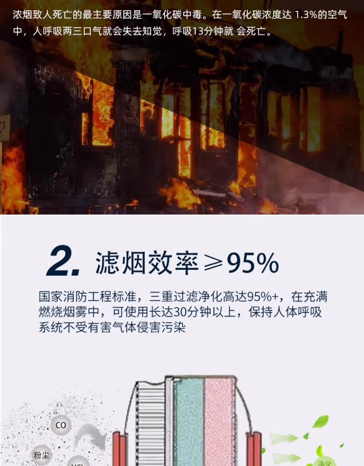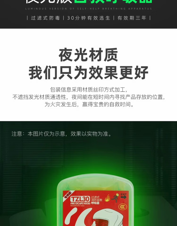 Fire mask, fire escape, filtered self-rescue respirator, fire-proof, smoke-proof, gas mask, fire-proof certificate bag set (upgraded luminous model) 1 pack, high-efficiency smoke filter, heat insulation and flame retardant