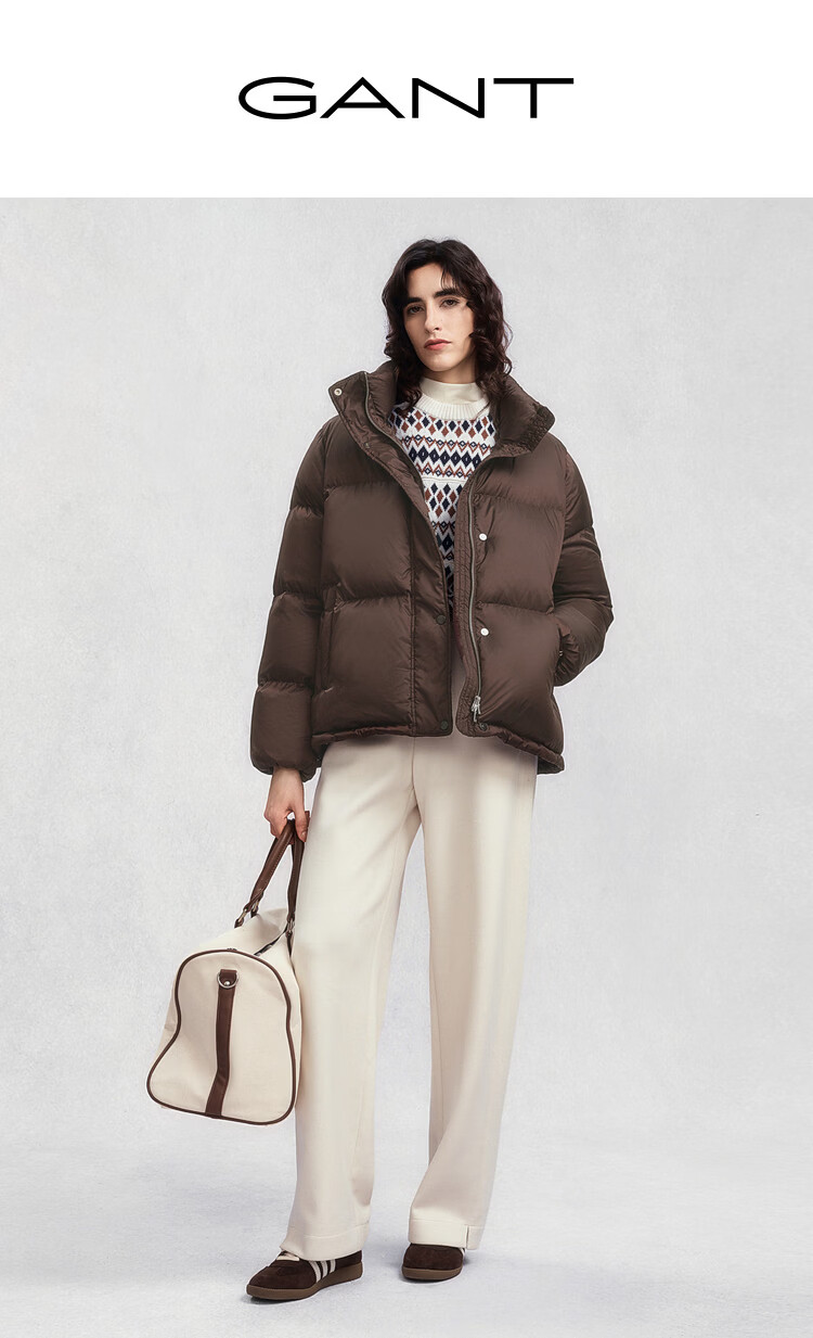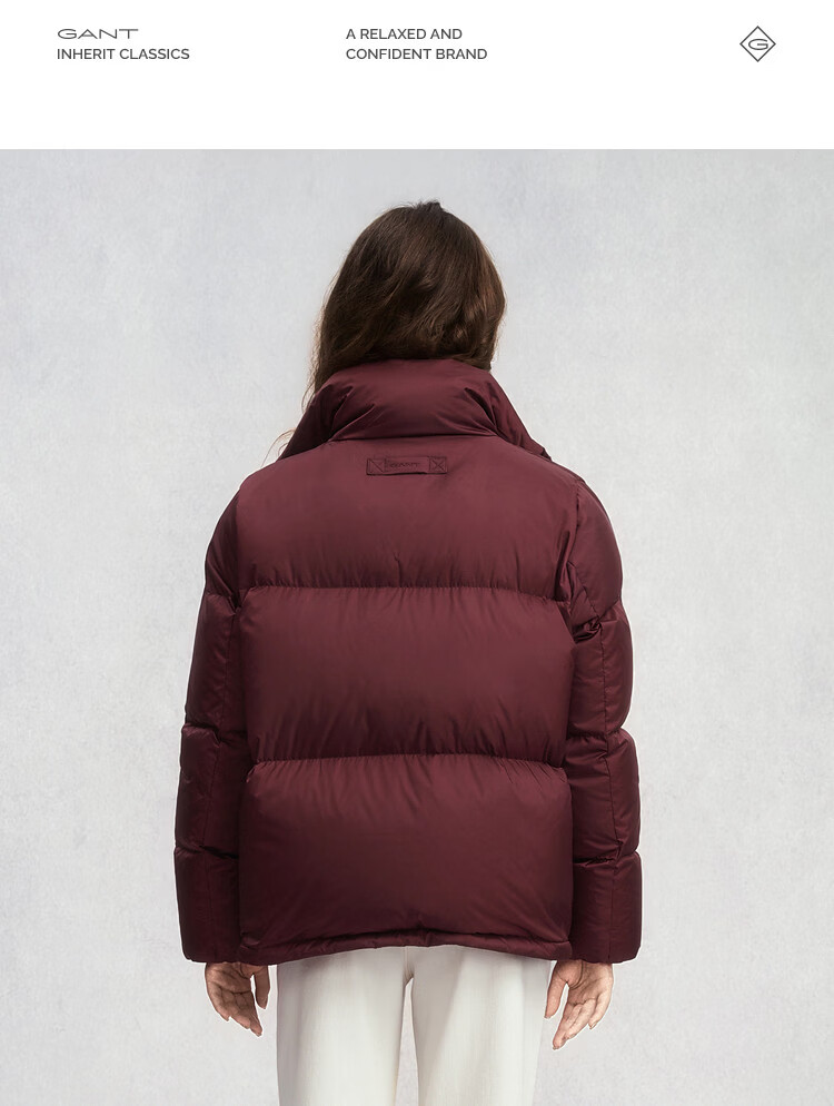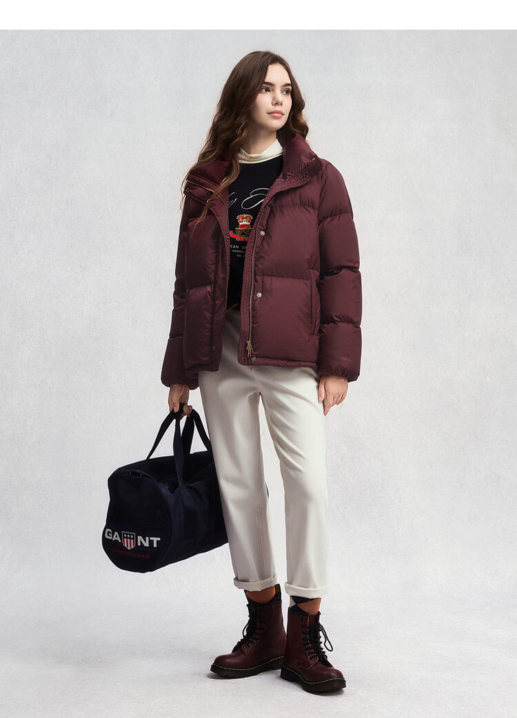 GANT2025 new winter women's short light warm bread coat fluffy and comfortable stand collar down jacket 509-burgundy S