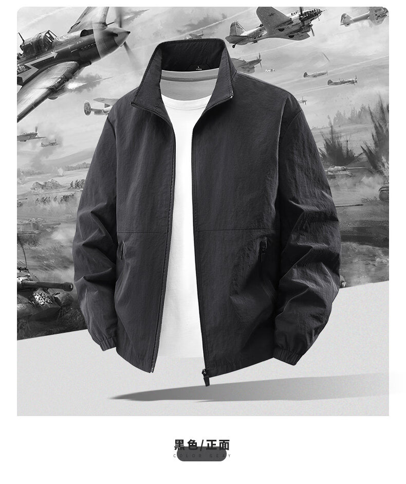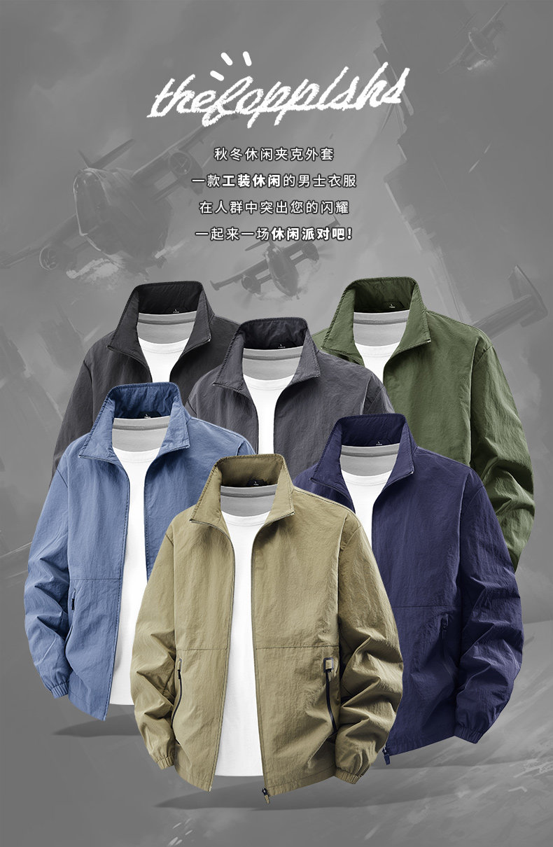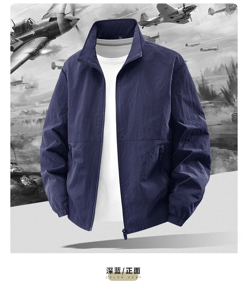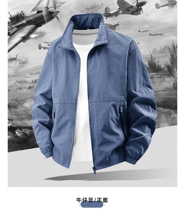 Hengyuanxiang Spring and Autumn Jacket Men's Stand Collar Jacket Loose Casual Men's Outdoor Sports Jacket Workwear Windproof Clothes Denim Blue 2XL