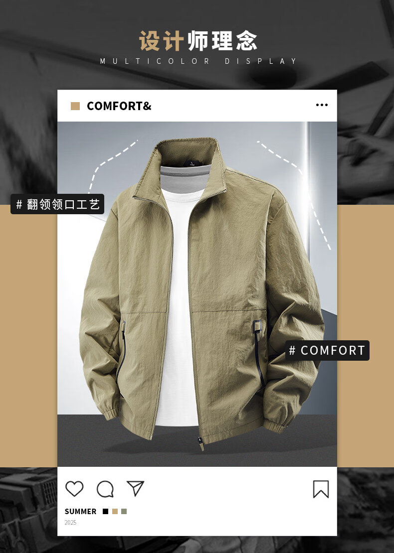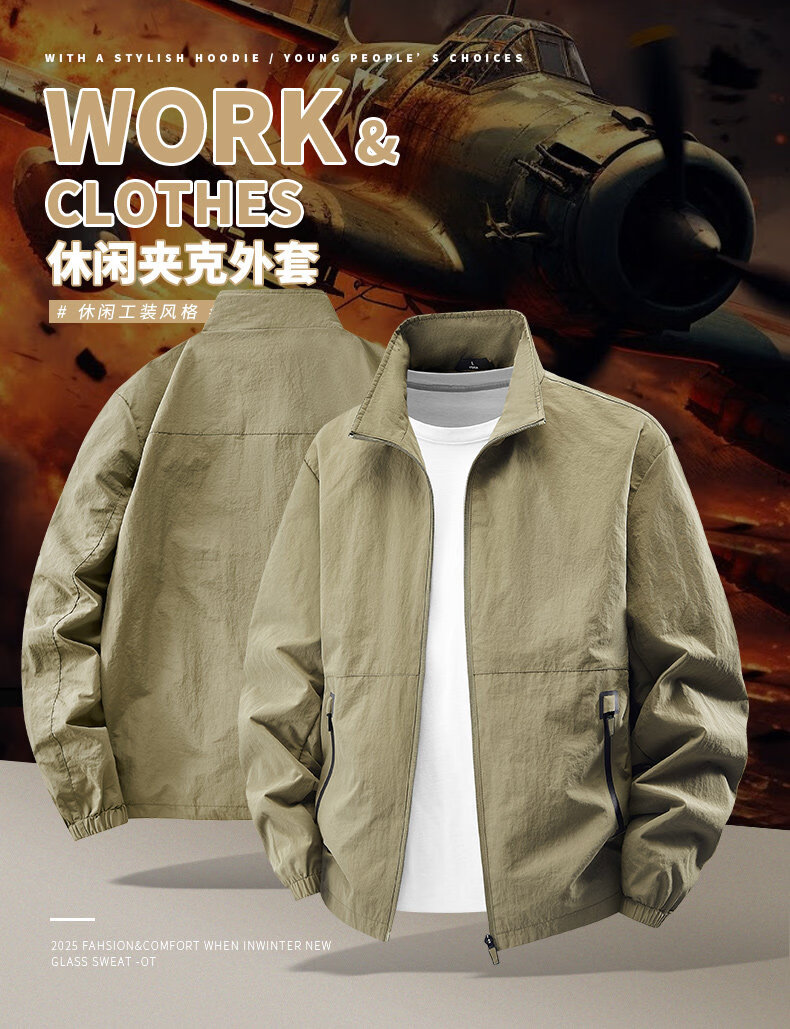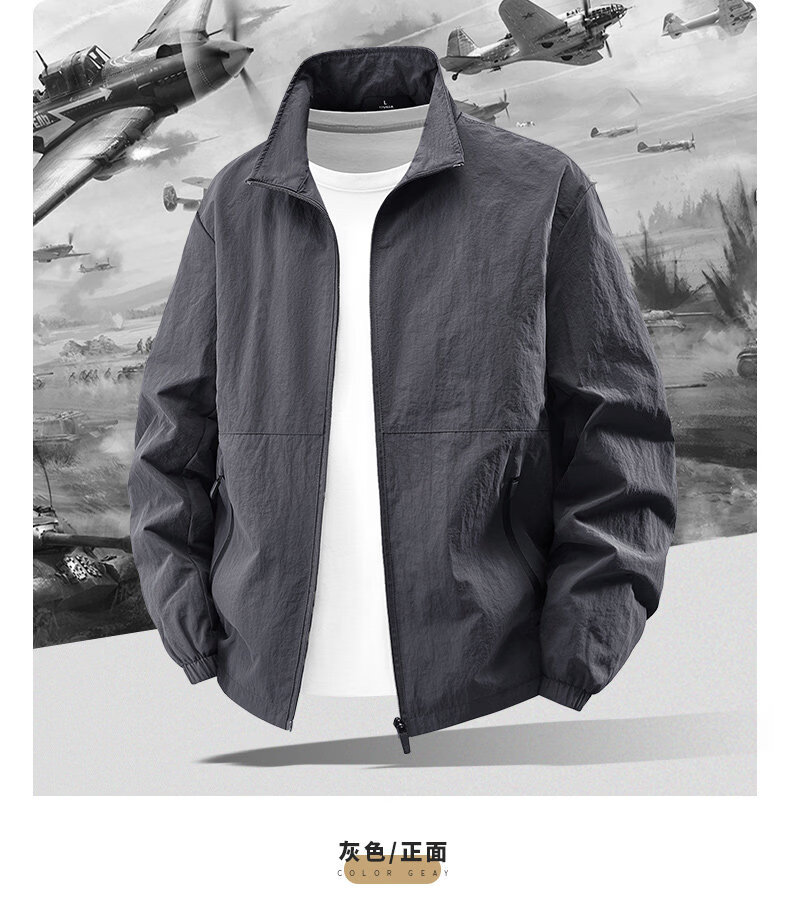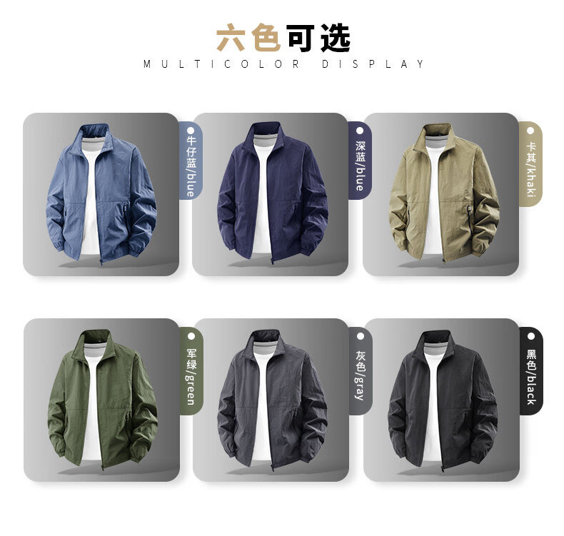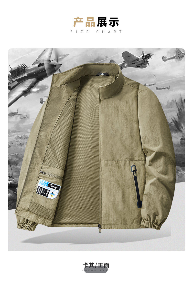 Hengyuanxiang Spring and Autumn Jacket Men's Stand Collar Jacket Loose Casual Men's Outdoor Sports Jacket Workwear Windproof Clothes Denim Blue 2XL