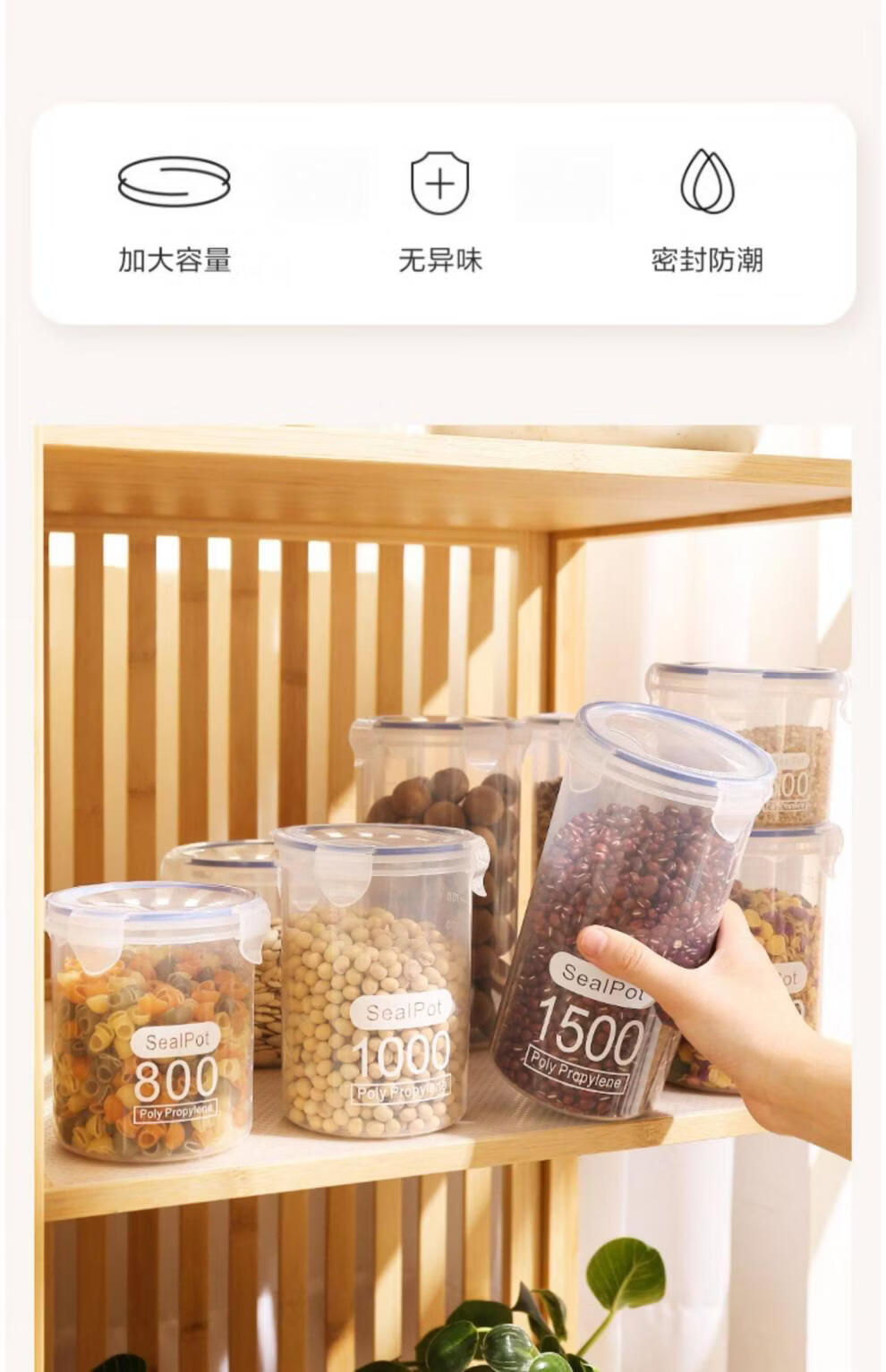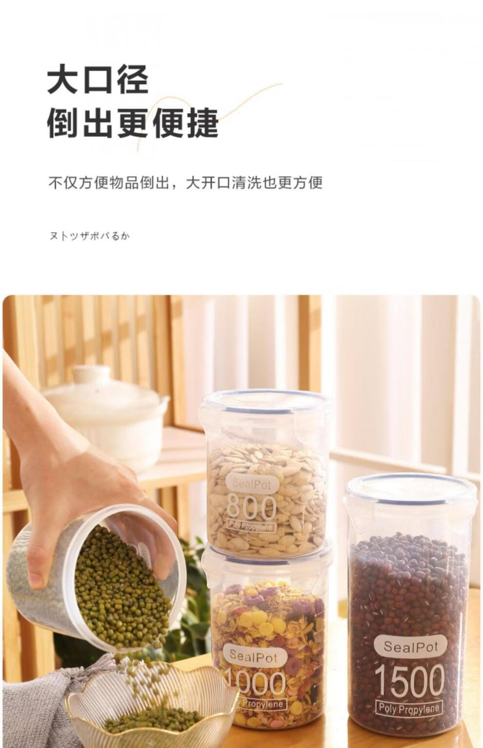 Tuojin imported quality kitchen sealed jars from Germany, plastic food jars, storage jars, storage jars, grain kitchen, large size 1000ml, 1 pack
