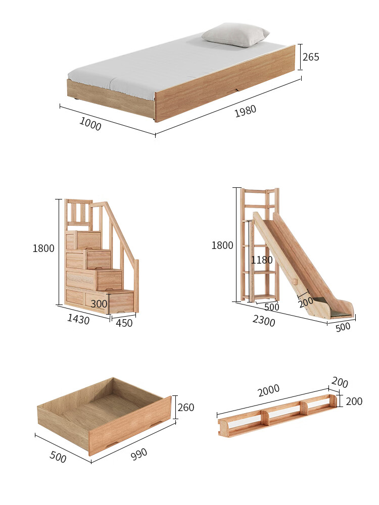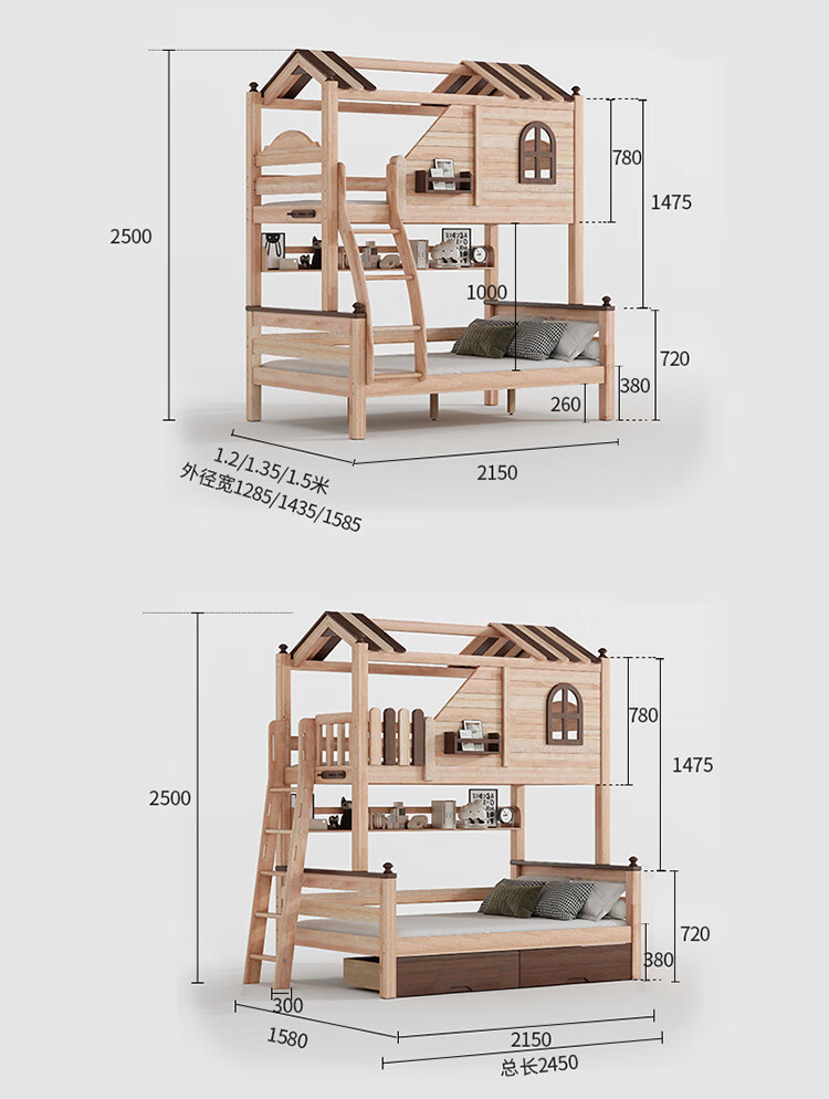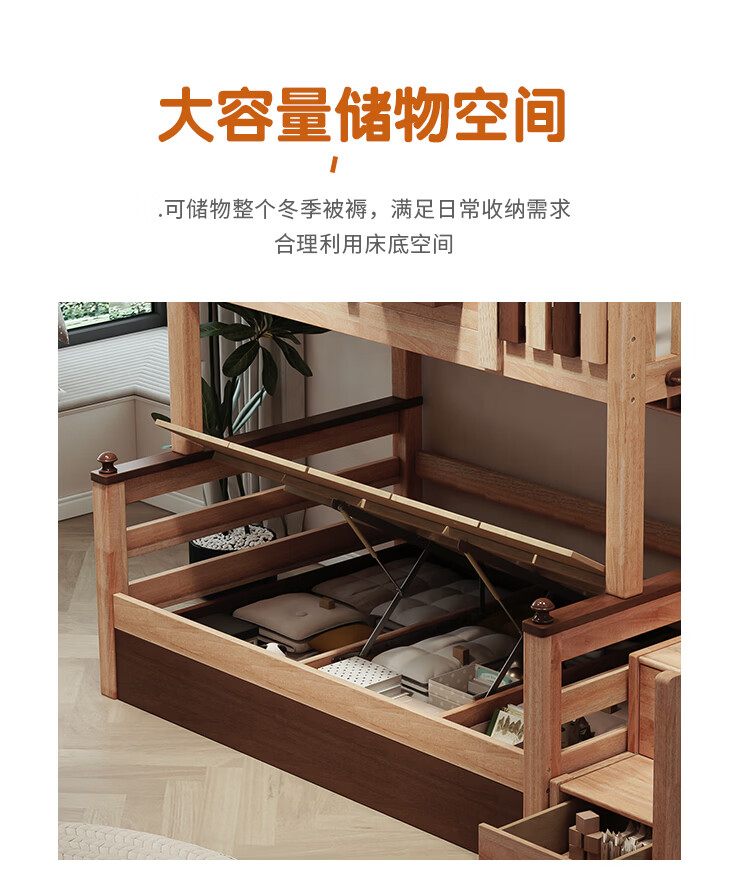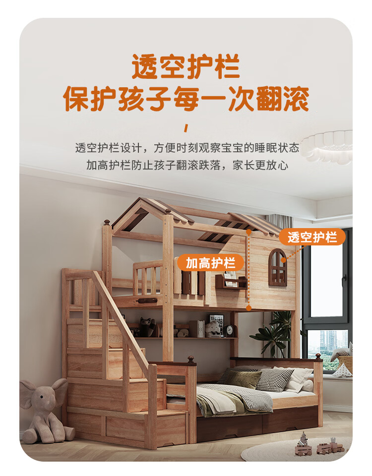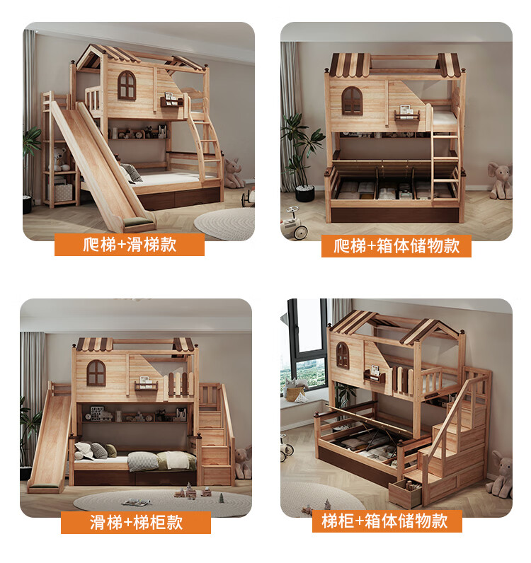 Children's solid wood high and low bed with slide and ladder cabinet, customized tree house bed and lower bed, red sandalwood, all solid wood storage, tree house upper and lower bed + ladder 1350mm*2000mm