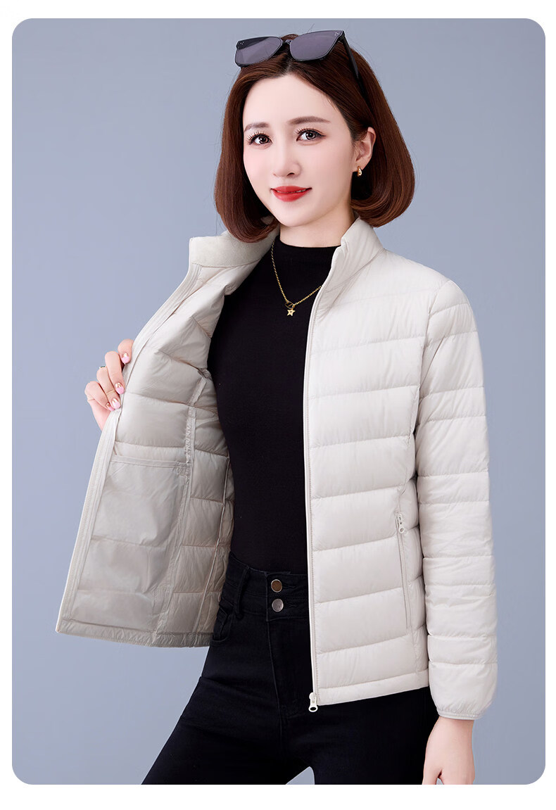 Hengyuanxiang Down Jacket Women's 2026 New Winter White Duck Down Slim Little Man Hat Mom Short Wine New Year Qiji Beige High Quality L 105-115 Jin