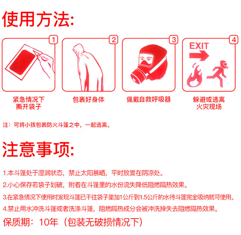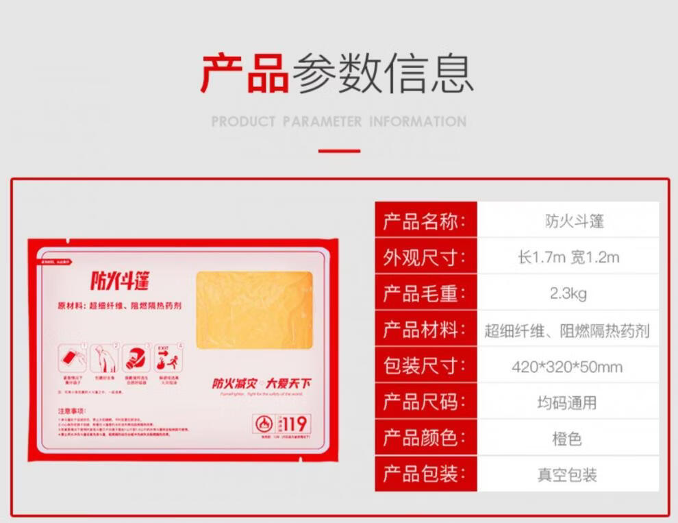 Yuanbang Fireproof Cloak Cloak Household Fire Blanket Flame Retardant Insulated Escape Blanket Wet Emergency Practical Orange Fire Escape Cloak Flame Retardant Insulated Home Escape
