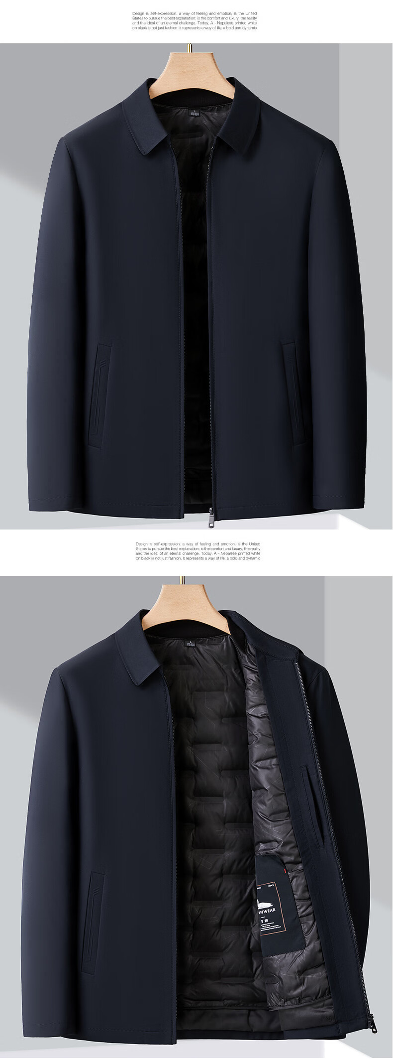 KBXNG Jinba middle-aged and elderly down jacket men's lapel removable inner liner thickened jacket dad winter white duck down anti-cold 32133 Navy blue (removable inner liner) M 170/48