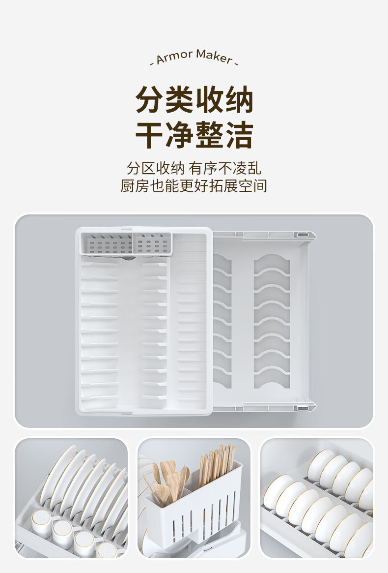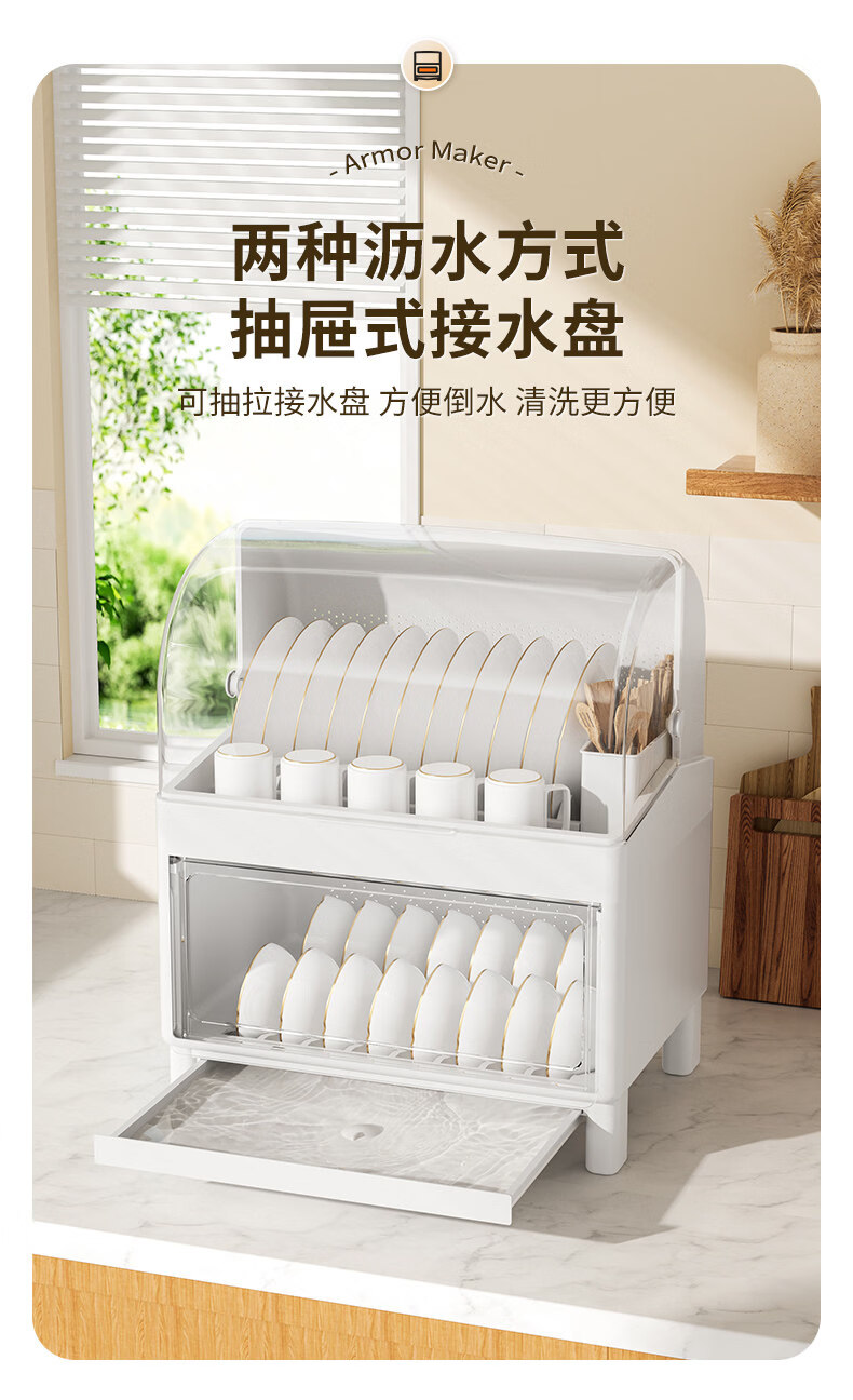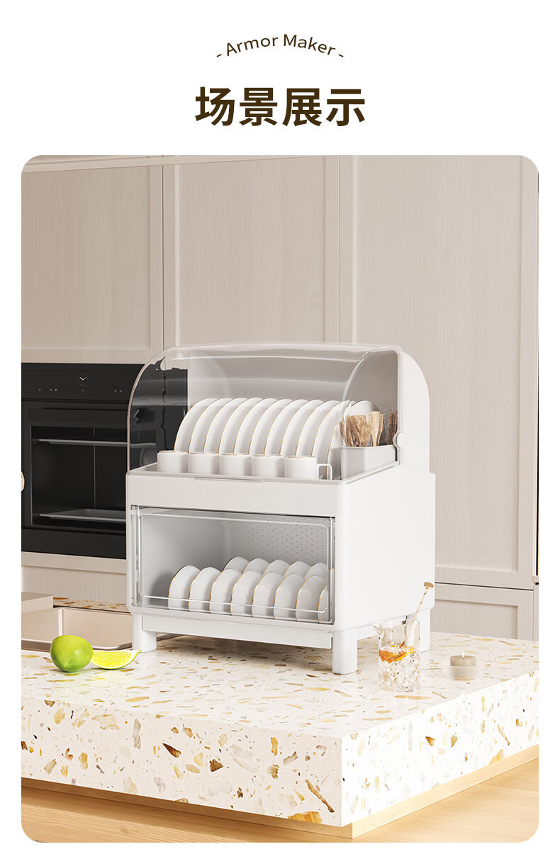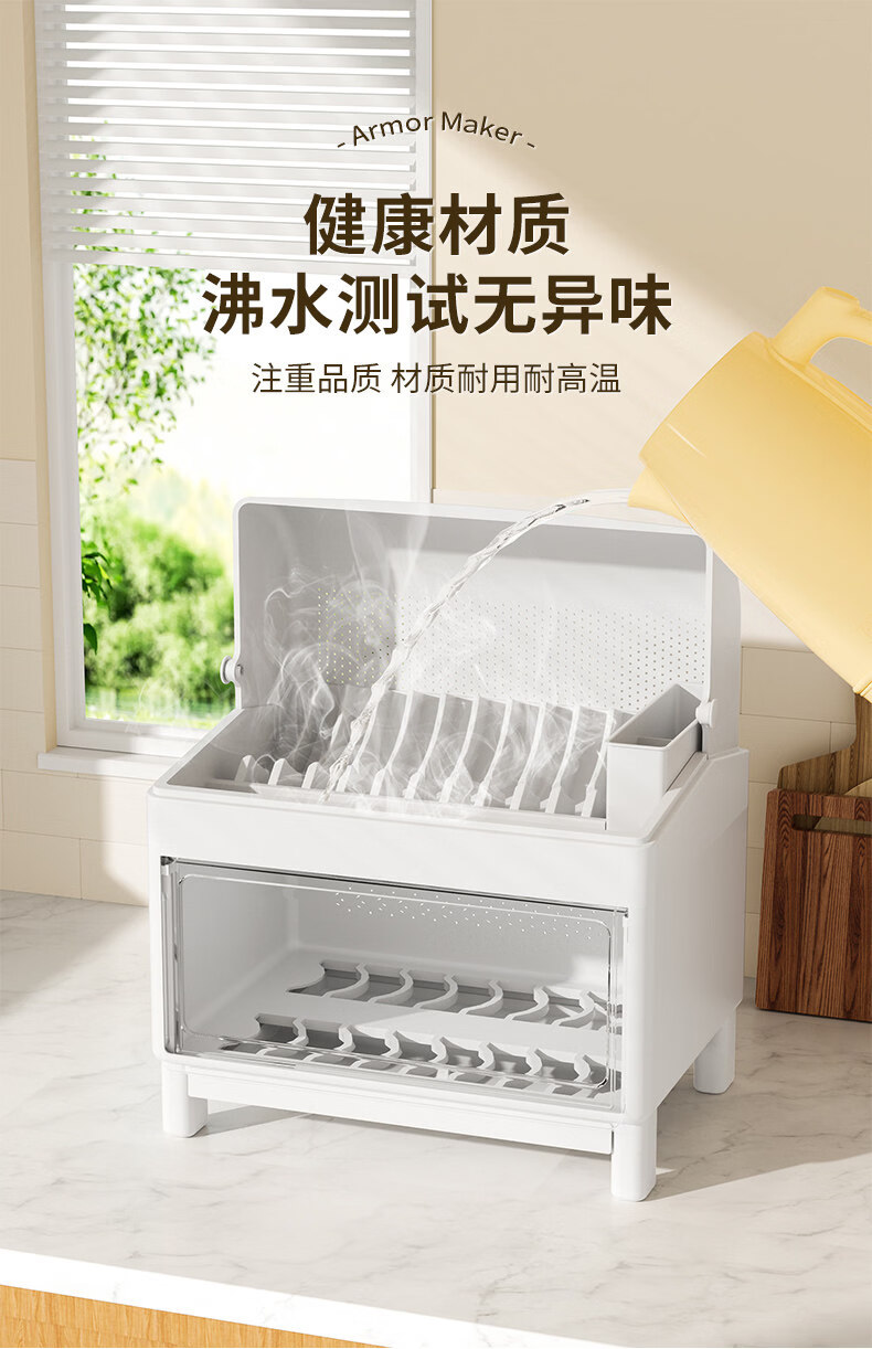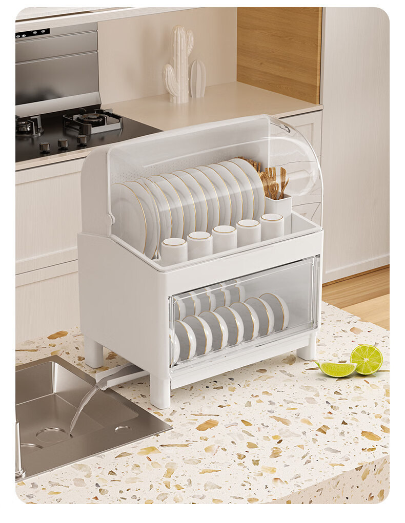 Tuojin German imported high-quality kitchen dish rack and chopsticks storage box with lid for tableware, bowls and dishes, drain rack, luxury double-layered high-looking green, high, damage guarantee