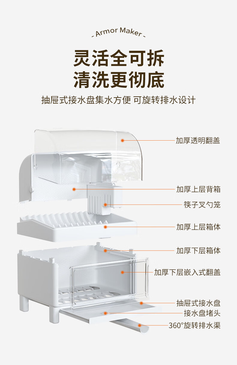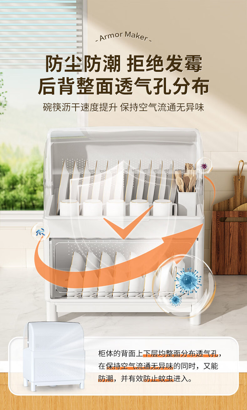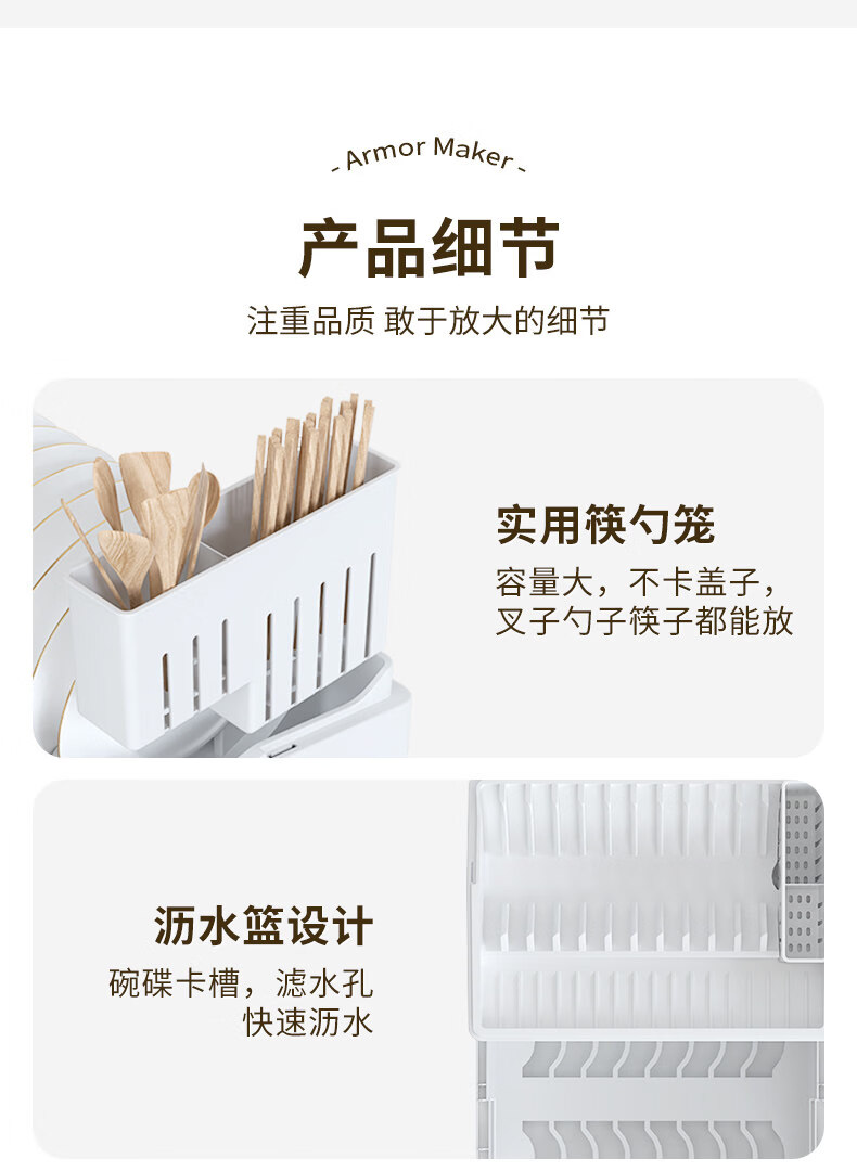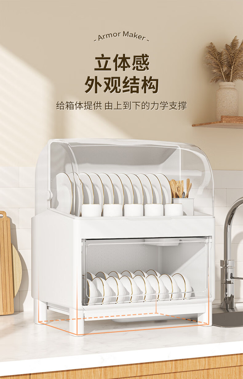 Tuojin German imported high-quality kitchen dish rack and chopsticks storage box with lid for tableware, bowls and dishes, drain rack, luxury double-layered high-looking green, high, damage guarantee