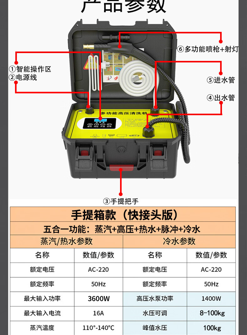 Yonghuan Air Conditioning Cleaning Machine High Temperature and High Pressure Steam Cleaning Machine Home Appliance Cleaning Machine Multifunctional All-in-One Range Hood Equipment 100kg High Pressure + Standard Gift Pack + Ozone + Trolley Style Package