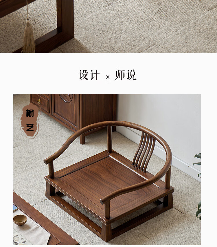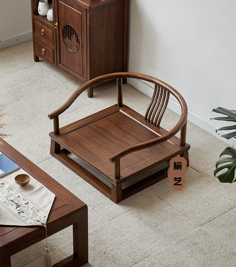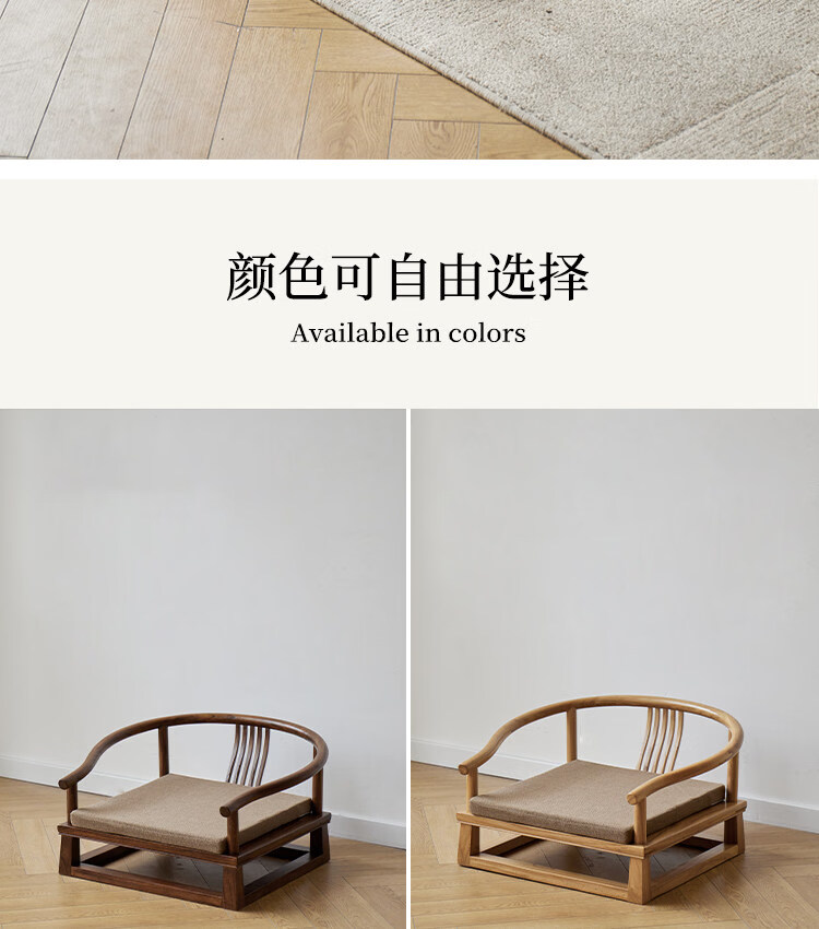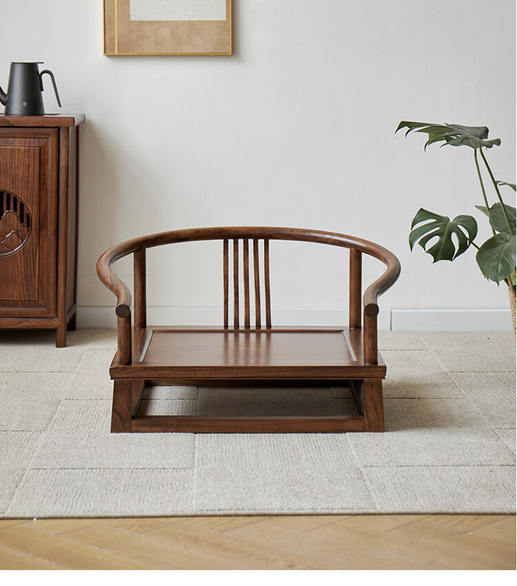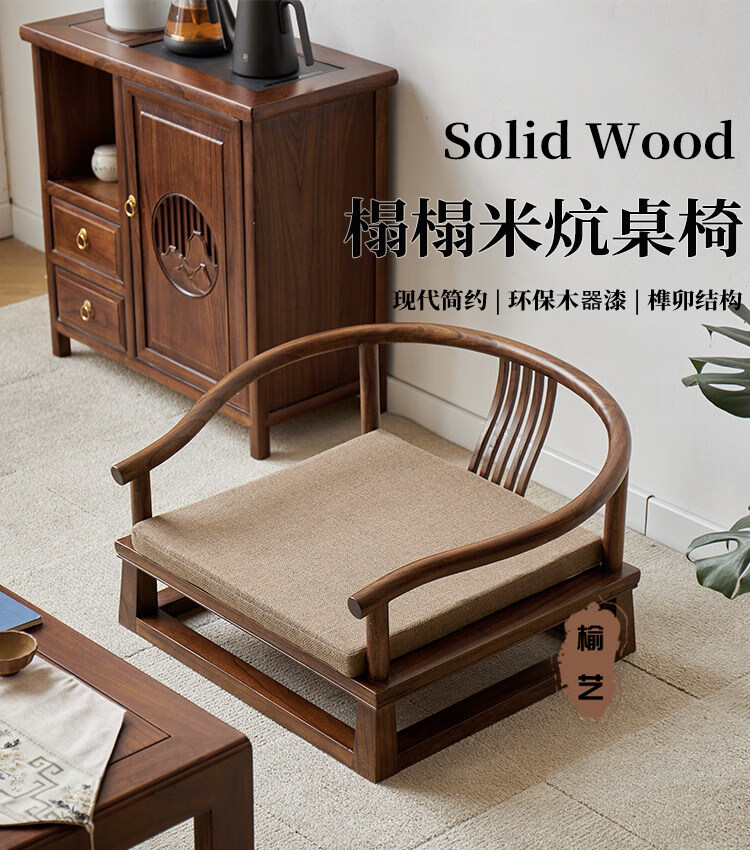 He Jiagong solid wood new Chinese style tatami chair low chair bay window chair Japanese style balcony meditation chair legless back chair tea table chair solid wood color sitting height 15 free seat cushion complete set