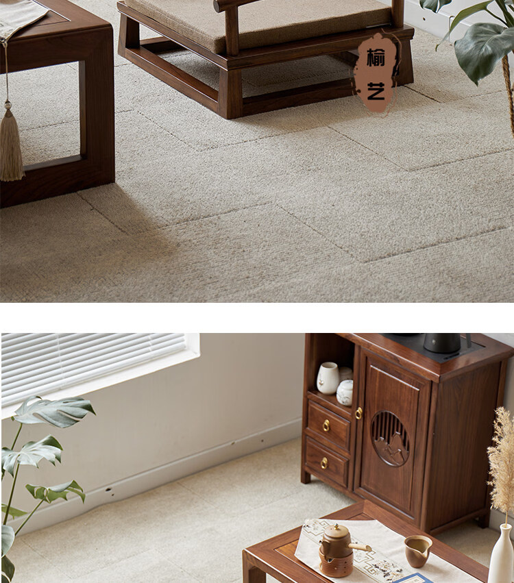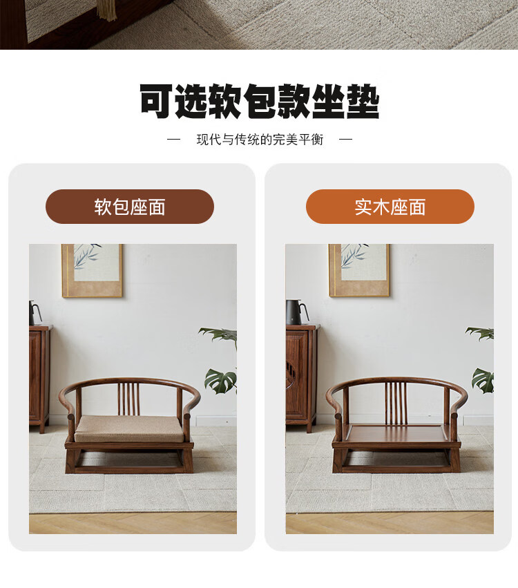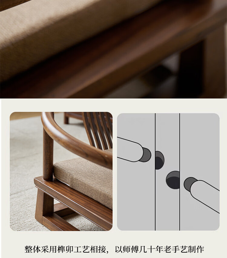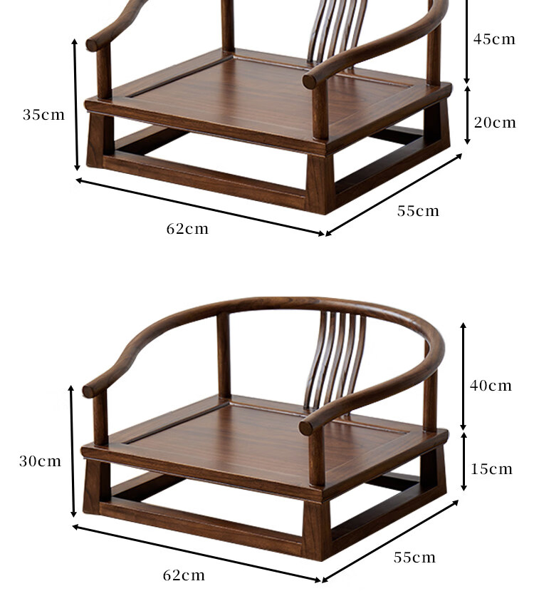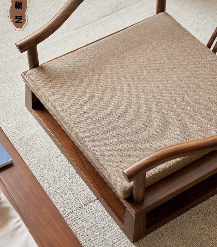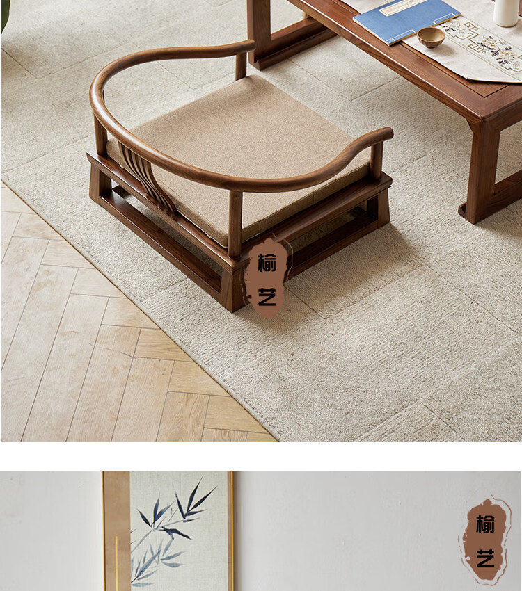 He Jiagong solid wood new Chinese style tatami chair low chair bay window chair Japanese style balcony meditation chair legless back chair tea table chair solid wood color sitting height 15 free seat cushion complete set