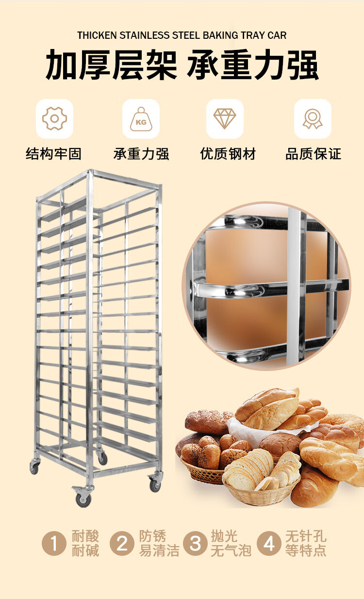 Stainless steel baking pan rack 60x40 commercial aluminum alloy baking bread rack car height ratio t95 oven rack storage rack 12-layer sheet style