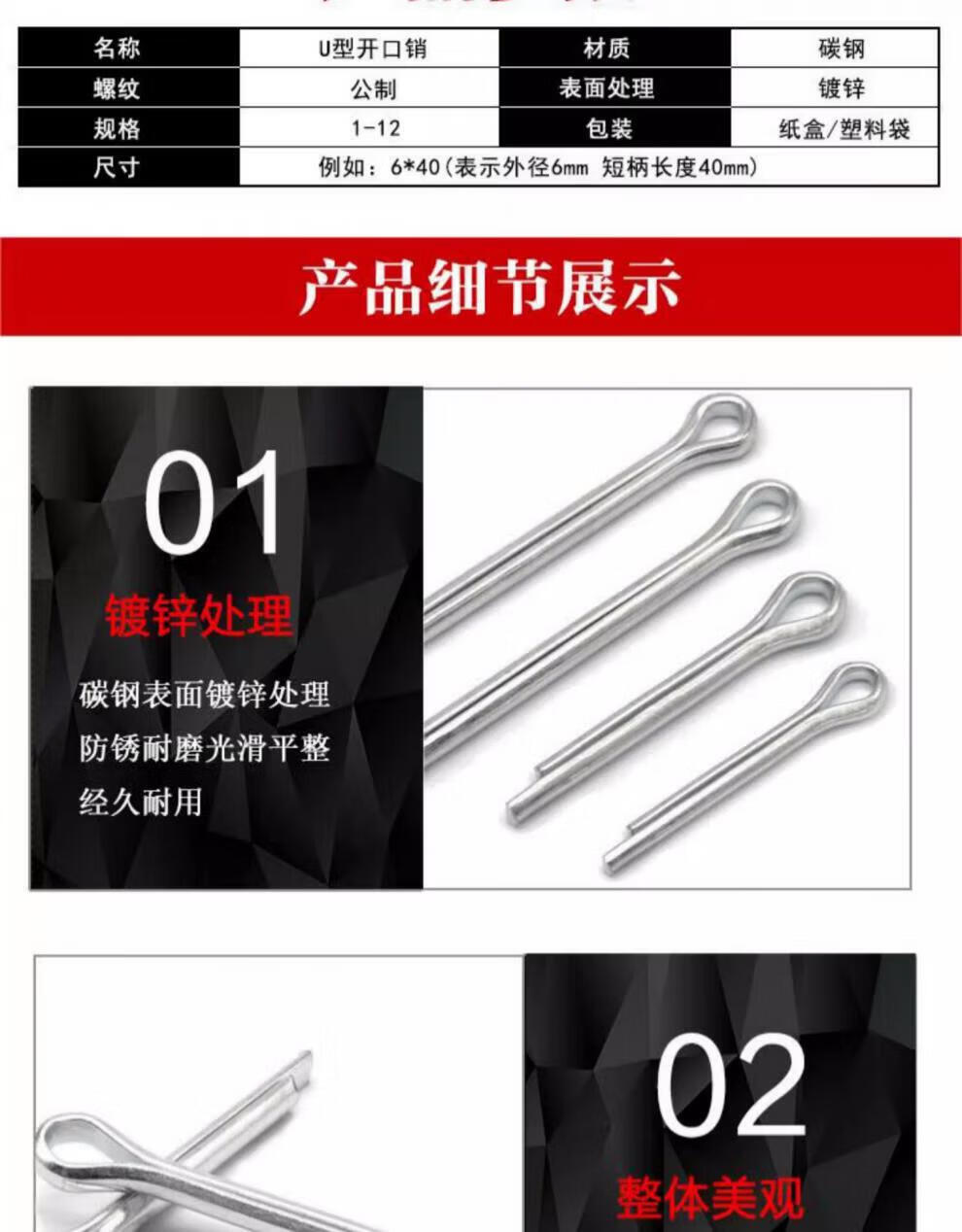 Xu custom iron galvanized split pin hairpin pin-shaped pin bayonet latch 1*6 (1000 pieces)