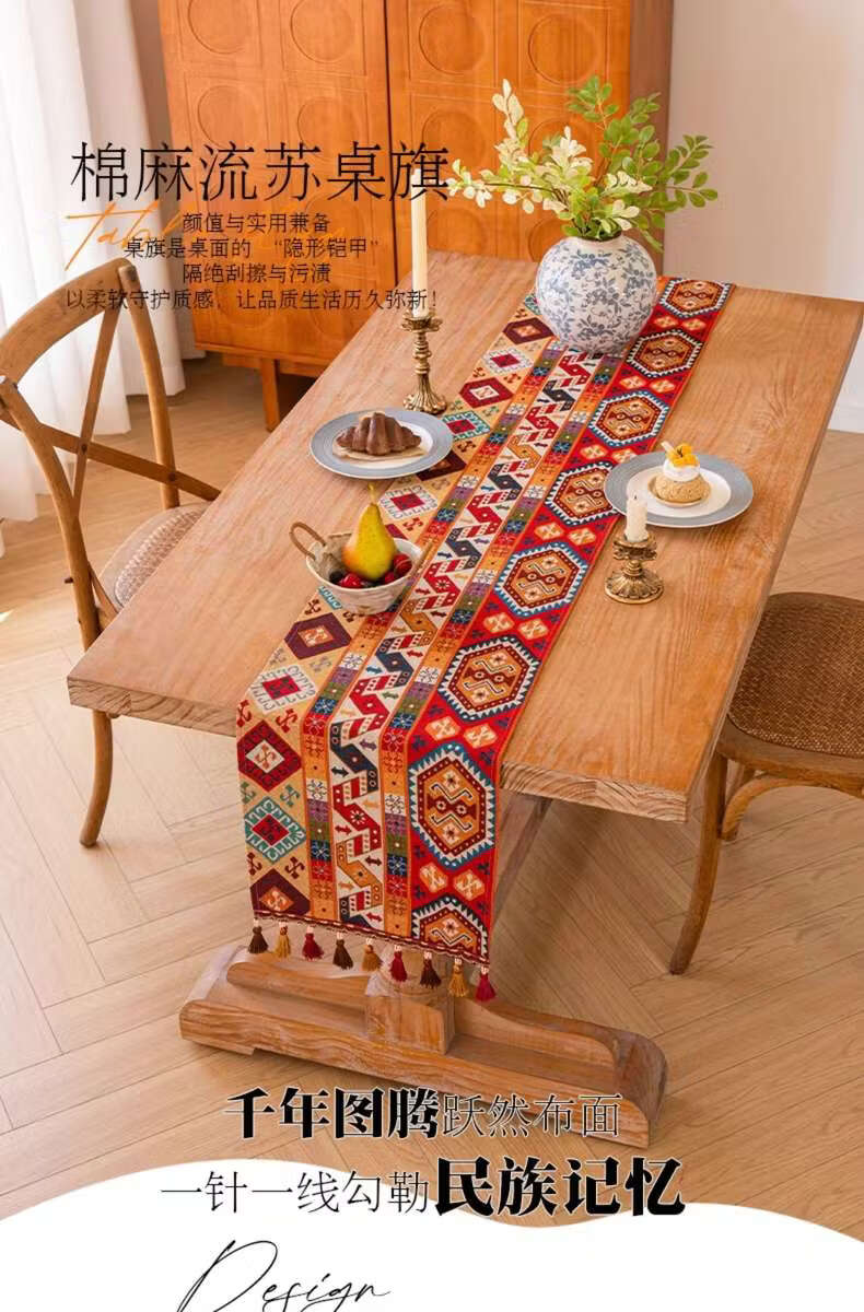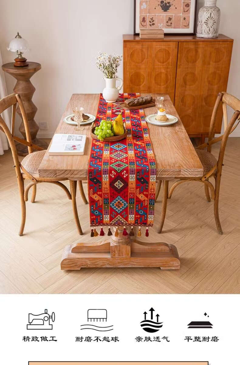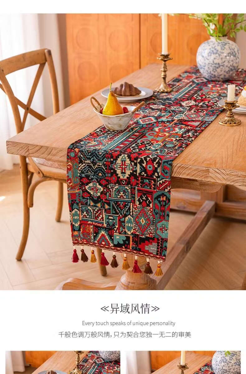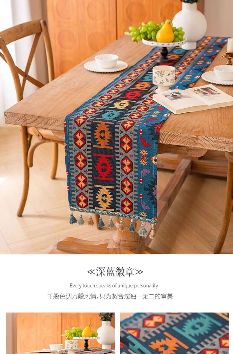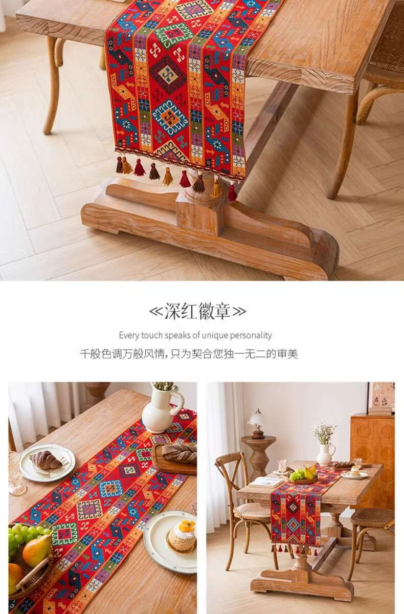 Fantasy table flag style tablecloth coffee table TV cabinet sideboard shoe cabinet decorative cover cloth dark red badge 33x220cm