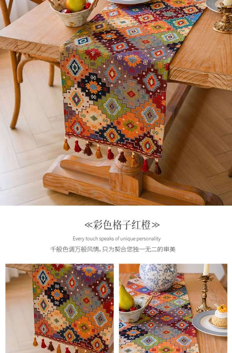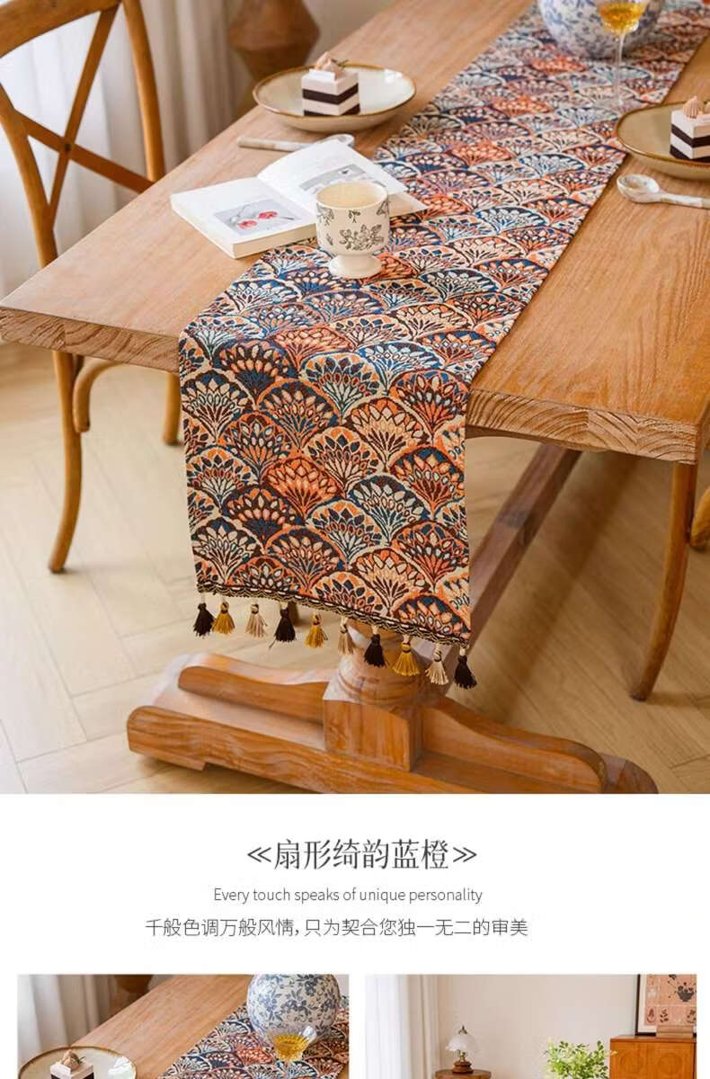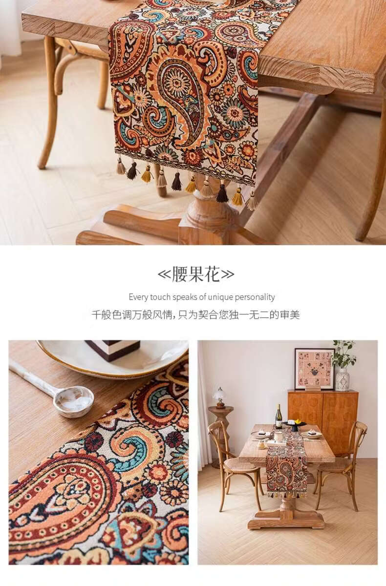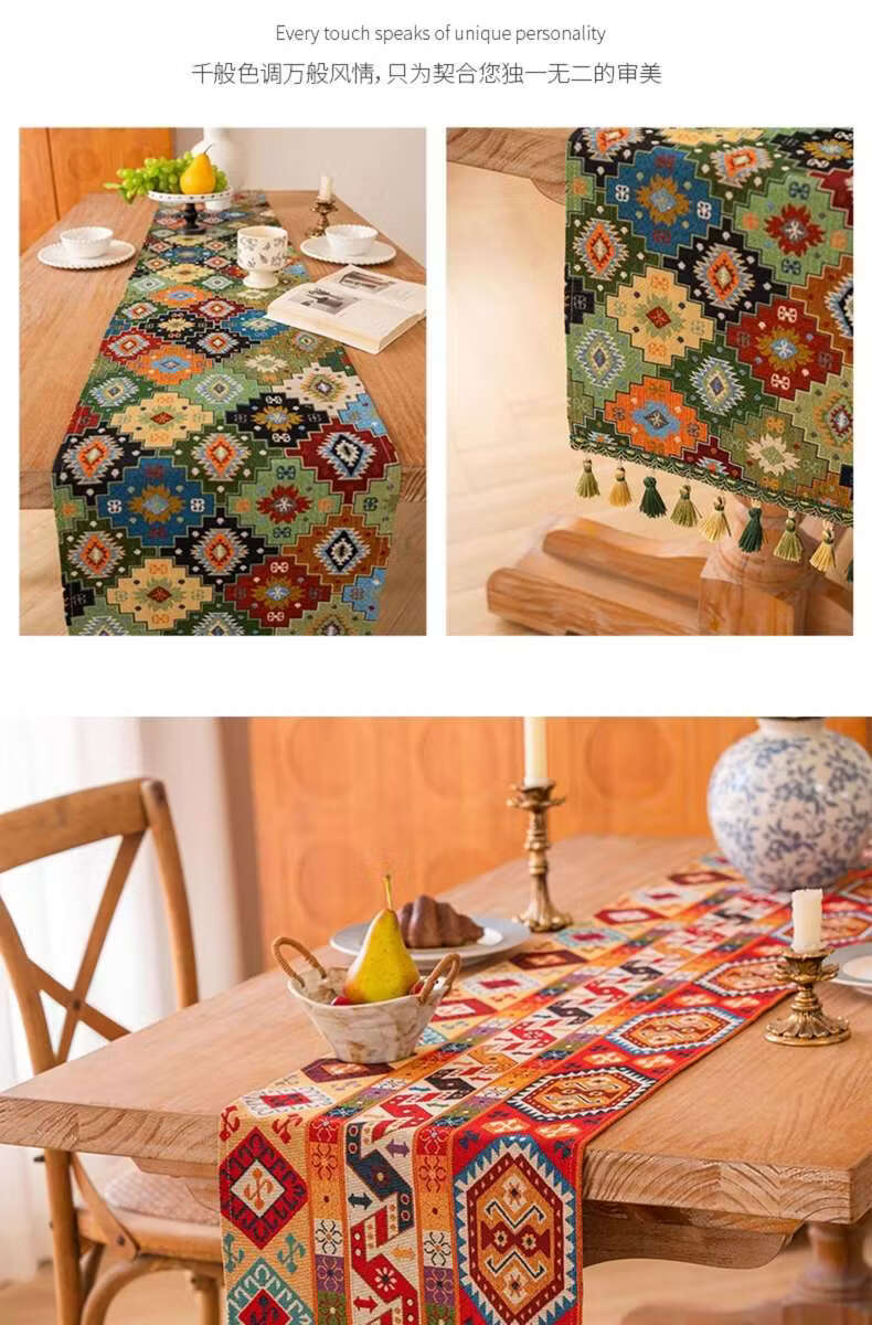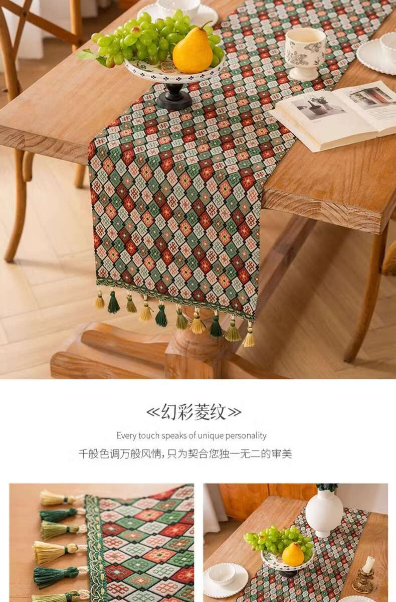 Fantasy table flag style tablecloth coffee table TV cabinet sideboard shoe cabinet decorative cover cloth dark red badge 33x220cm