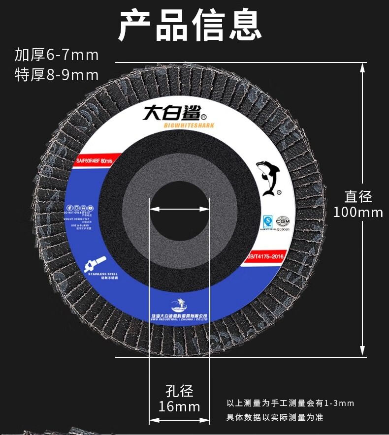 Sailoto FCL Great White Shark Louver Polishing Sheet Angle Grinder Polishing Sheet Stainless Steel Abrasive Cloth Chiba Resin Angle Upgraded Great White Shark 100 Type Plastic Cover 60 Mesh Full Box 300 Pieces