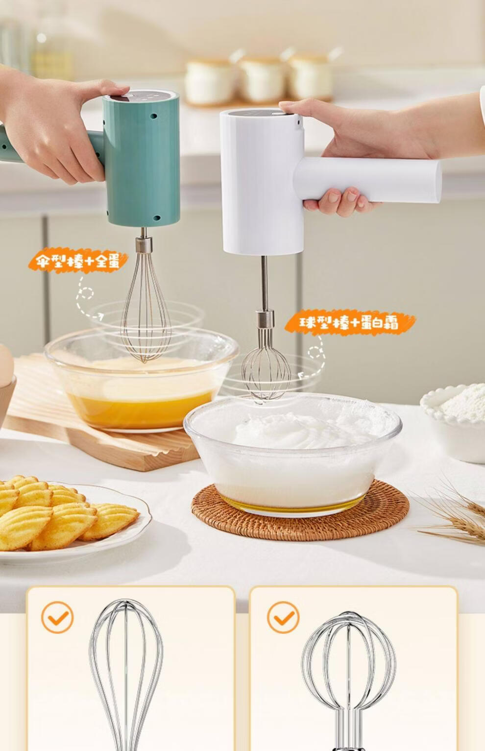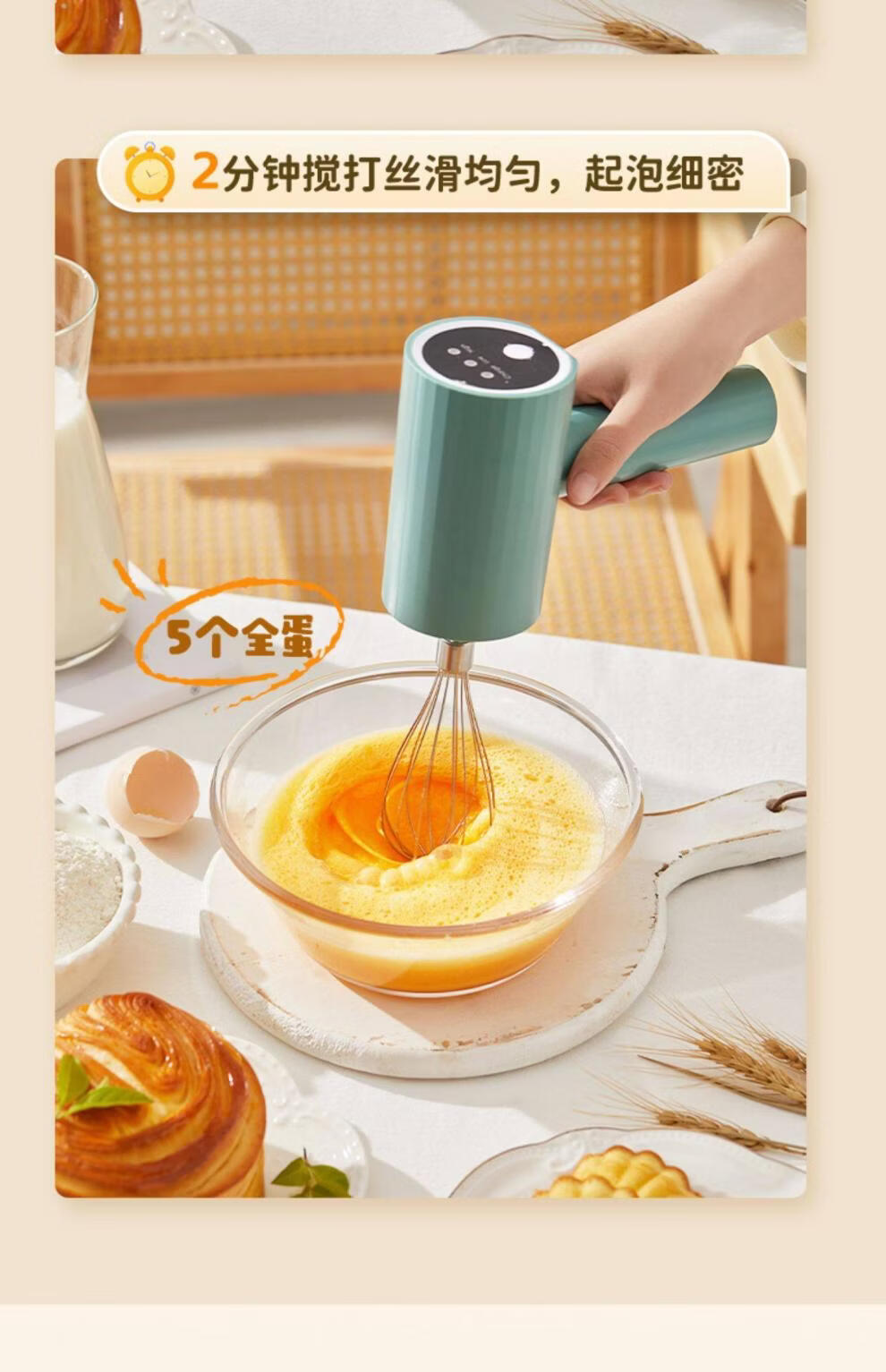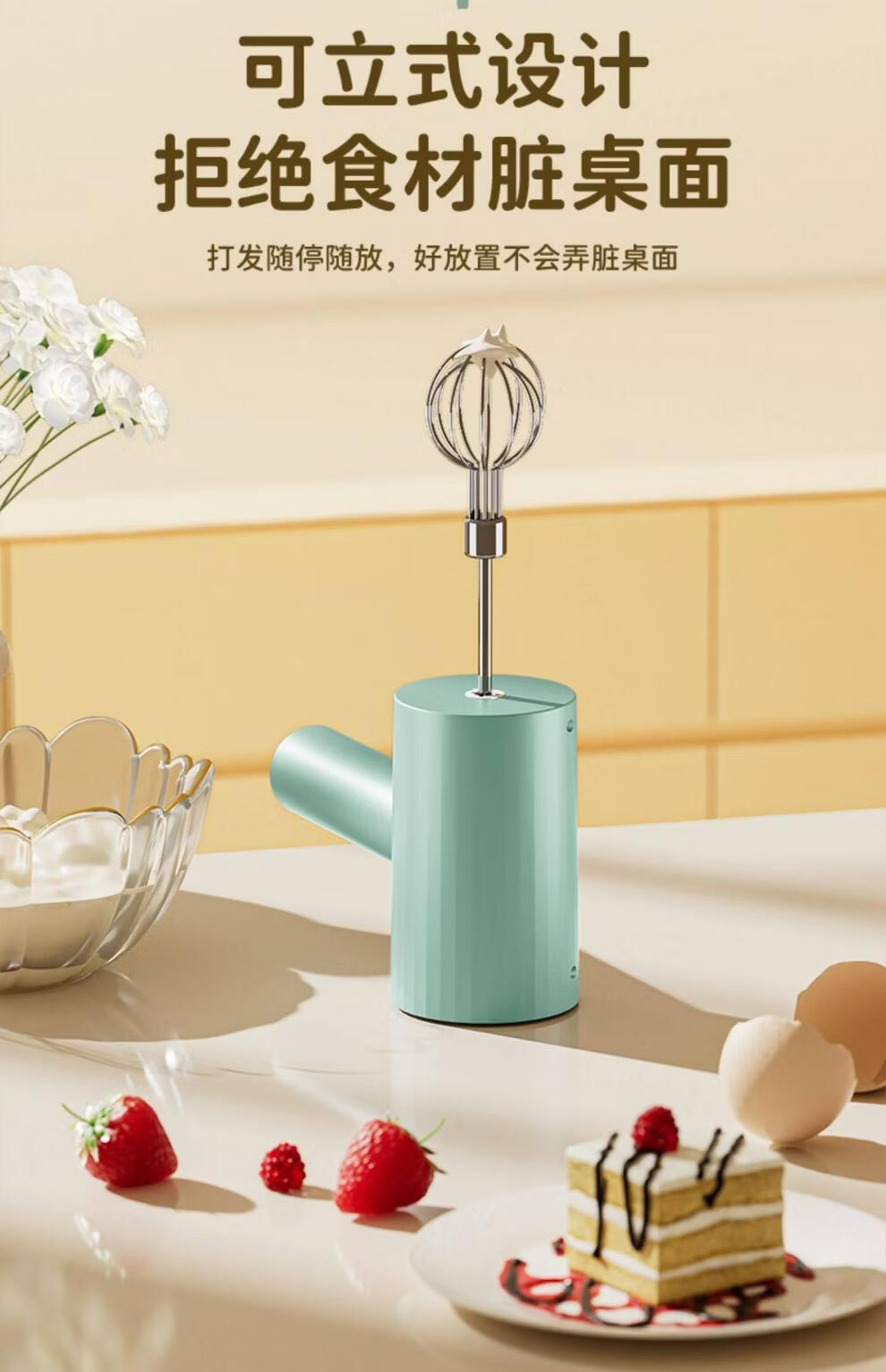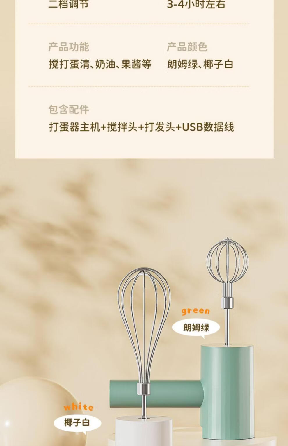 Tuojin imported quality egg beater from Japan, household fully automatic electric small baking mixer, egg cream cake mixer, white three-piece set, single stick