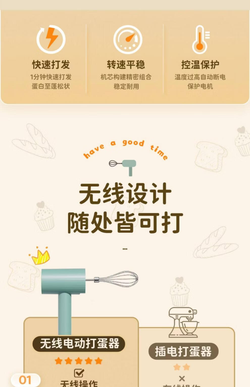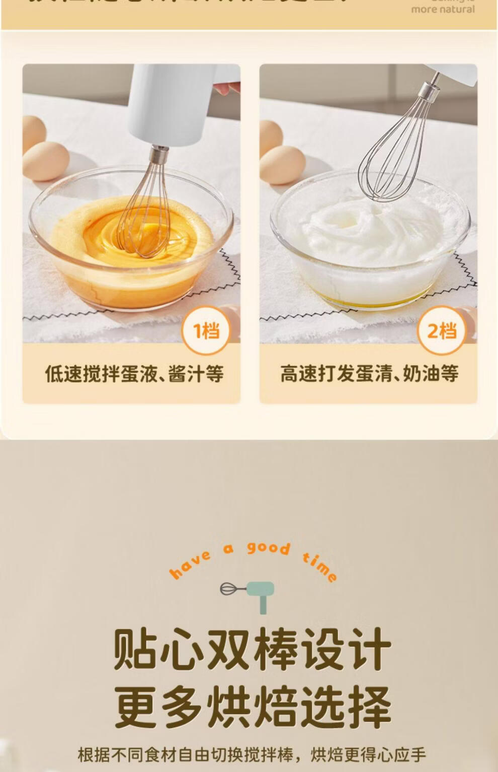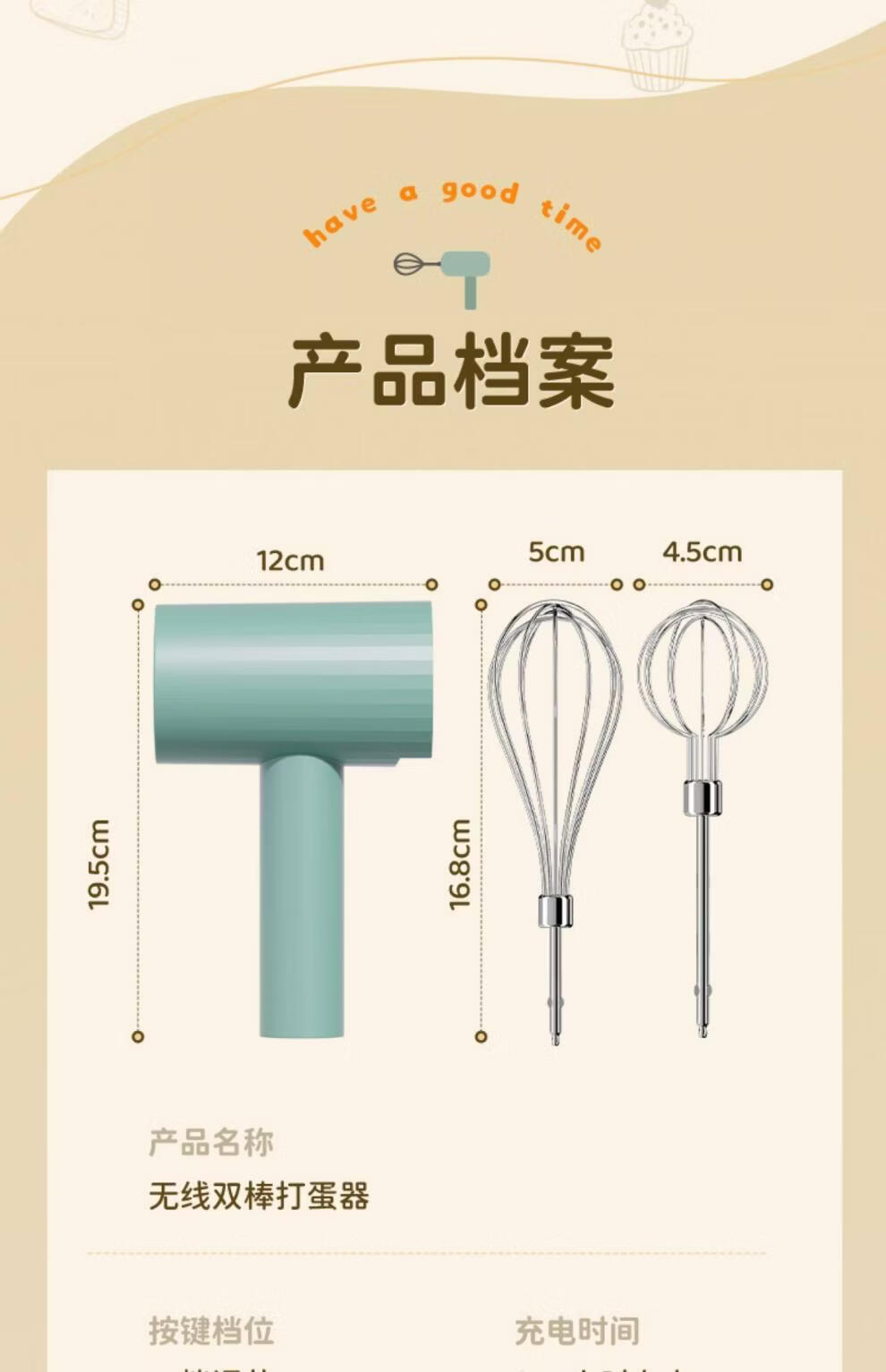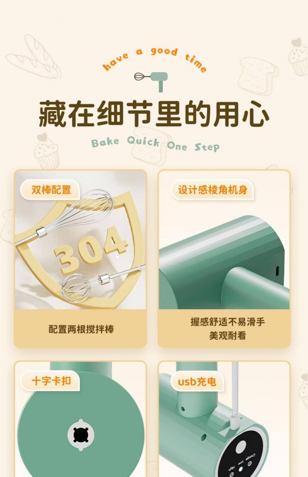 Tuojin imported quality egg beater from Japan, household fully automatic electric small baking mixer, egg cream cake mixer, white three-piece set, single stick
