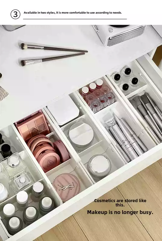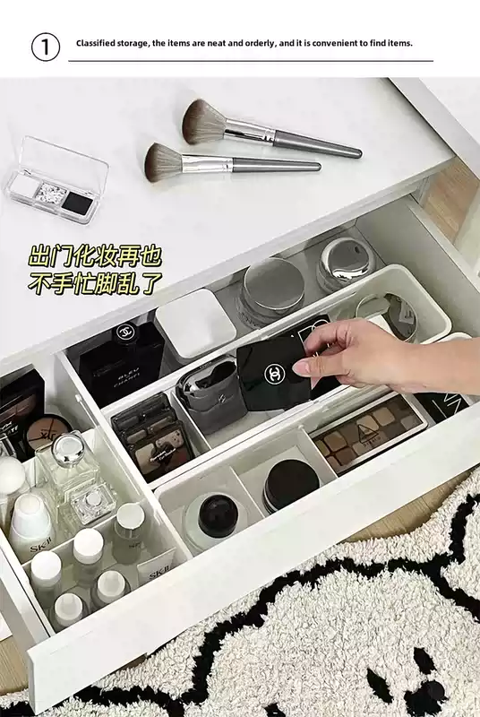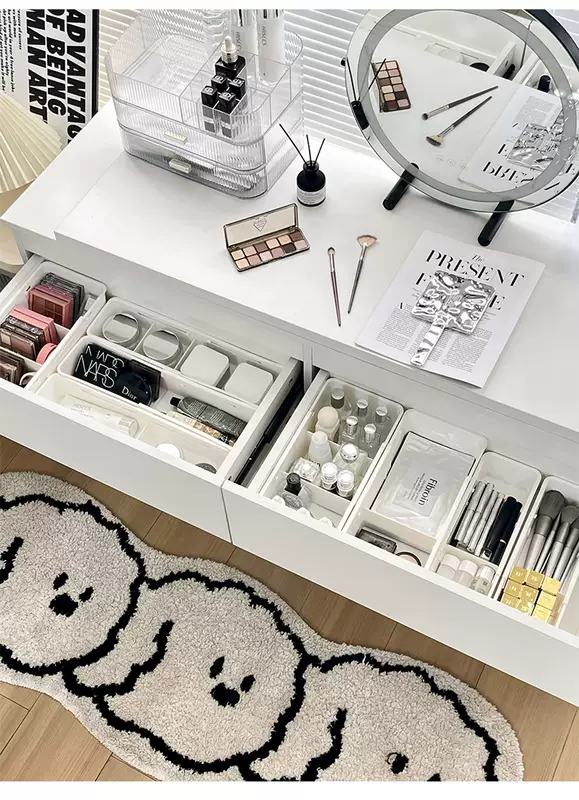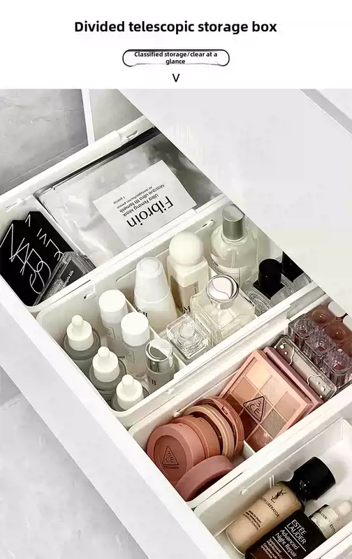Yusenyi cosmetics storage box drawer built-in telescopic box dressing table desktop skin care product lipstick divided organizing box white wide divided telescopic box (flexible adjustment)
