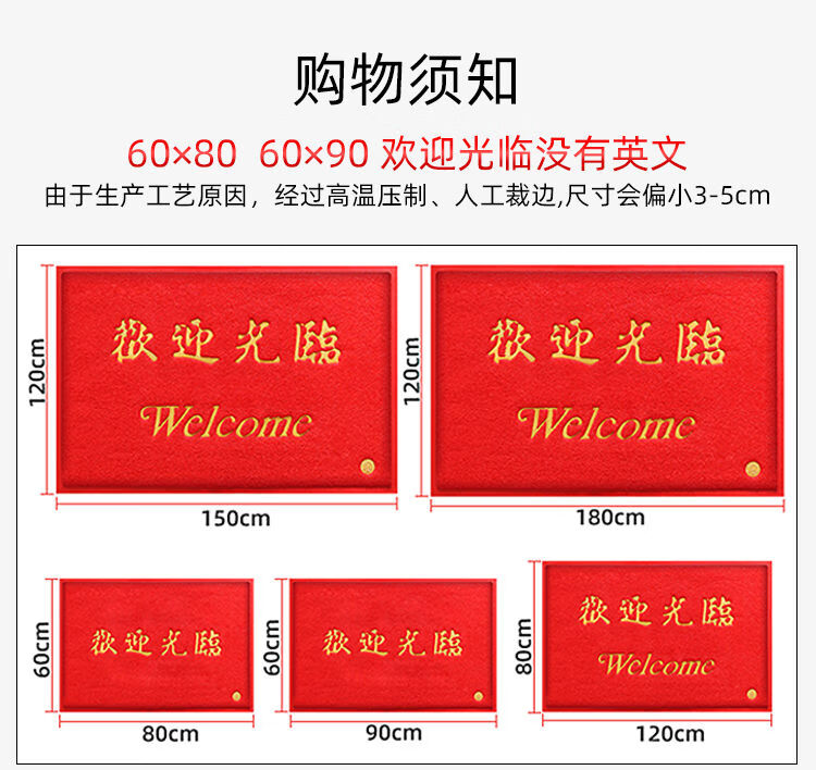 Fantasy welcome floor mat, anti-fouling floor mat, large size material door mat, floor mat, red blessing character, 60x90cm, extra thick)