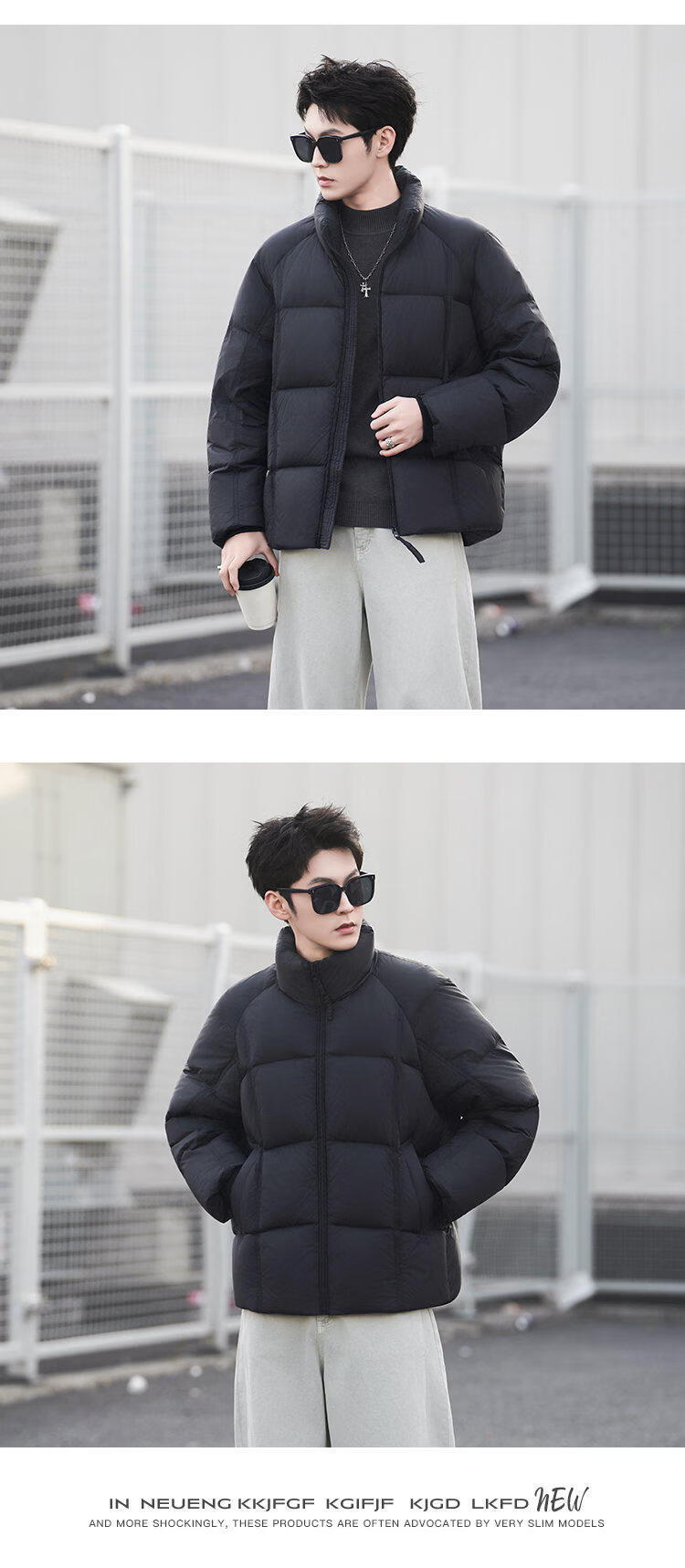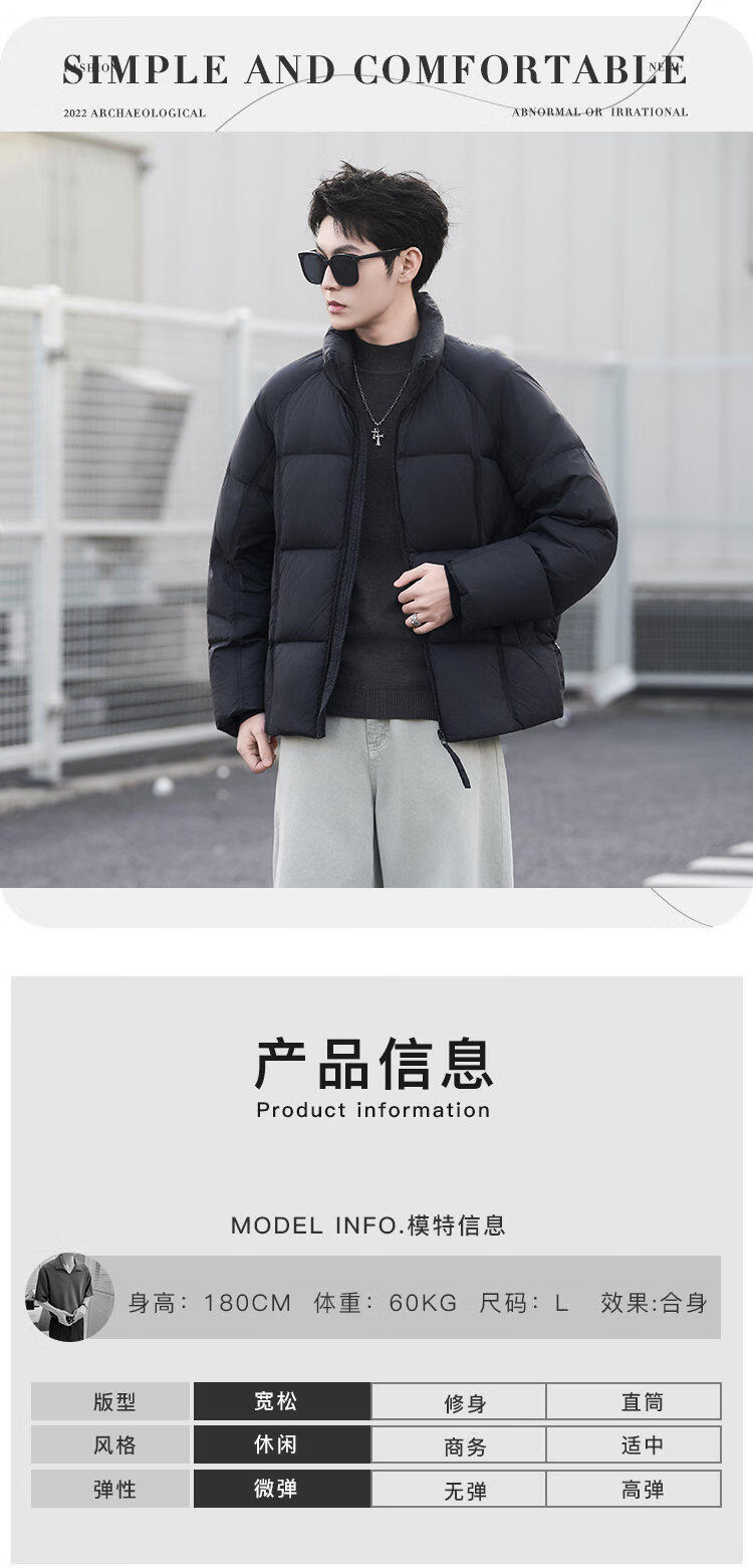 JEEP SPIRIT Puff Short Men's Down Jacket High Filling Warmth White Duck Down Liner Premium Casual Jacket Winter Men Black 2XL
