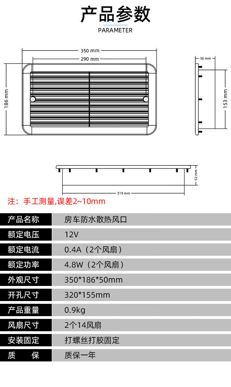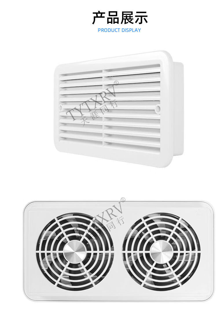 Aigechen RV cooling air outlet trailer trailer Transit Chase Iveco exhaust fan refrigerator exhaust fan 24V double fan black 0101144