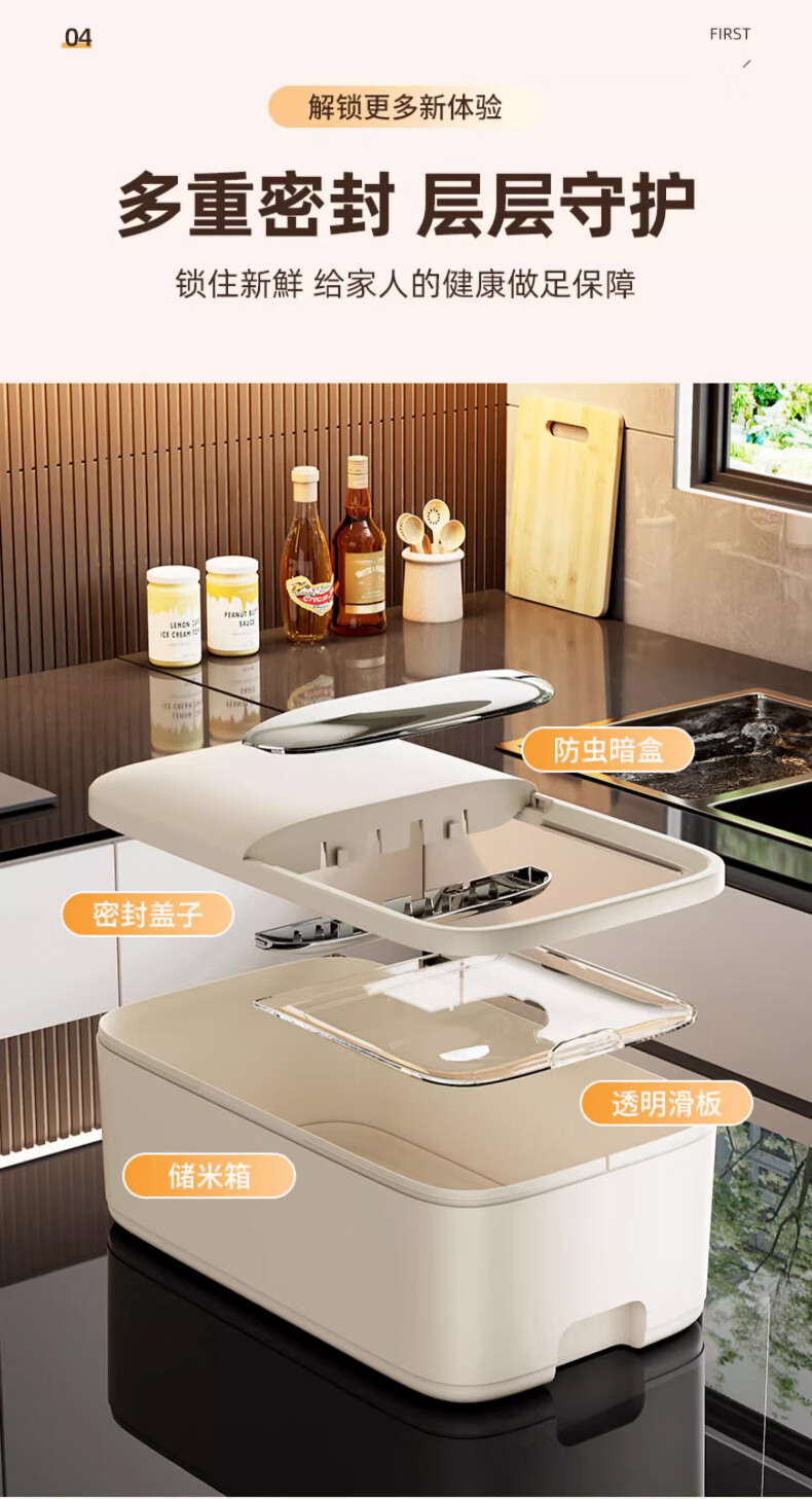 Home Story (KATEI STORY) Japanese food grade special rice bucket insect-proof rice storage box household kitchen flour bucket rice cylinder rice storage box noodle bucket white gray small rice bucket 10 catties