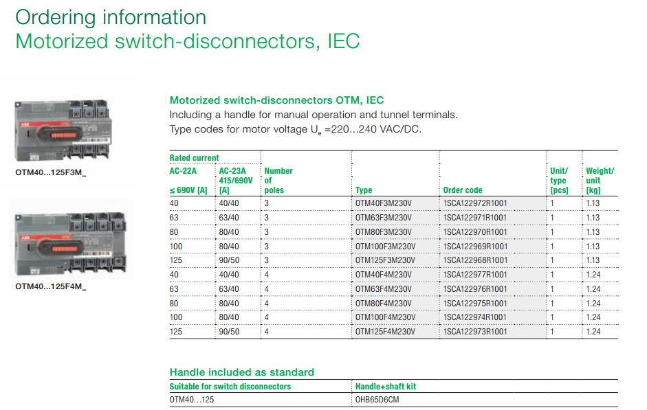 ABB type handle OHB45J6, OHY45J6, OHB65J6, OHY65J6, OHB80J6, OHB65J6