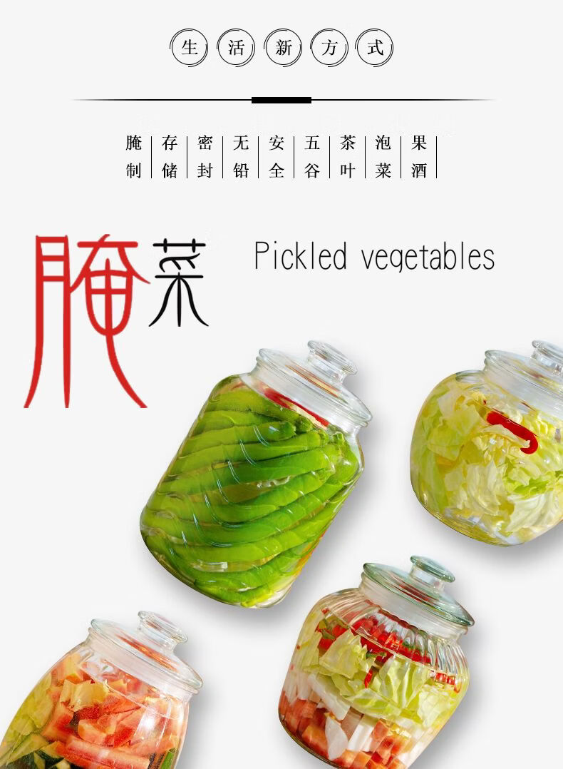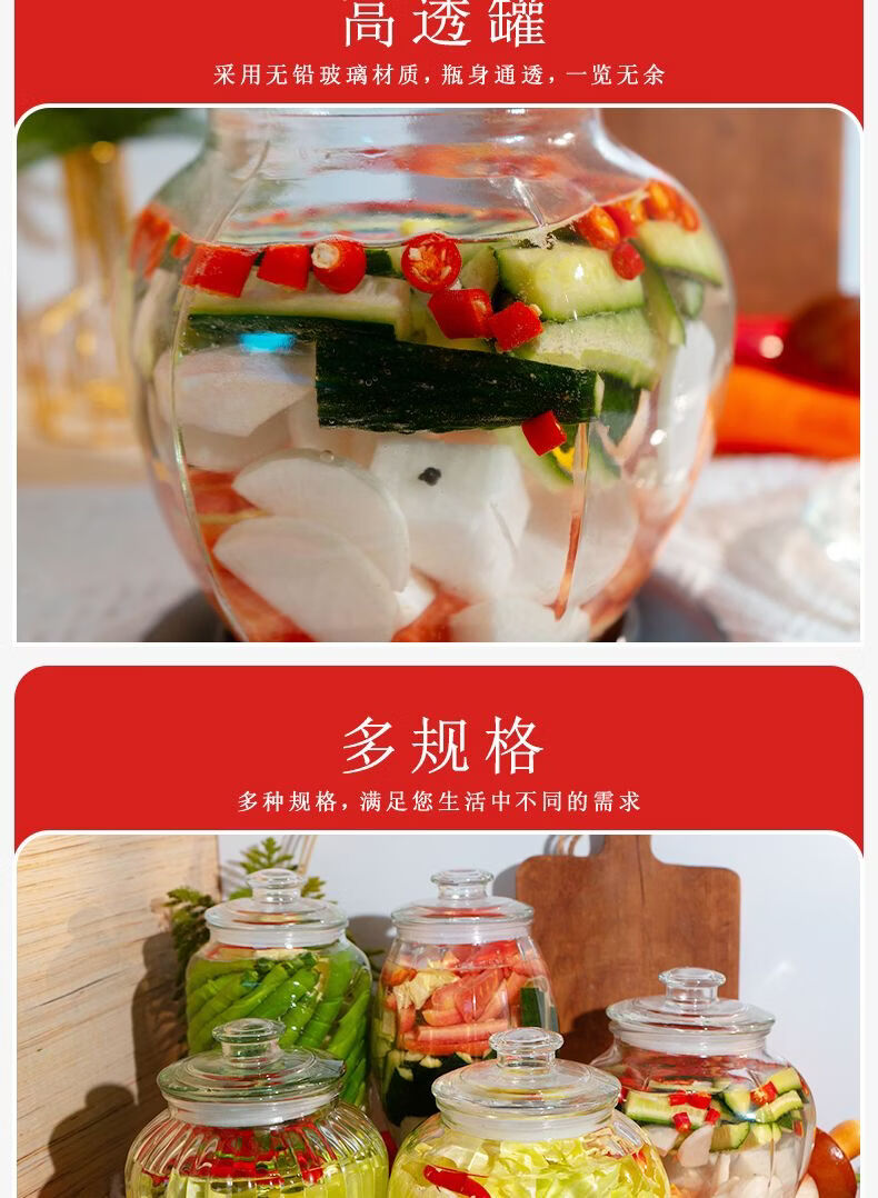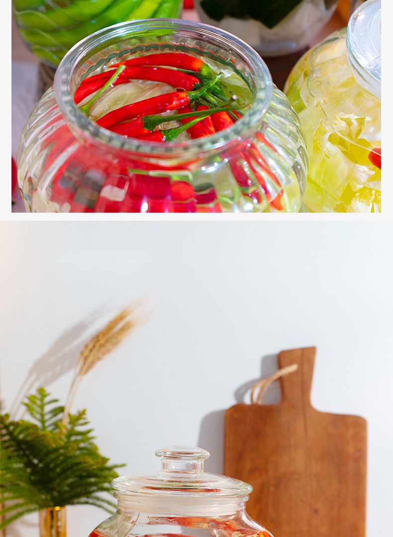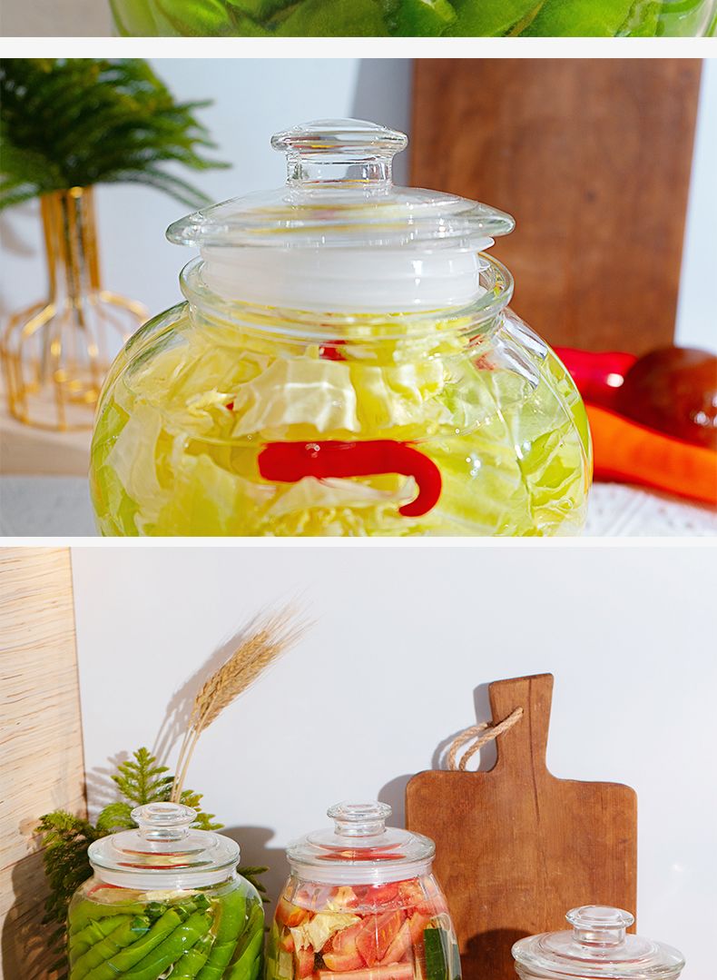 Junmo glass pickle jar home kitchen thickened pickled pickles sauerkraut storage jar jar pickled vegetable sealed jar 4 catties thickened type B
