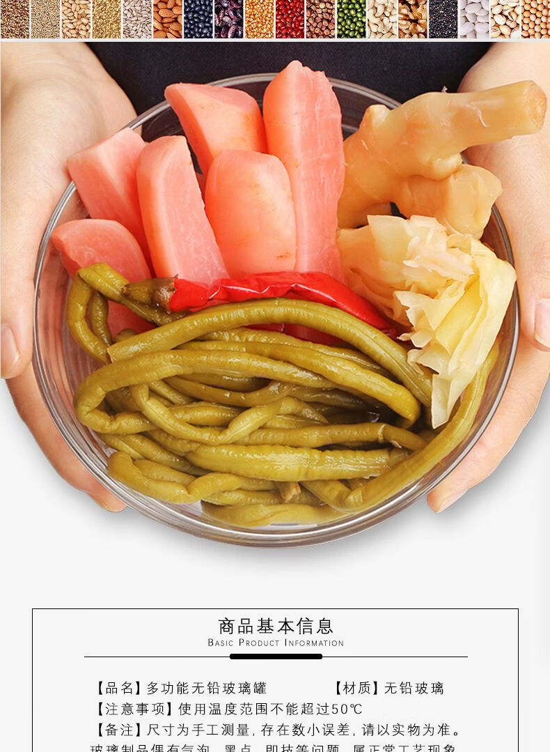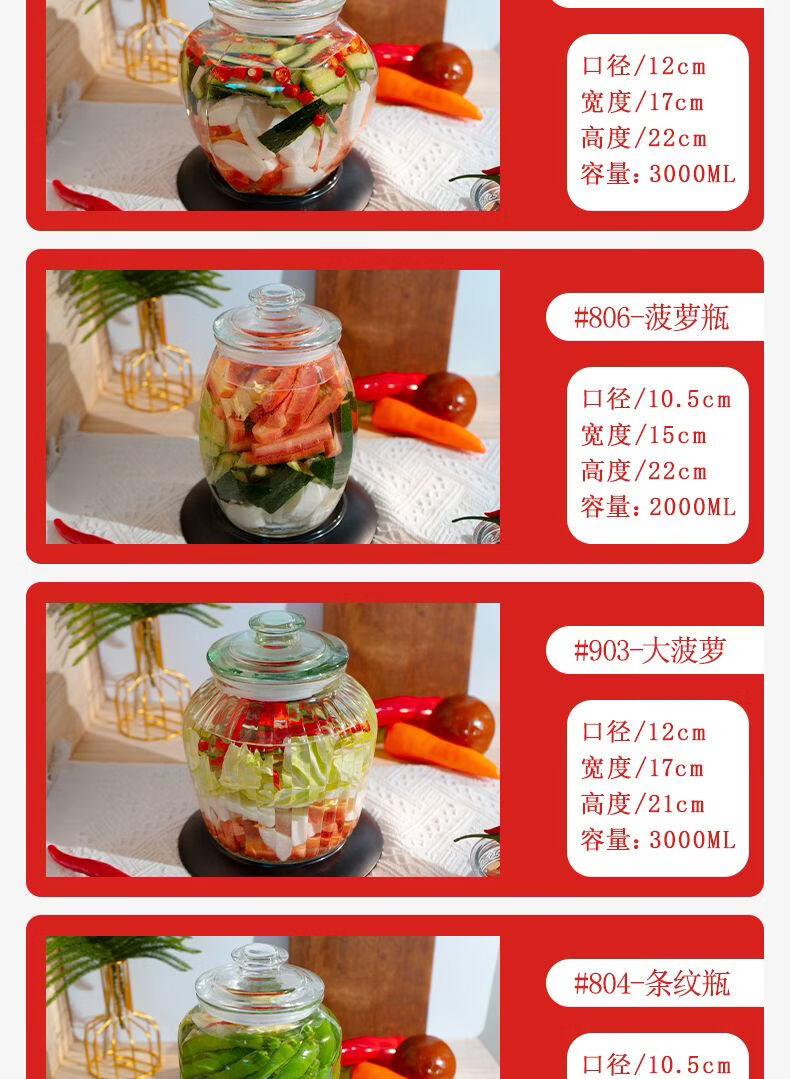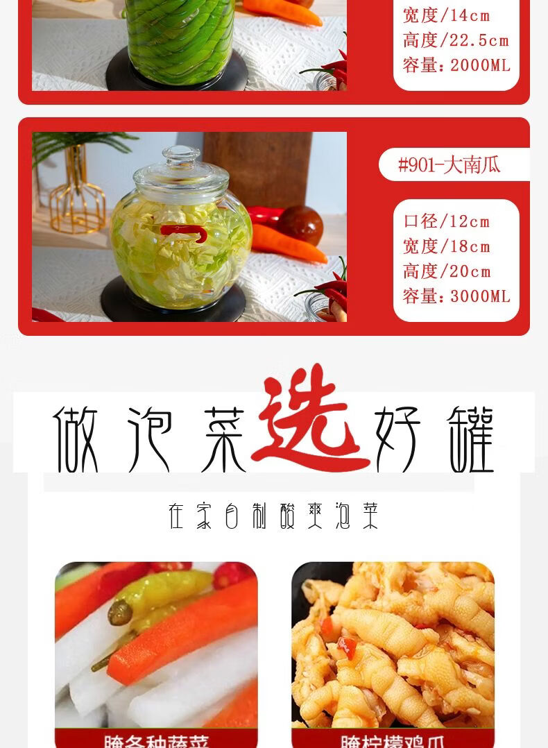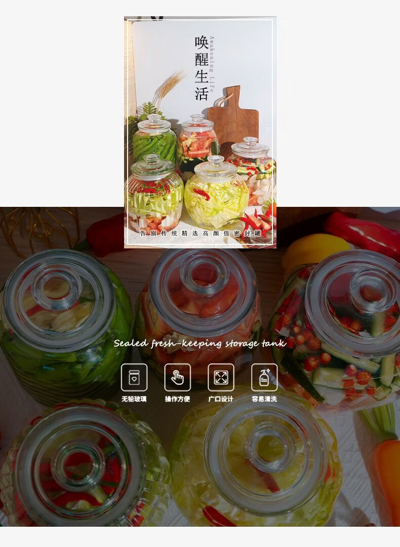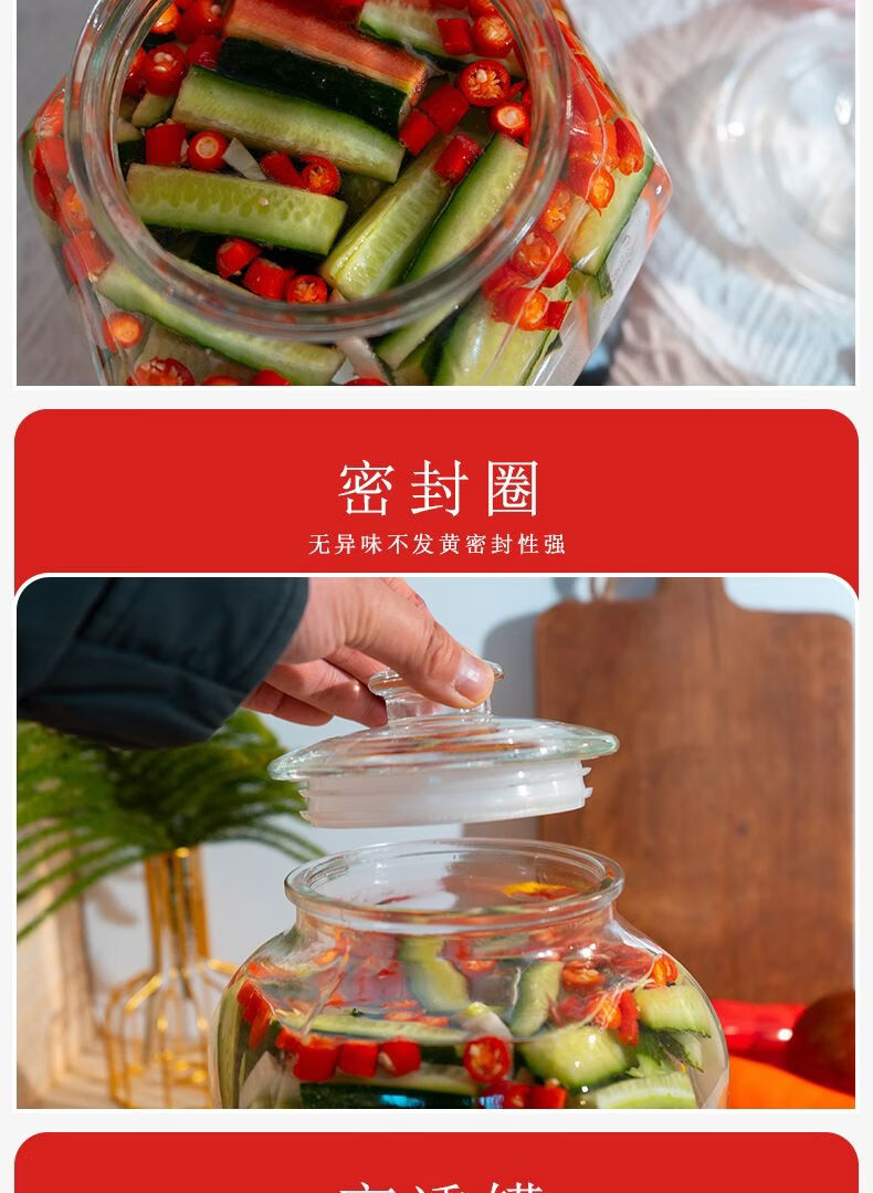 Junmo glass pickle jar home kitchen thickened pickled pickles sauerkraut storage jar jar pickled vegetable sealed jar 4 catties thickened type B