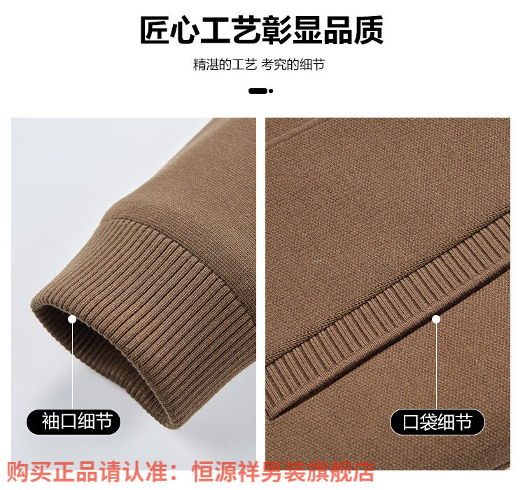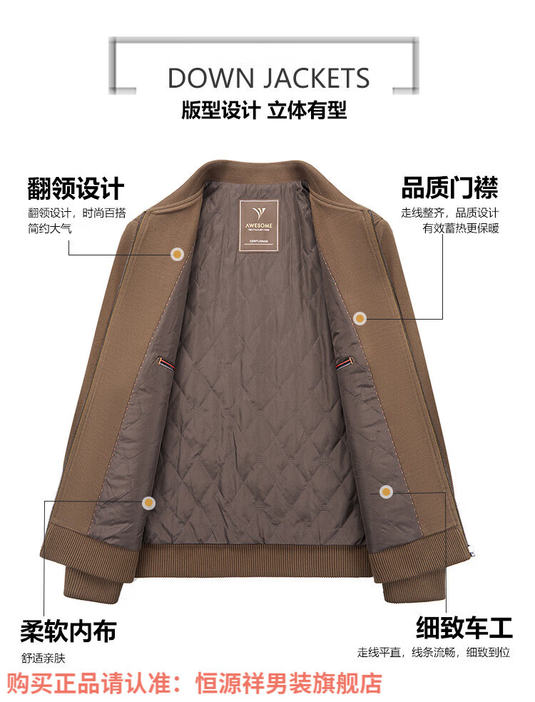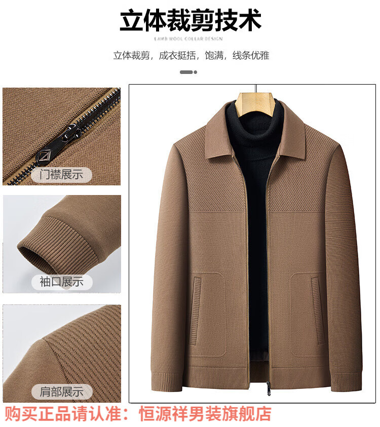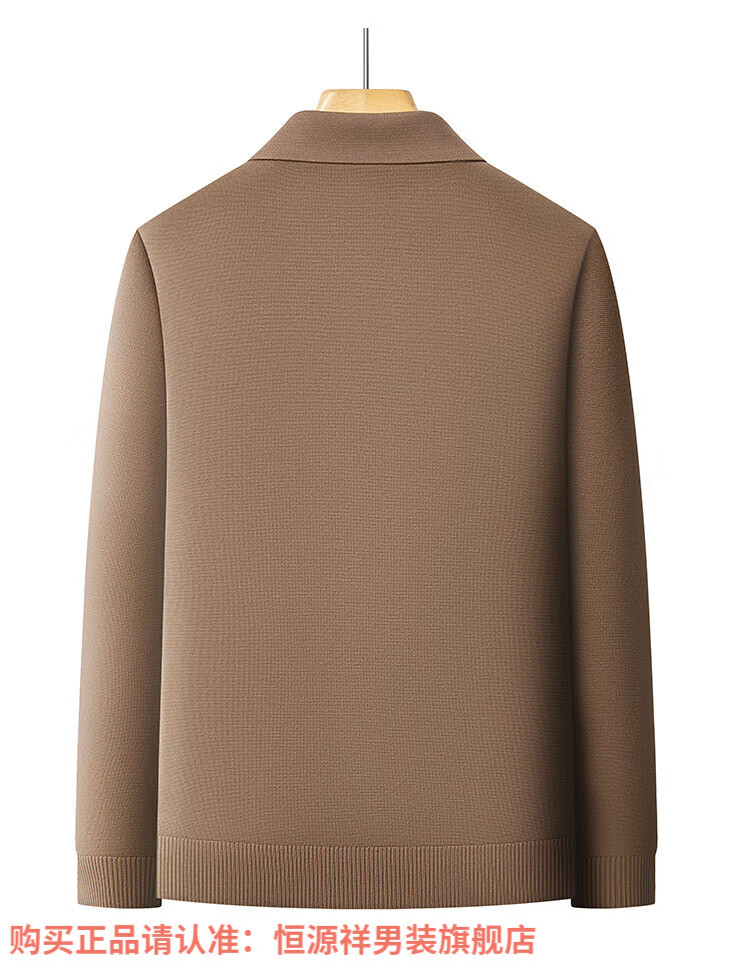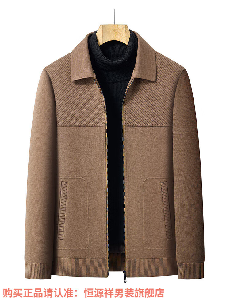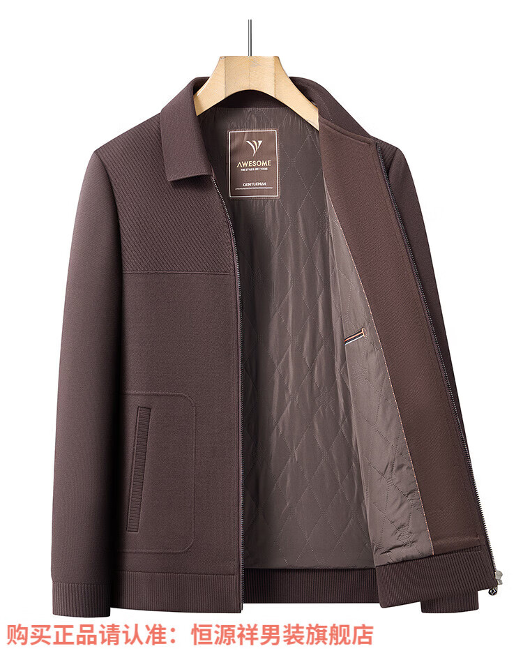 Hengyuanxiang high-end knitted jacket men's autumn and winter quilted thickened warm business casual middle-aged dad lapel short jacket brown L 175