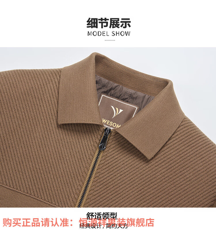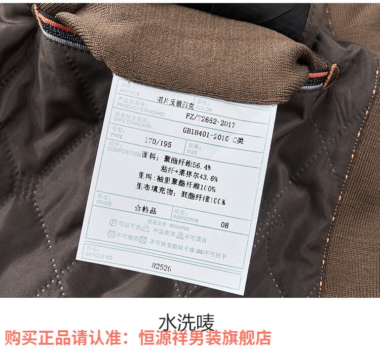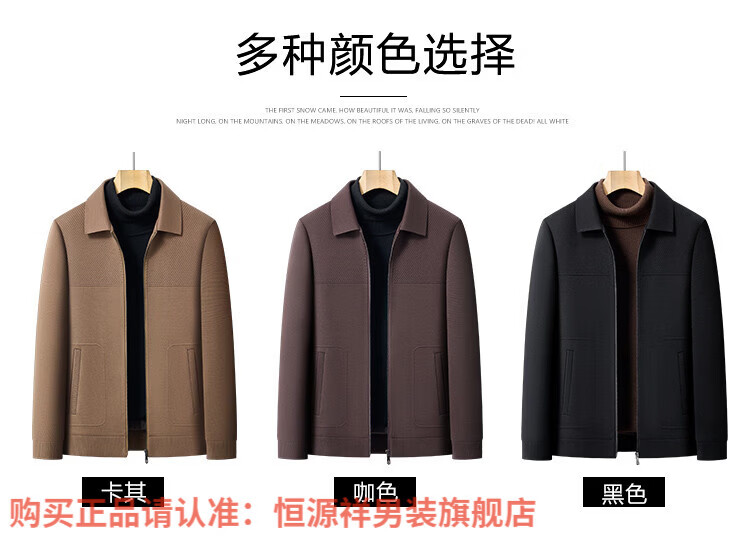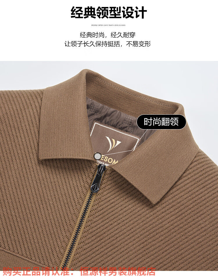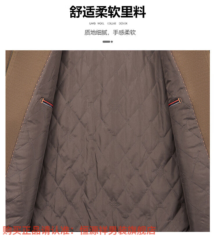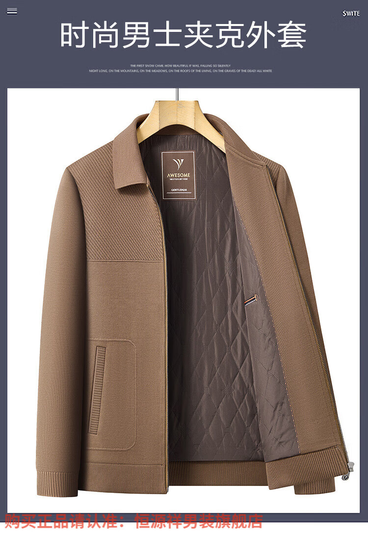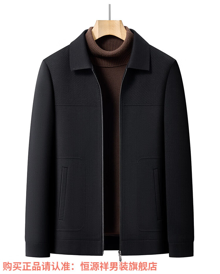 Hengyuanxiang high-end knitted jacket men's autumn and winter quilted thickened warm business casual middle-aged dad lapel short jacket brown L 175