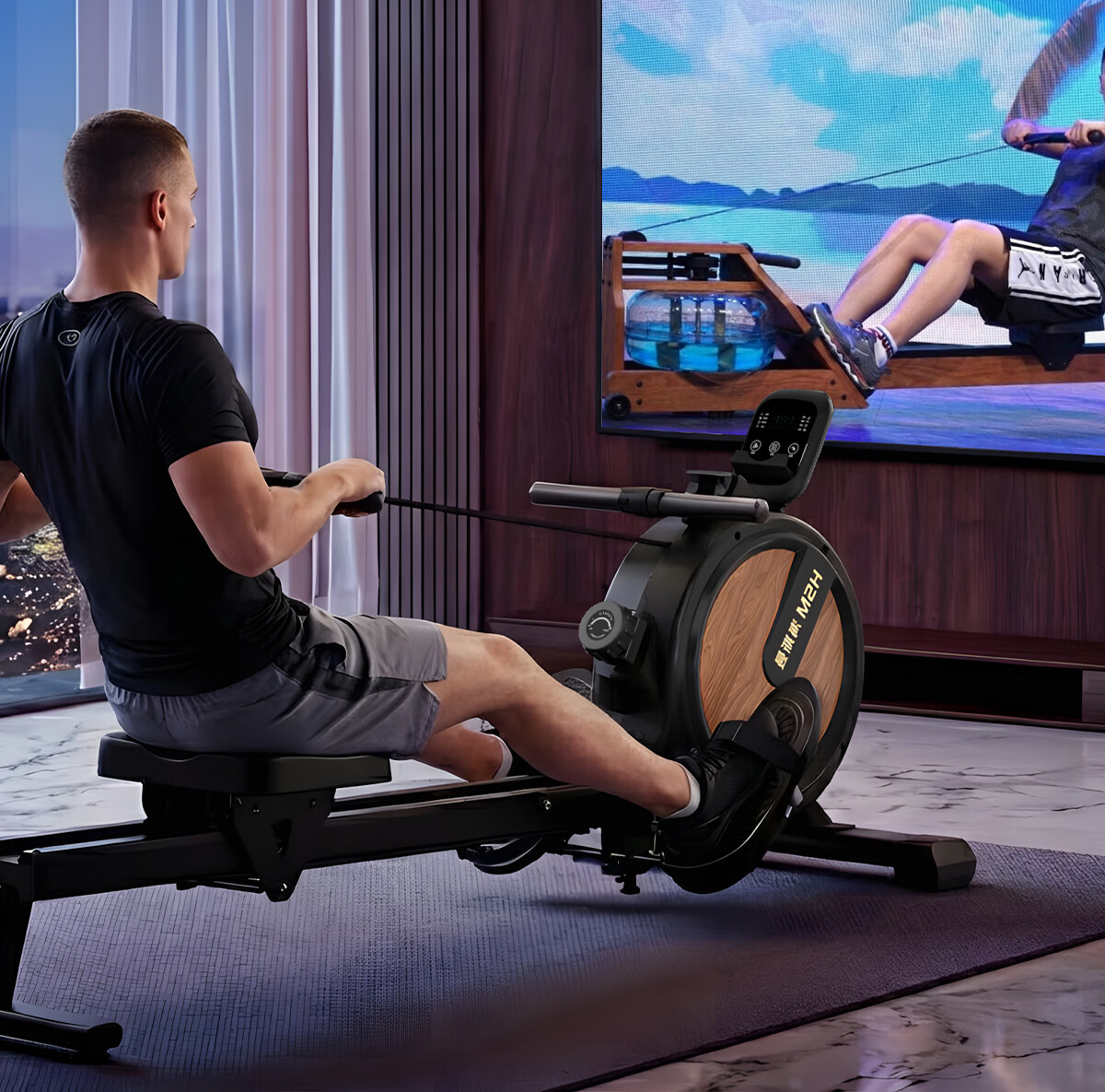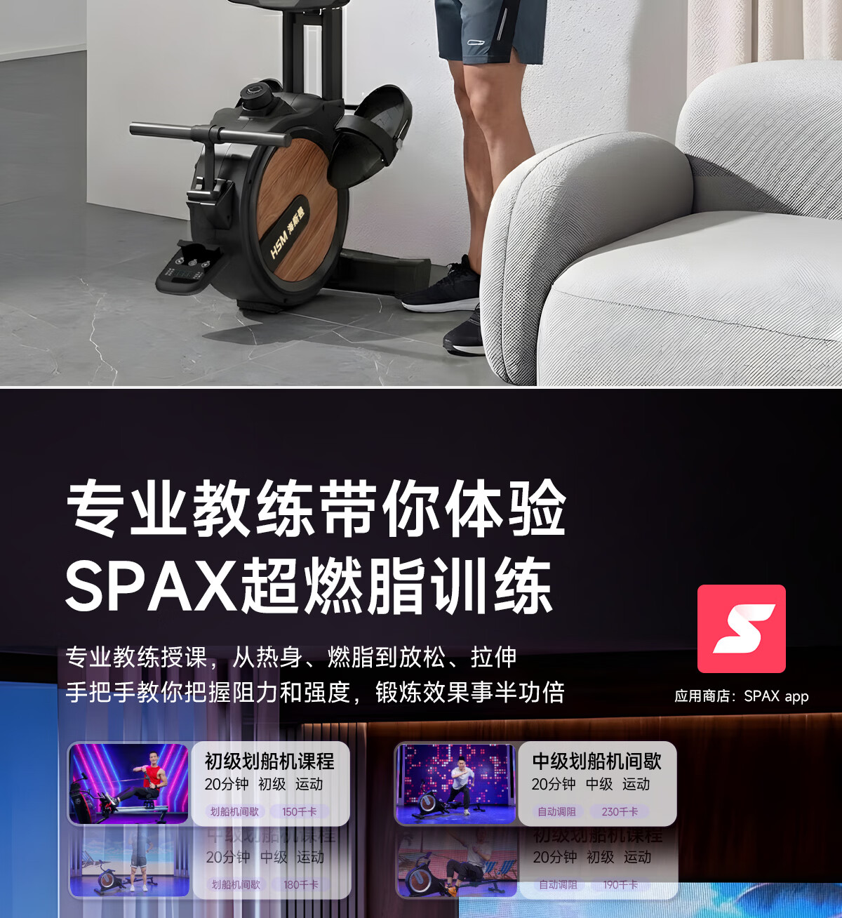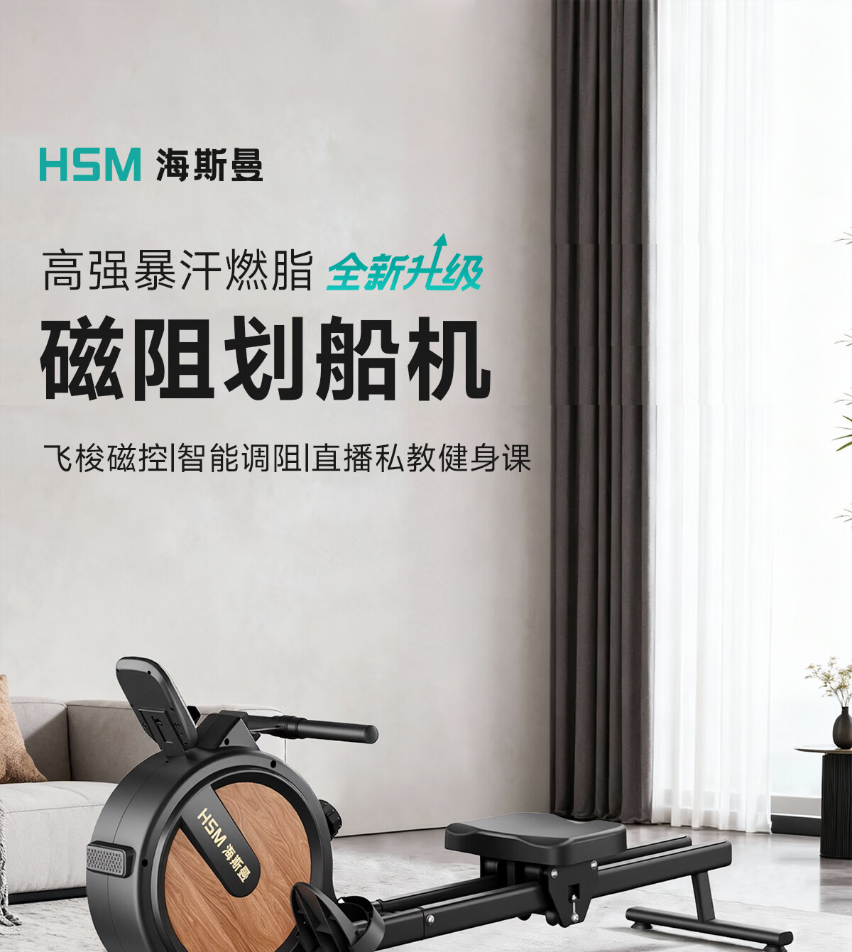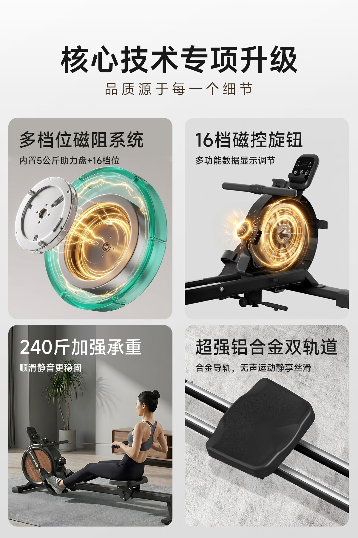 Heisman rowing machine household magnetic resistance silent super fat-burning fitness equipment comprehensive training device small rowing machine Q1 16-speed strong magnetic resistance adjustment - free personal training - Starry Sky Black