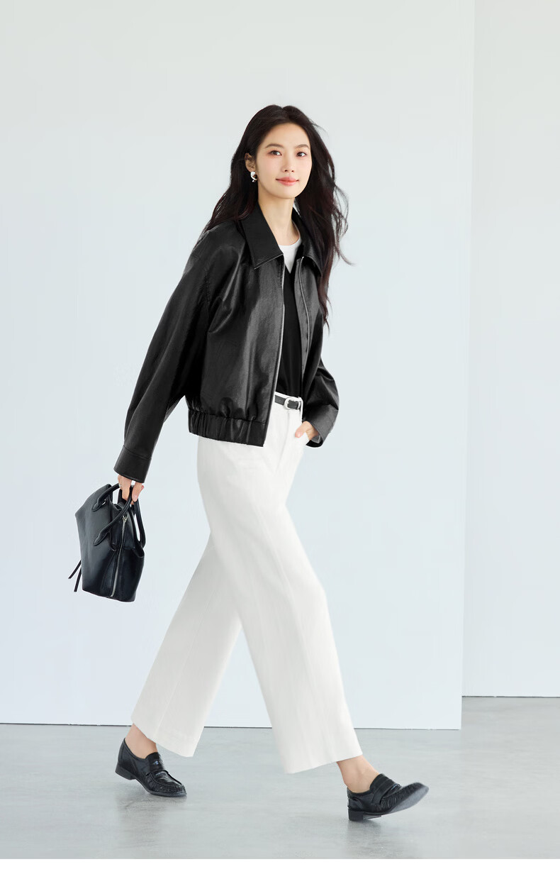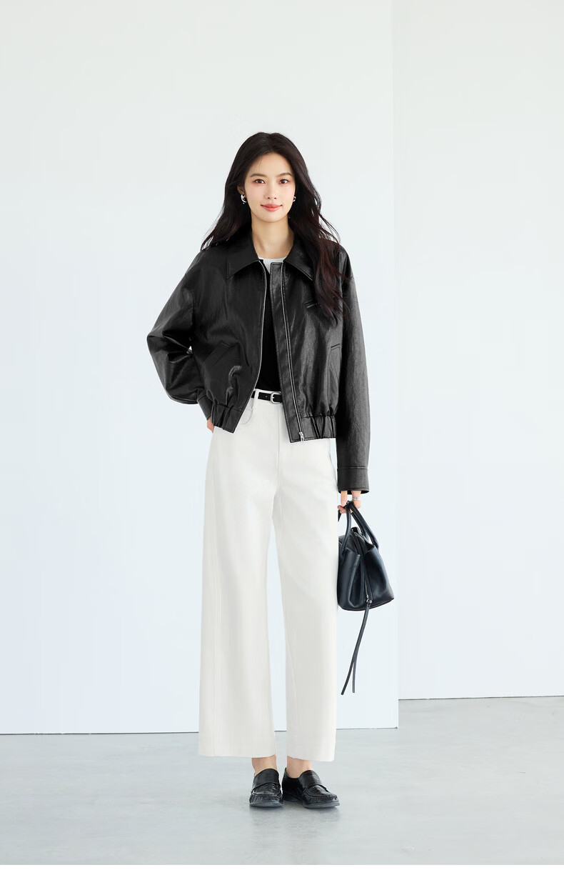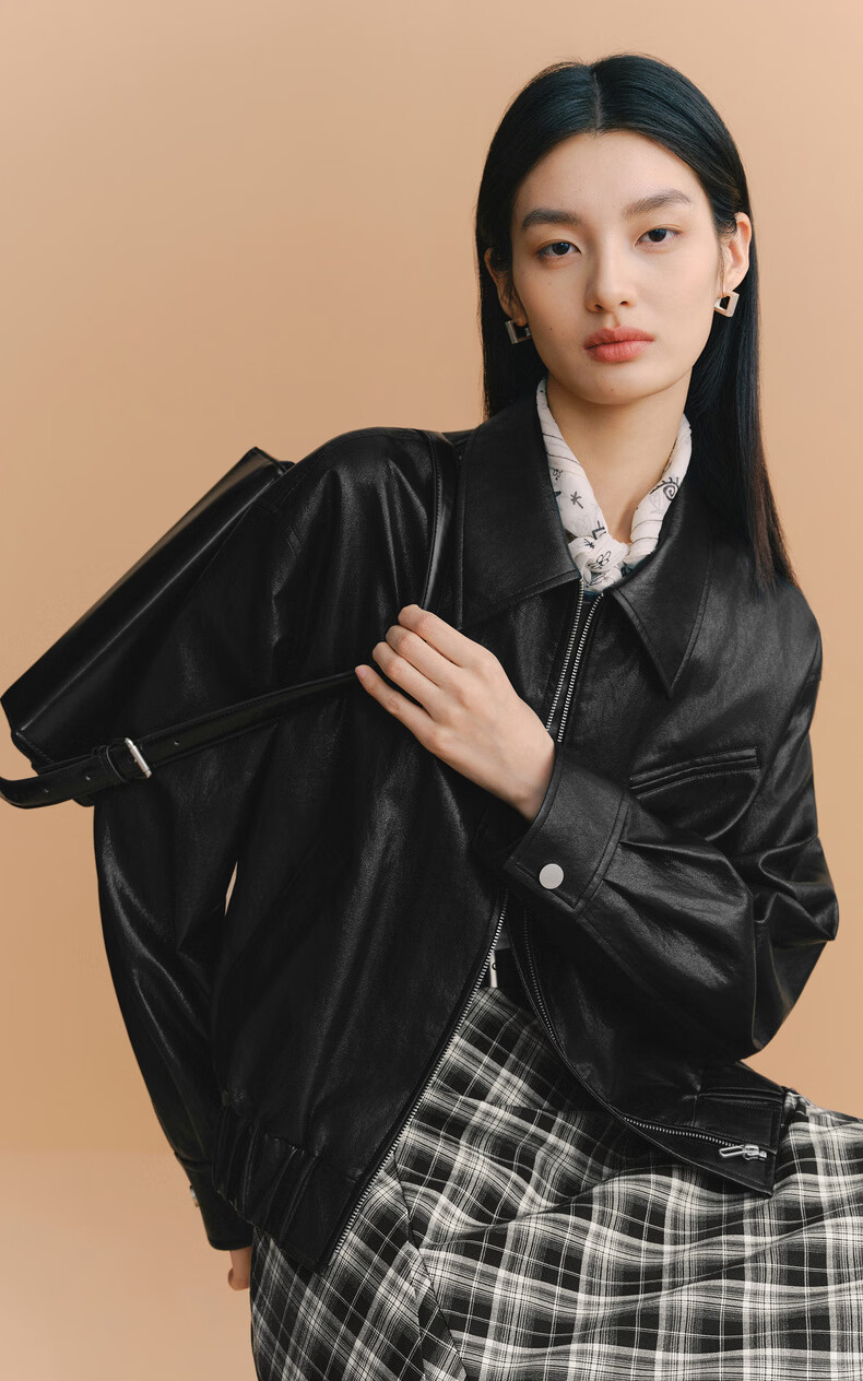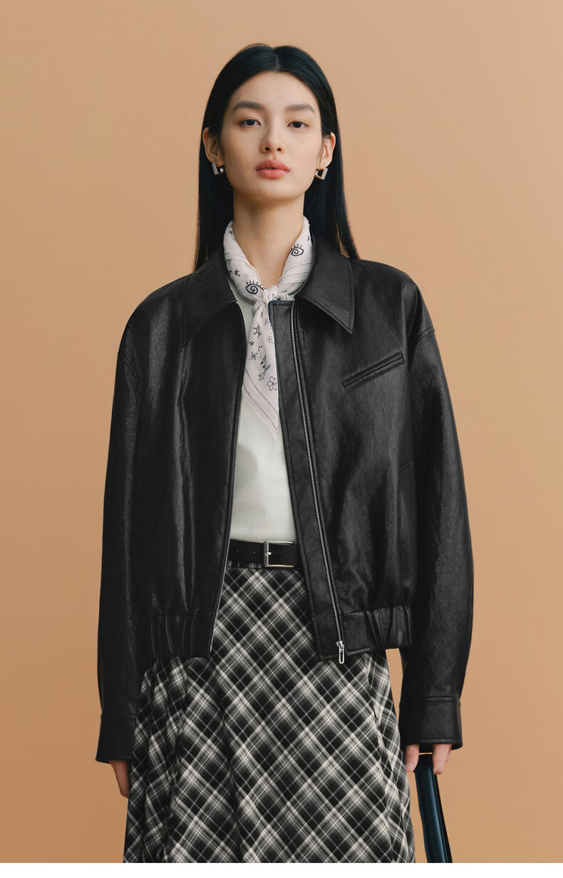 Eveli (eifini) Eveli silhouette short lapel leather jacket 2026 spring new fashionable casual handsome jacket for women black M 105-115 catties