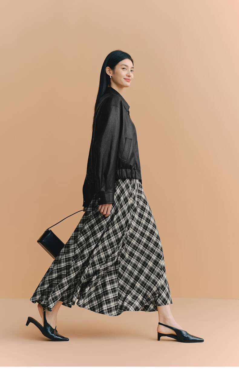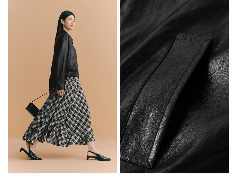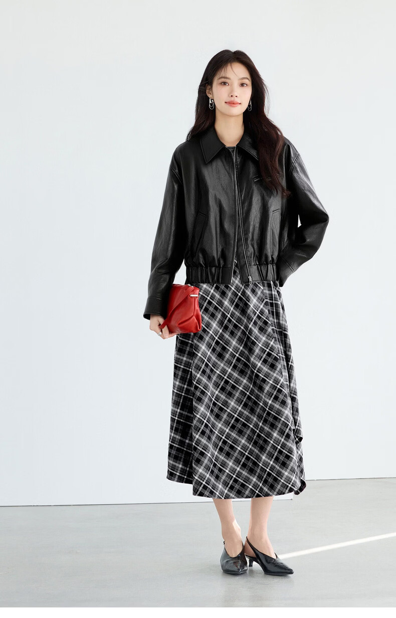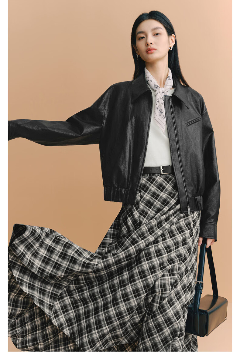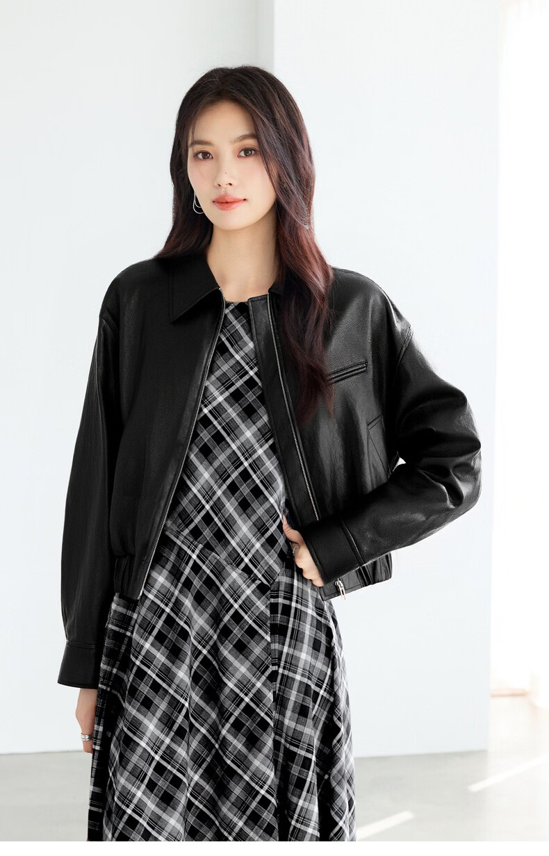 Eveli (eifini) Eveli silhouette short lapel leather jacket 2026 spring new fashionable casual handsome jacket for women black M 105-115 catties