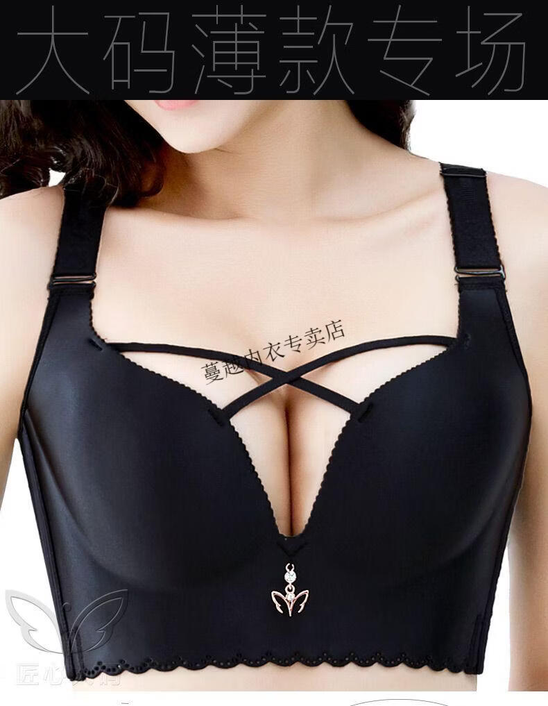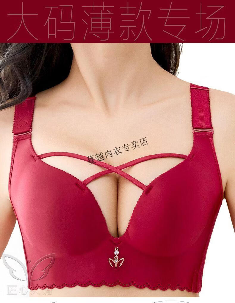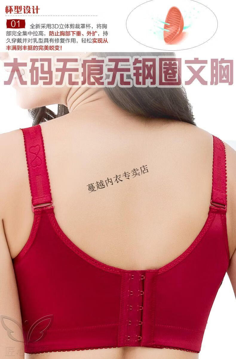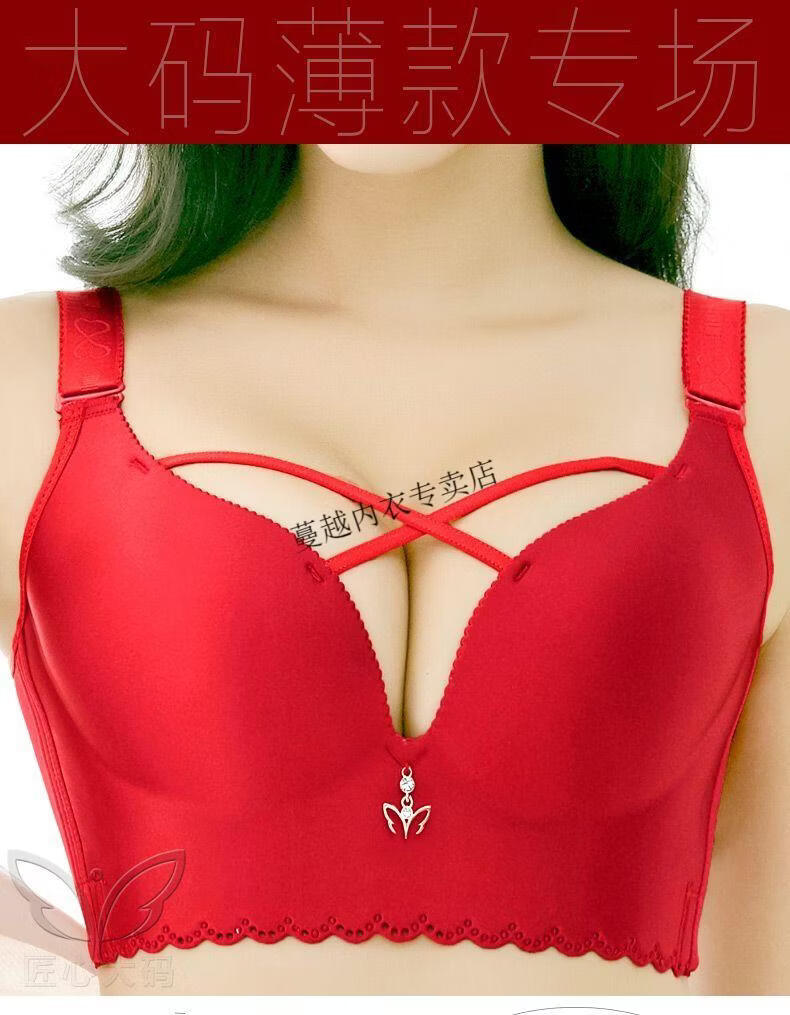 Modal large size bra for women, one piece, seamless, sexy, wire-free, push-up adjustable bra, AB thick section, CD thin section, burgundy 75D 34