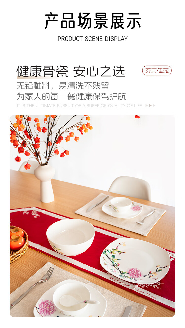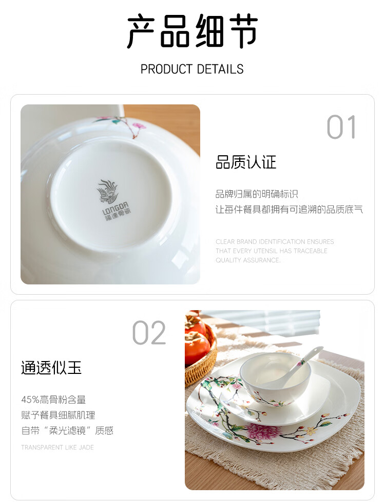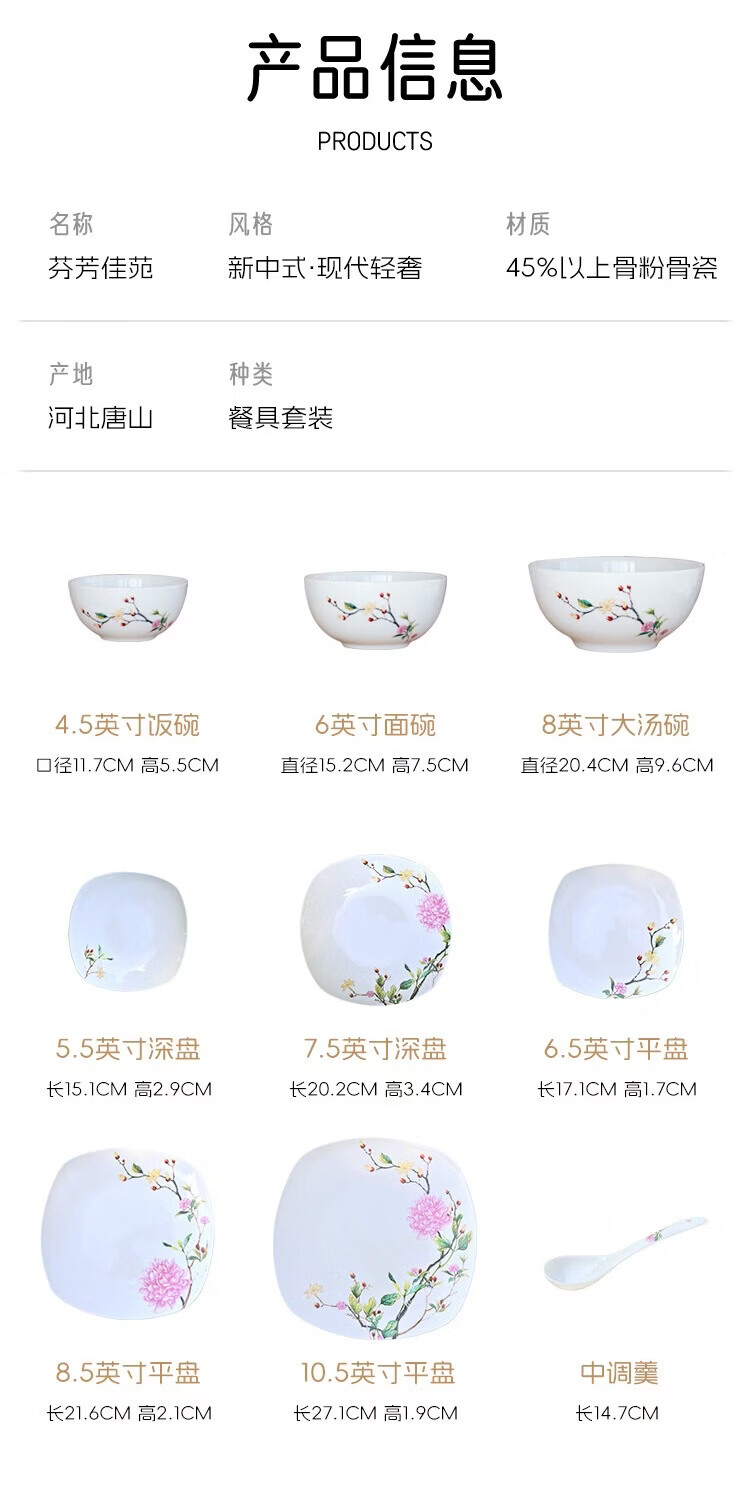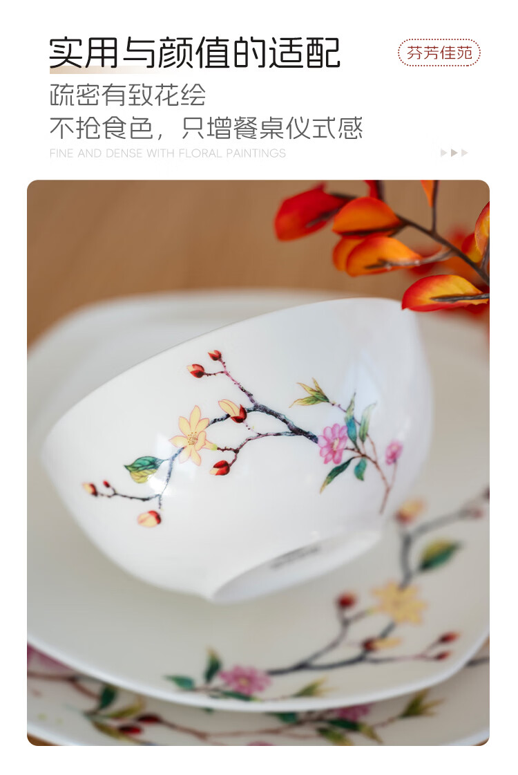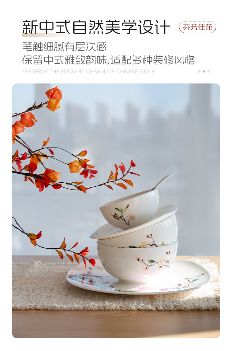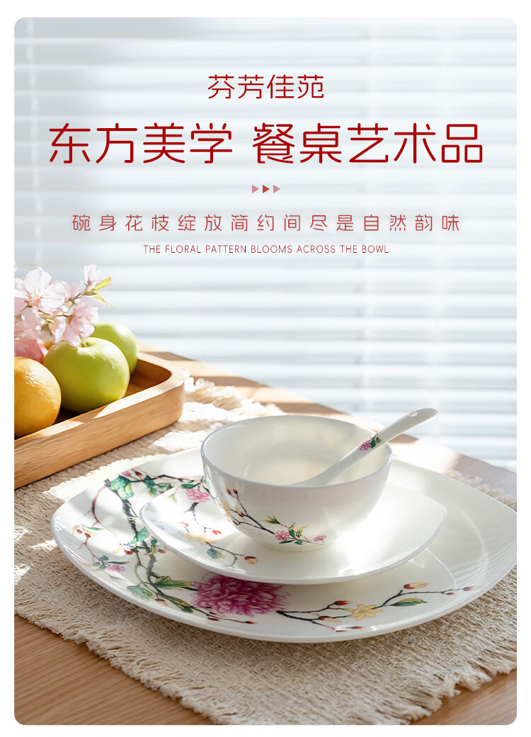 Ronda bone china tableware set Fenfangjiayuan dishware set for home use 2025 new high-looking ten bowls and ten plates set Fenfangjiayuan meal for 4 people 18-piece set