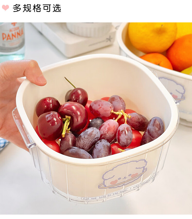 Shijanu's new double-layer drain basket kitchen fruit basin, white small size, food-grade PET material, suitable for washing fruits and vegetables_Send genuine