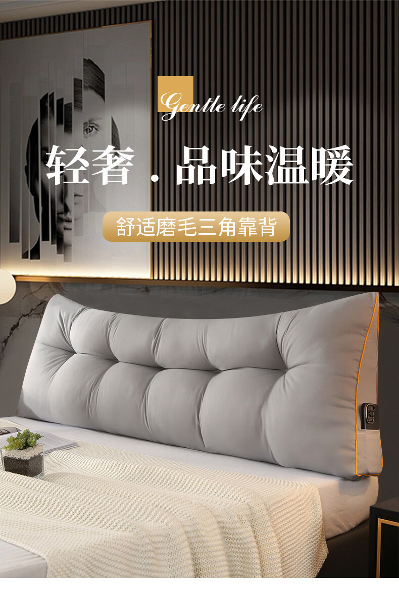 Dormitory bedside cushion, large backrest bed, half-lying soft pillow, tatami bedroom triangle pillow, light luxury, upgraded ultra-thick spine protection model, classic - white (4 points strong, length 200*height 50*thickness 15cm