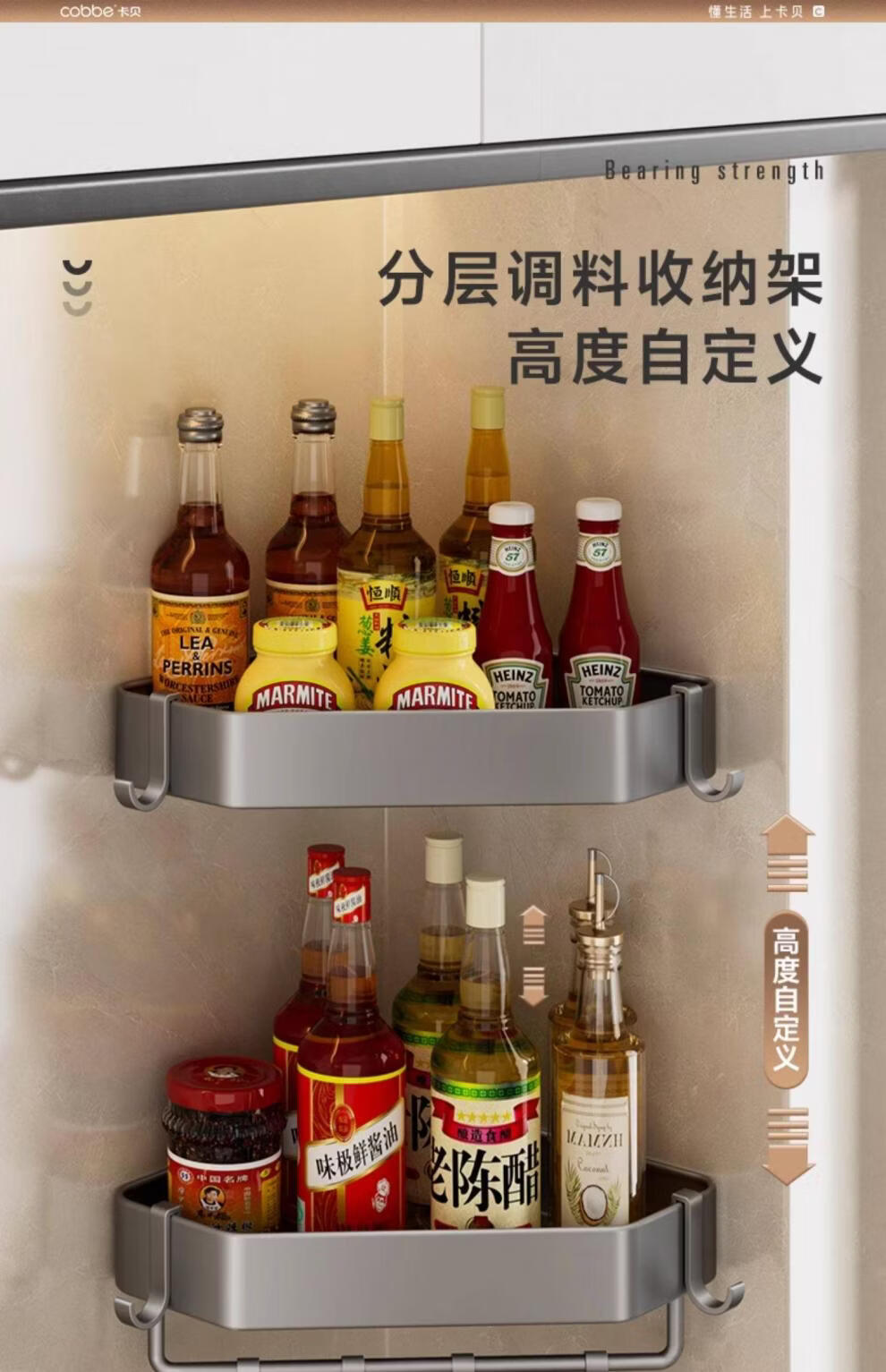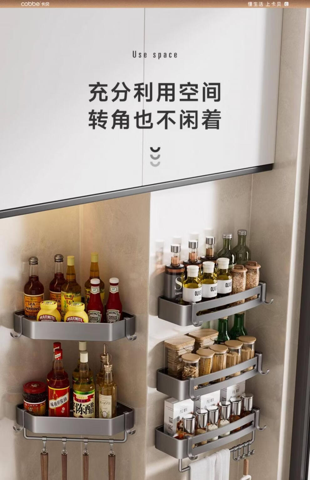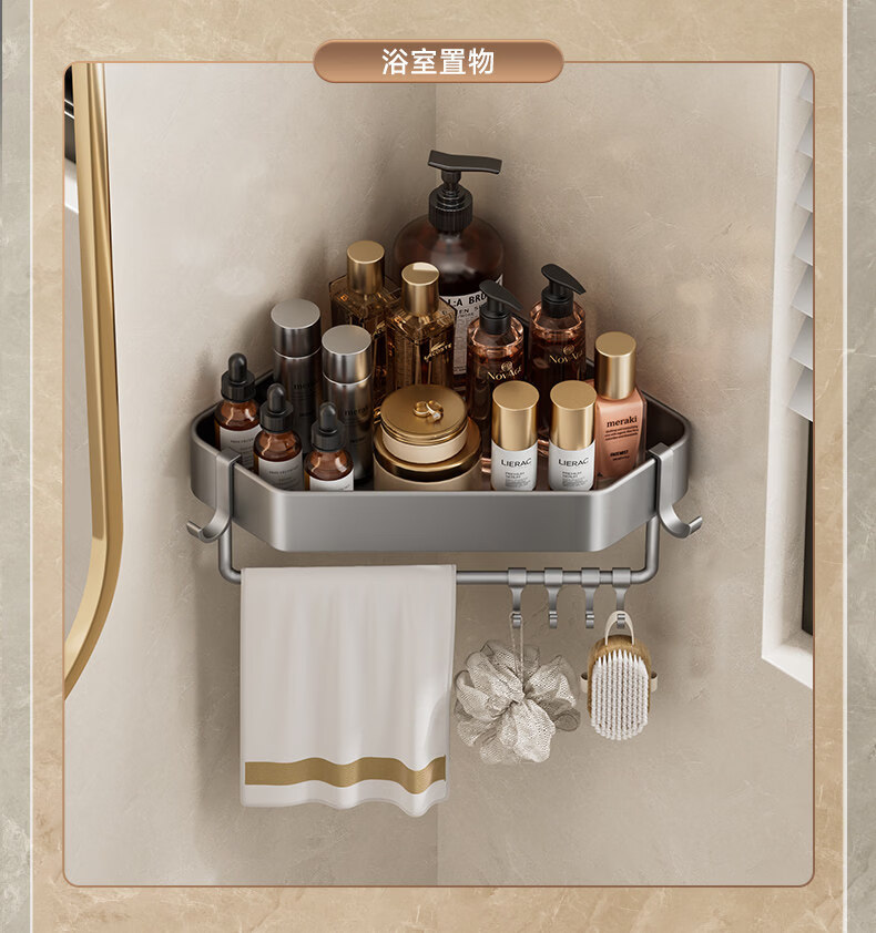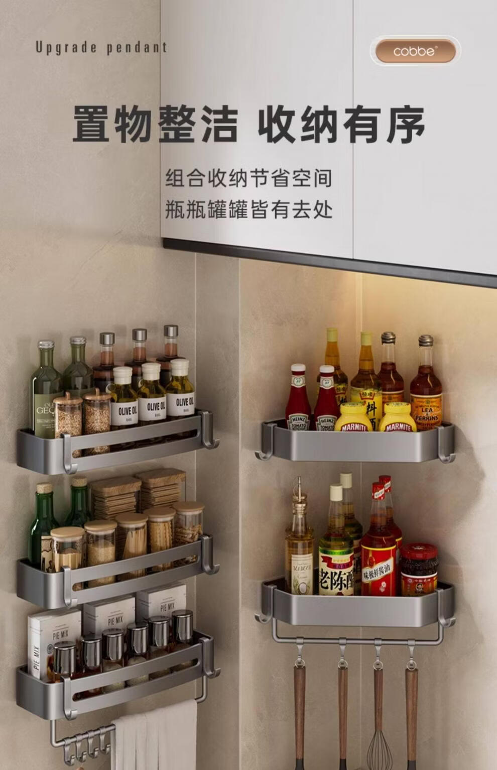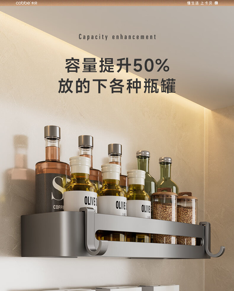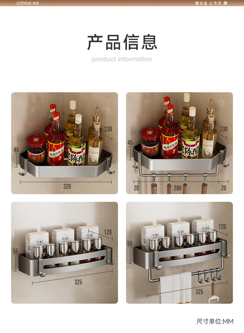 Kabei gun gray kitchen rack punched condiment storage shelf household wall-mounted wall condiment rack A4-single layer-diamond style with rod