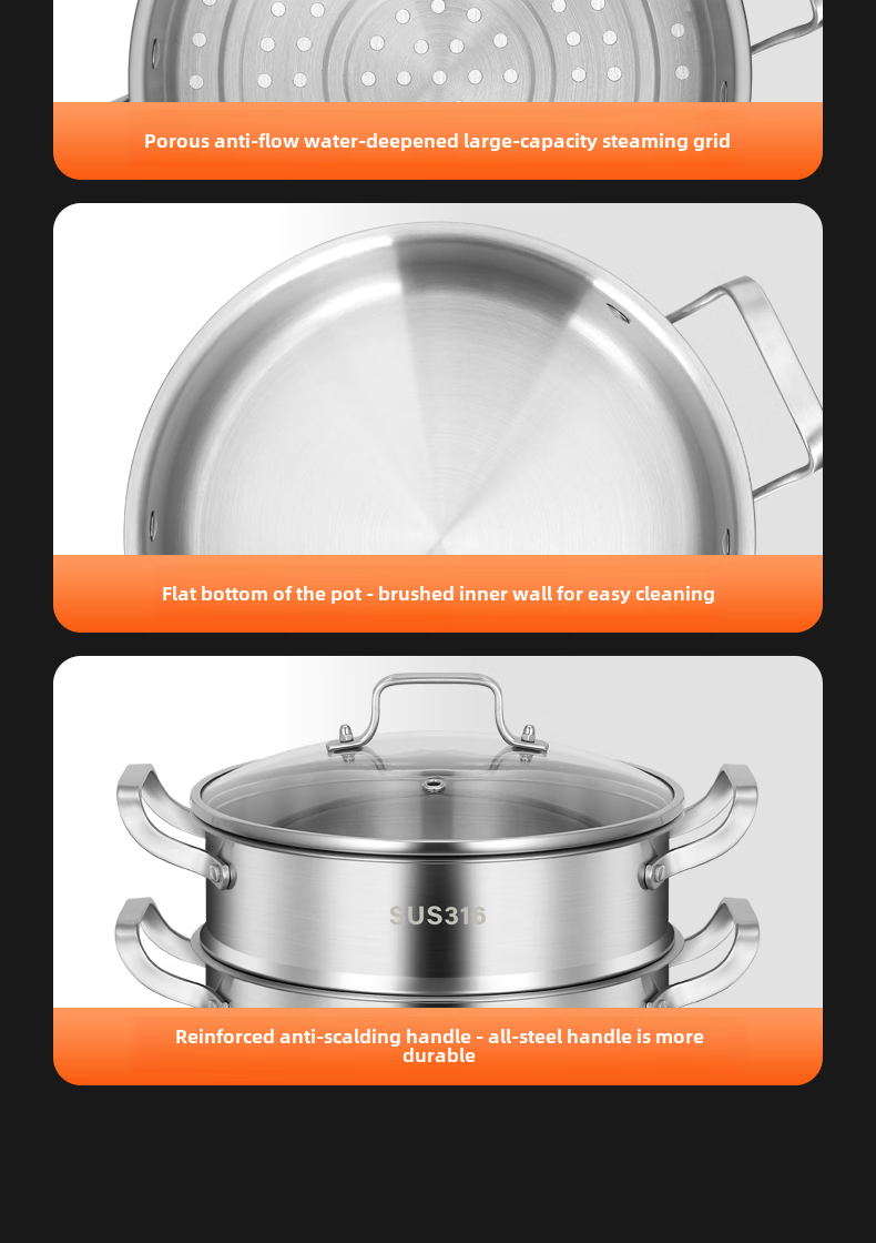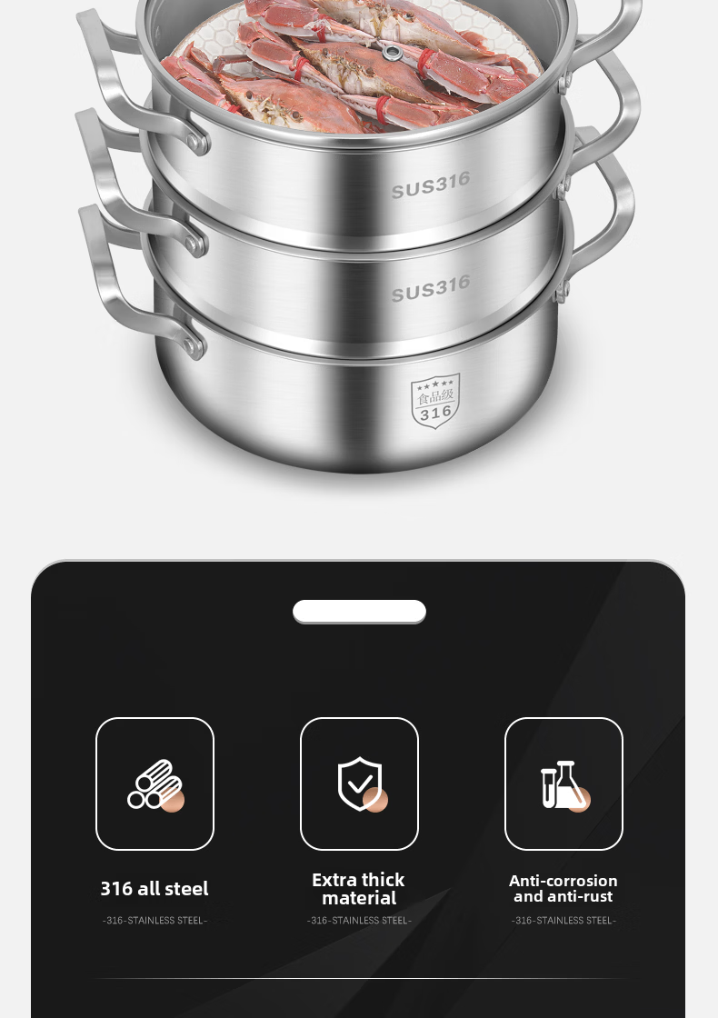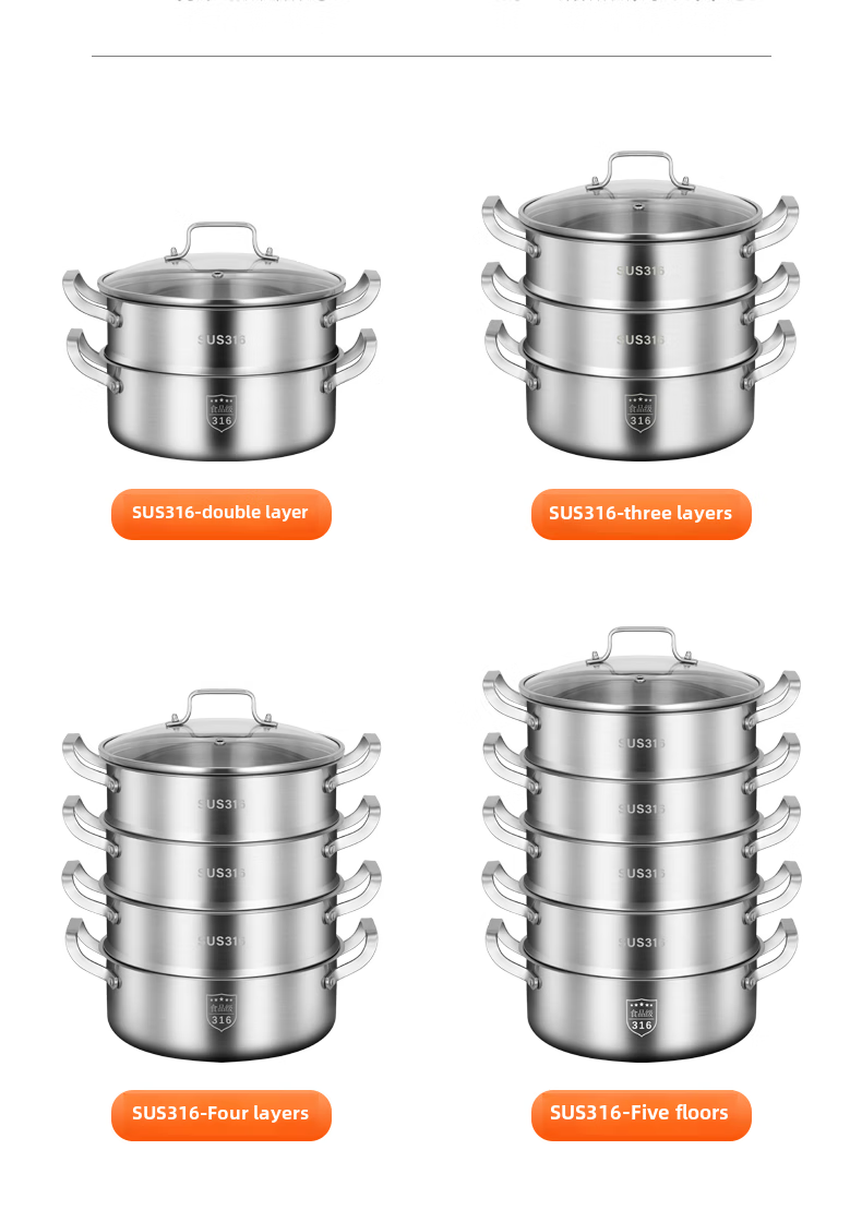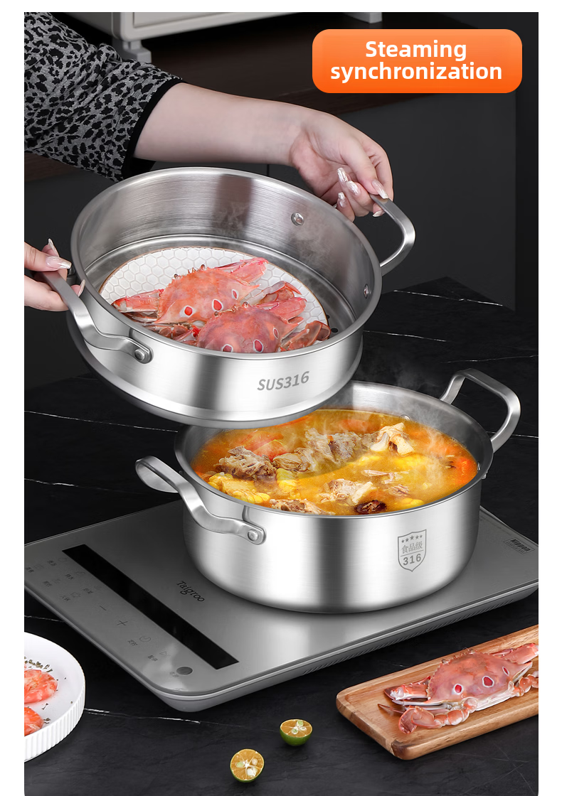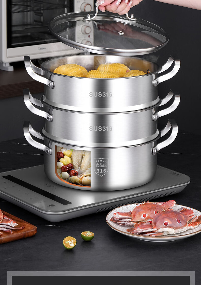 Tuojin German imported quality 316 stainless steel three-layer steamer thickened household 3-layer 2 steamer multi-layer induction cooker for steamed buns 3 extra thick 316 stainless steel two layers_one bottom pot, one steaming grid and one lid 26cm free gift