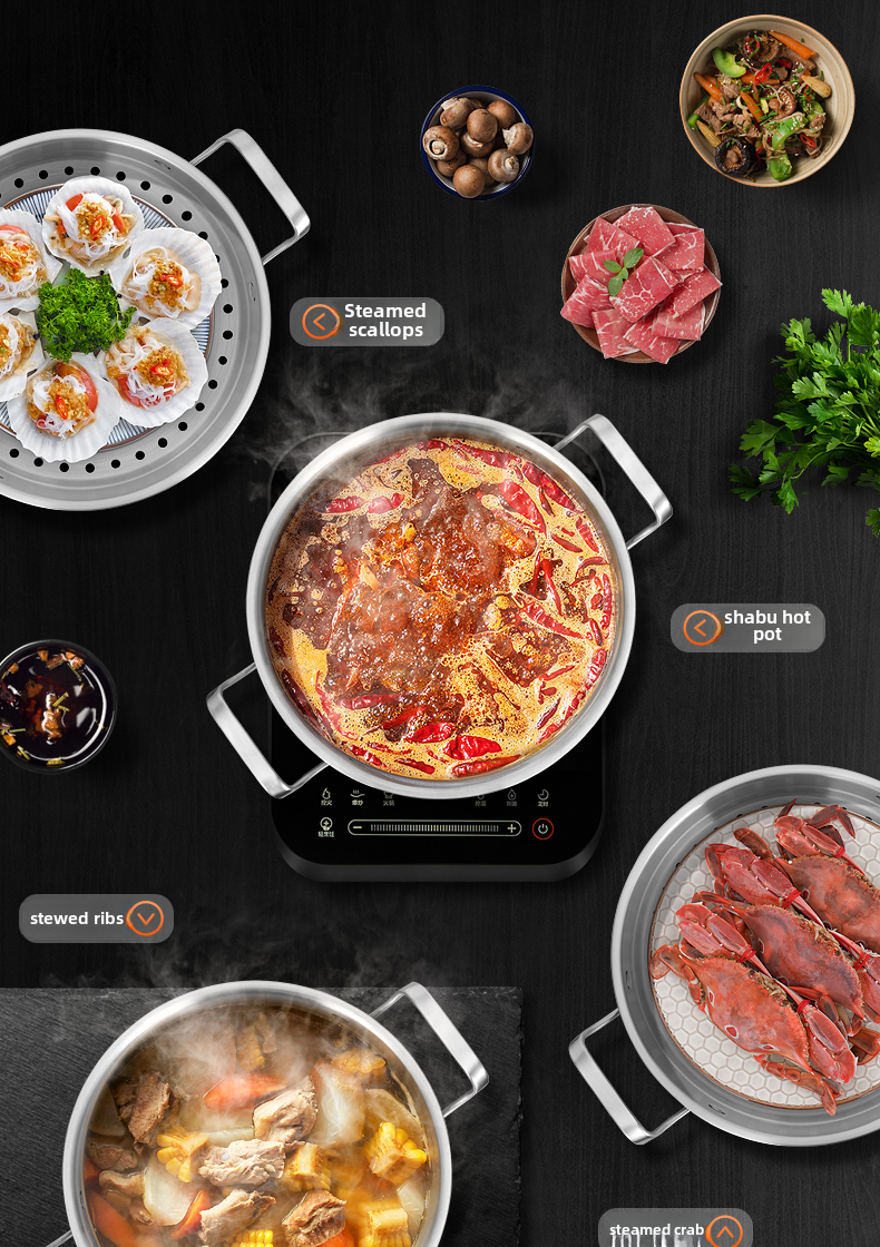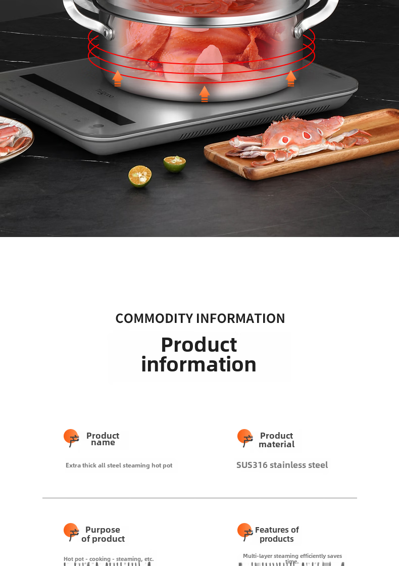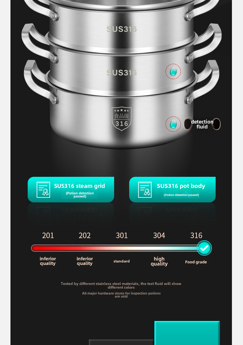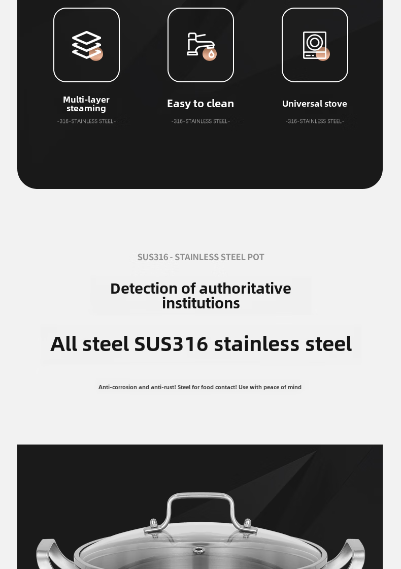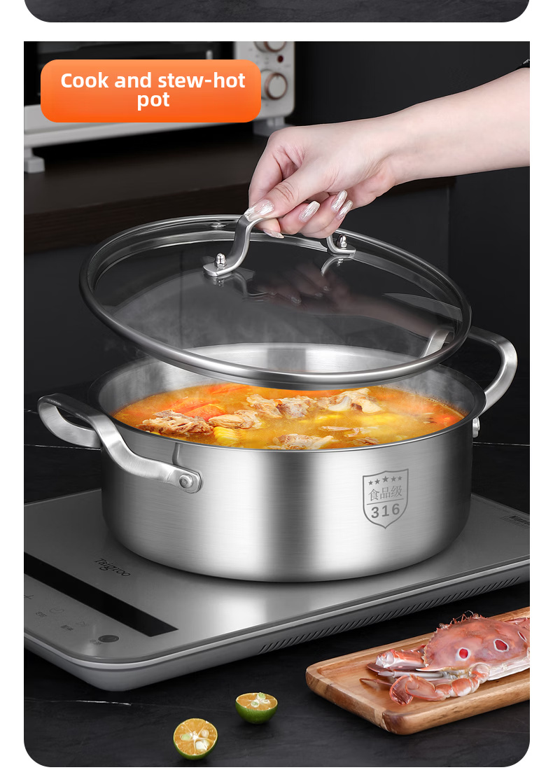 Tuojin German imported quality 316 stainless steel three-layer steamer thickened household 3-layer 2 steamer multi-layer induction cooker for steamed buns 3 extra thick 316 stainless steel two layers_one bottom pot, one steaming grid and one lid 26cm free gift