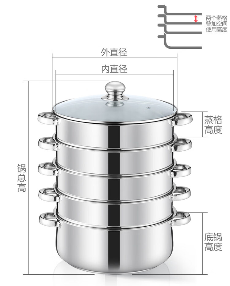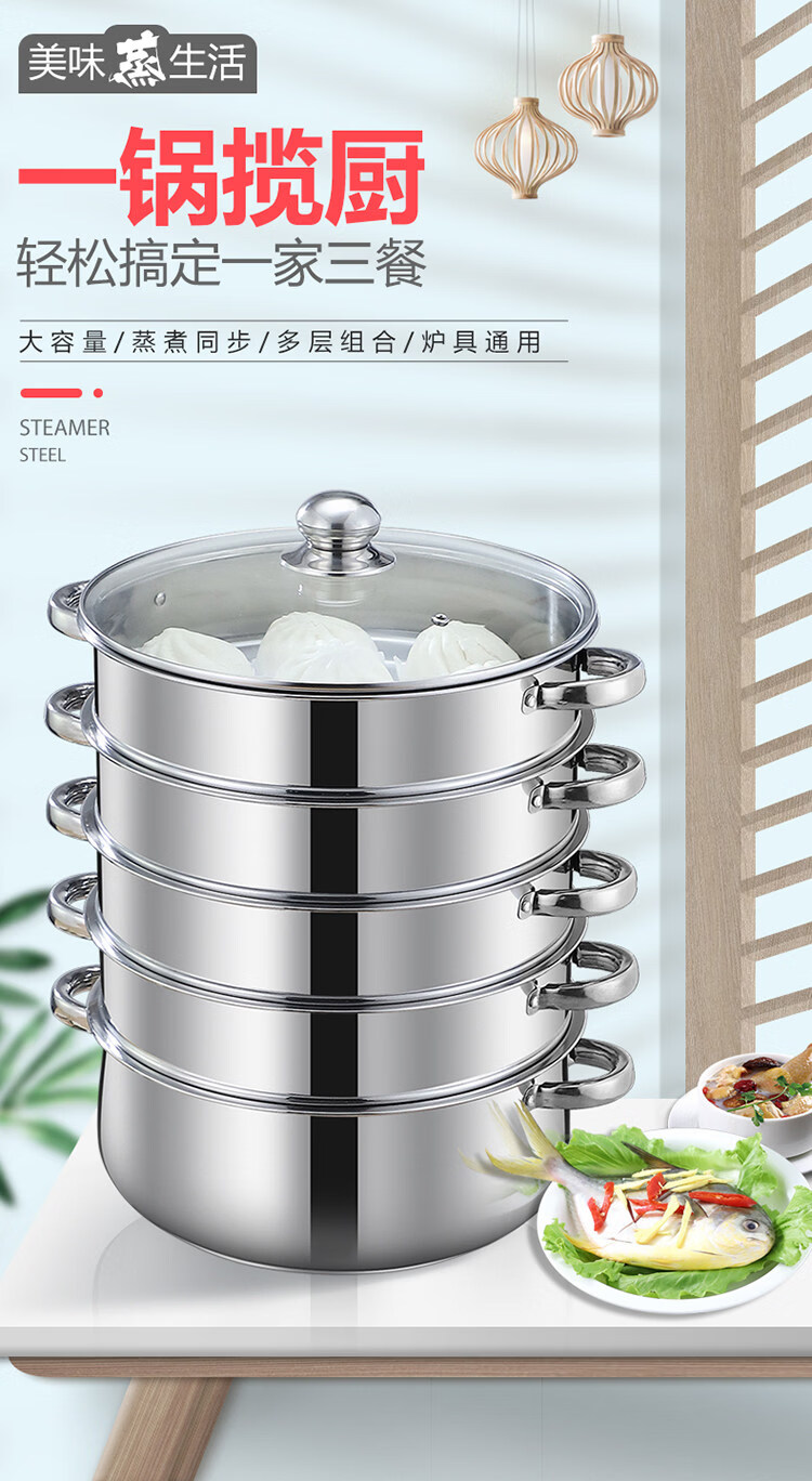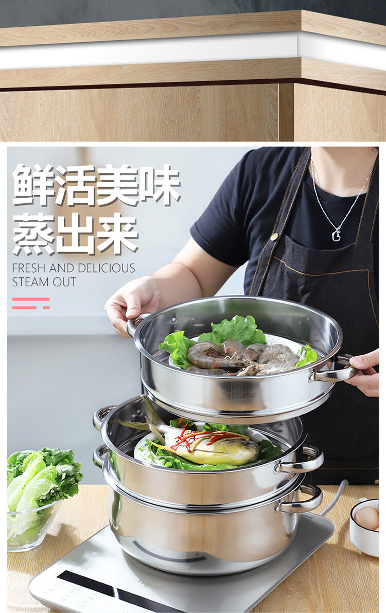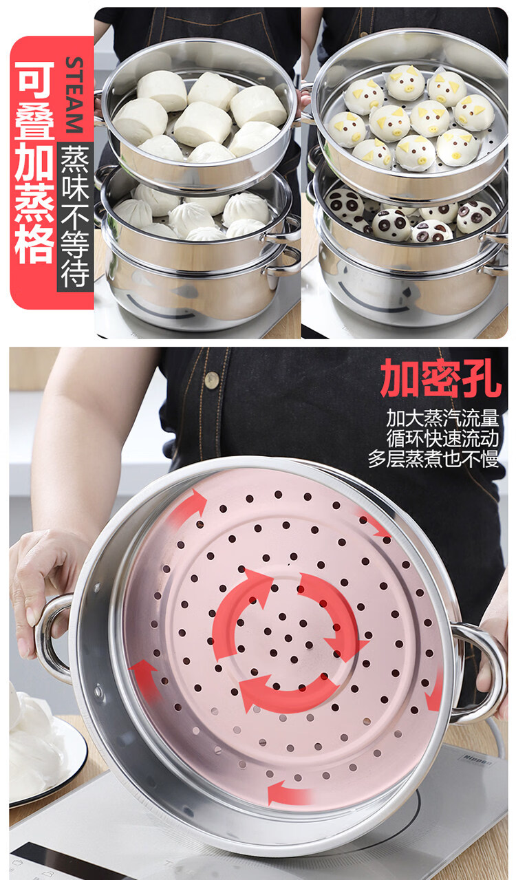 Tuojin German imported quality 28-40cm stainless steel steamer household large steamer commercial five-layer 3-4 layers three-layer multi-layer bottom thickening 4 layers 1cm 30cm
