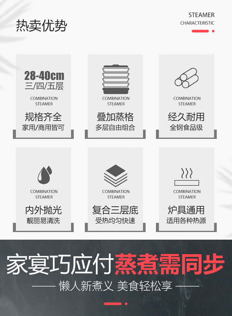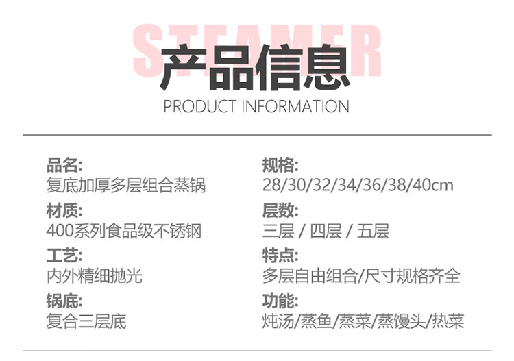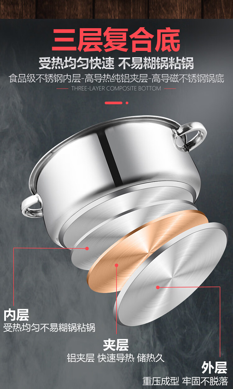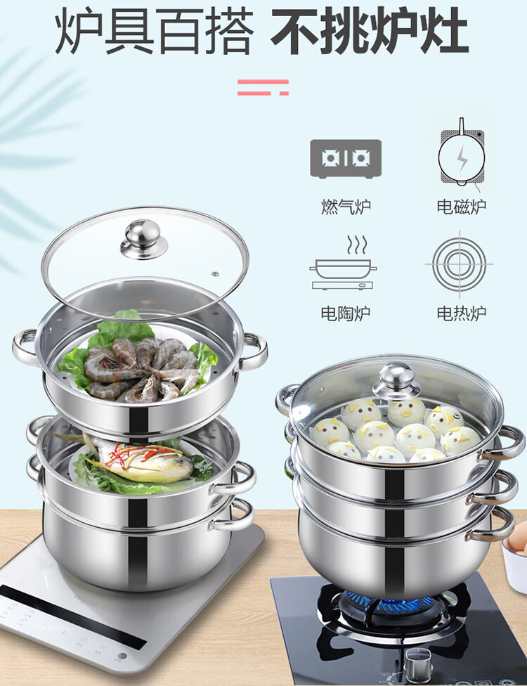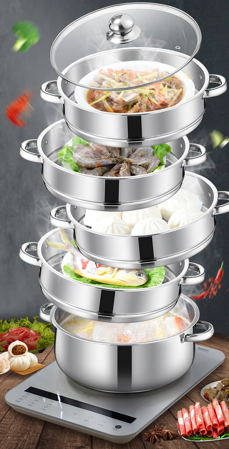 Tuojin German imported quality 28-40cm stainless steel steamer household large steamer commercial five-layer 3-4 layers three-layer multi-layer bottom thickening 4 layers 1cm 30cm