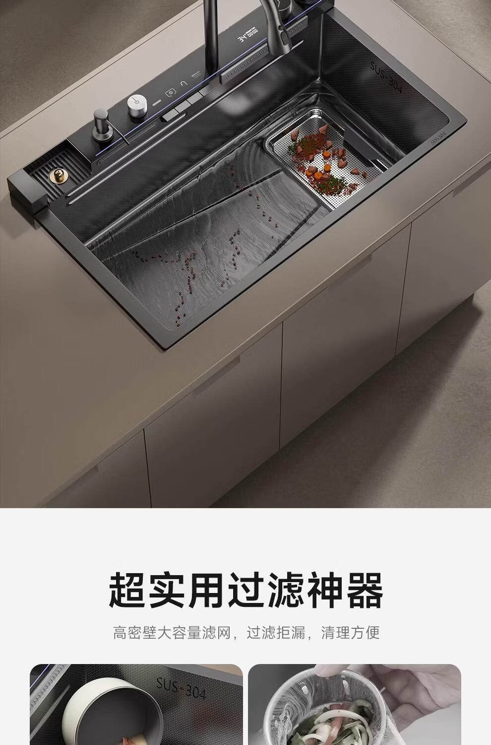 ARROW large single-tank 304 stainless steel sink thickened kitchen sink large size honeycomb embossed 6845 gun gray (ordinary style) 4MM honeycomb embossed