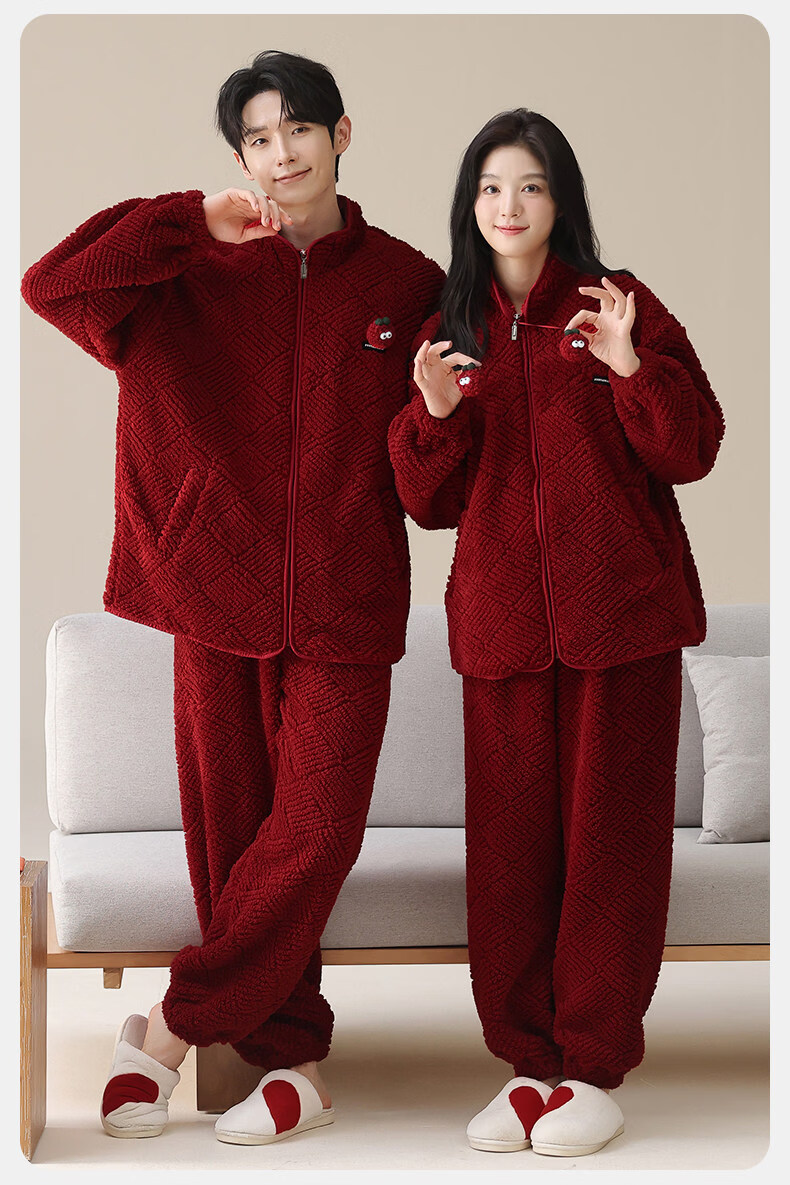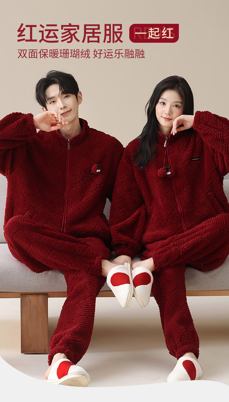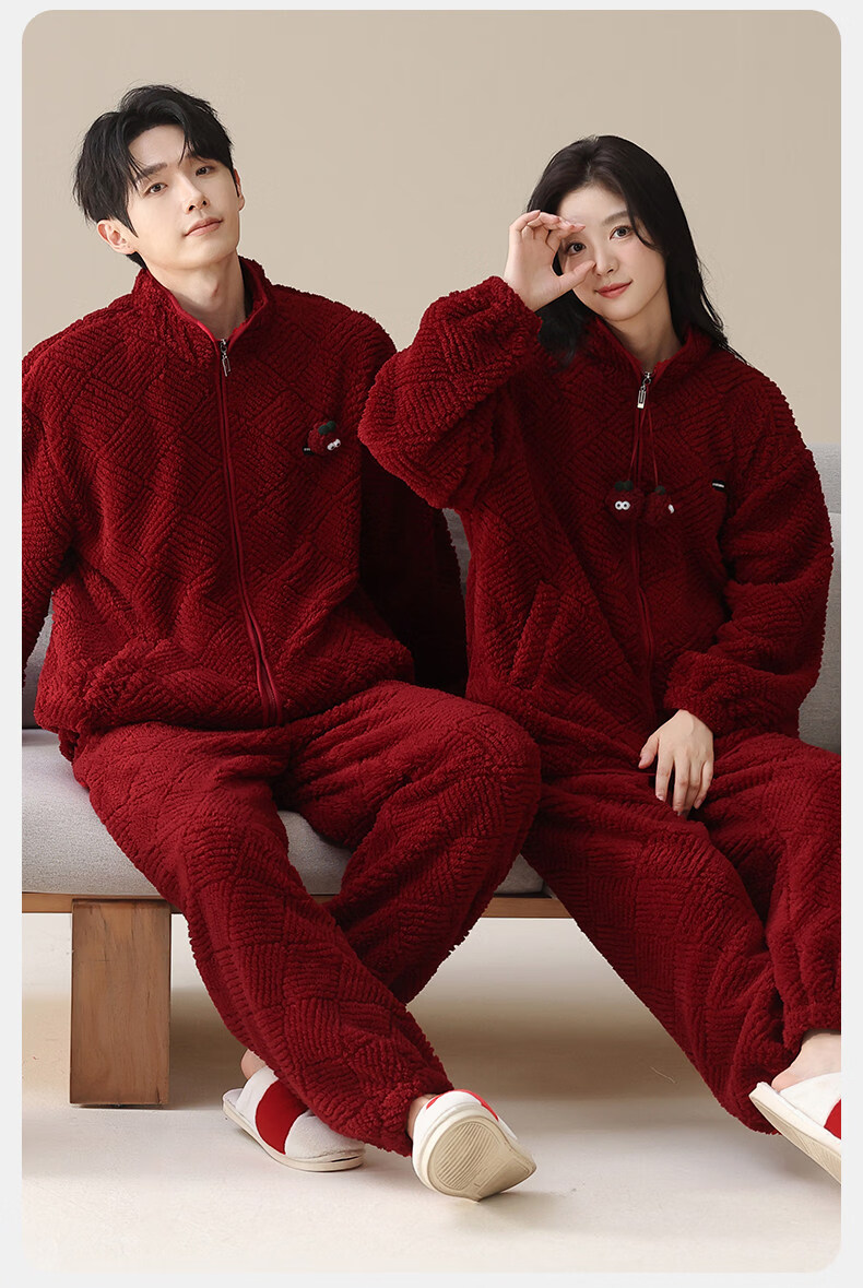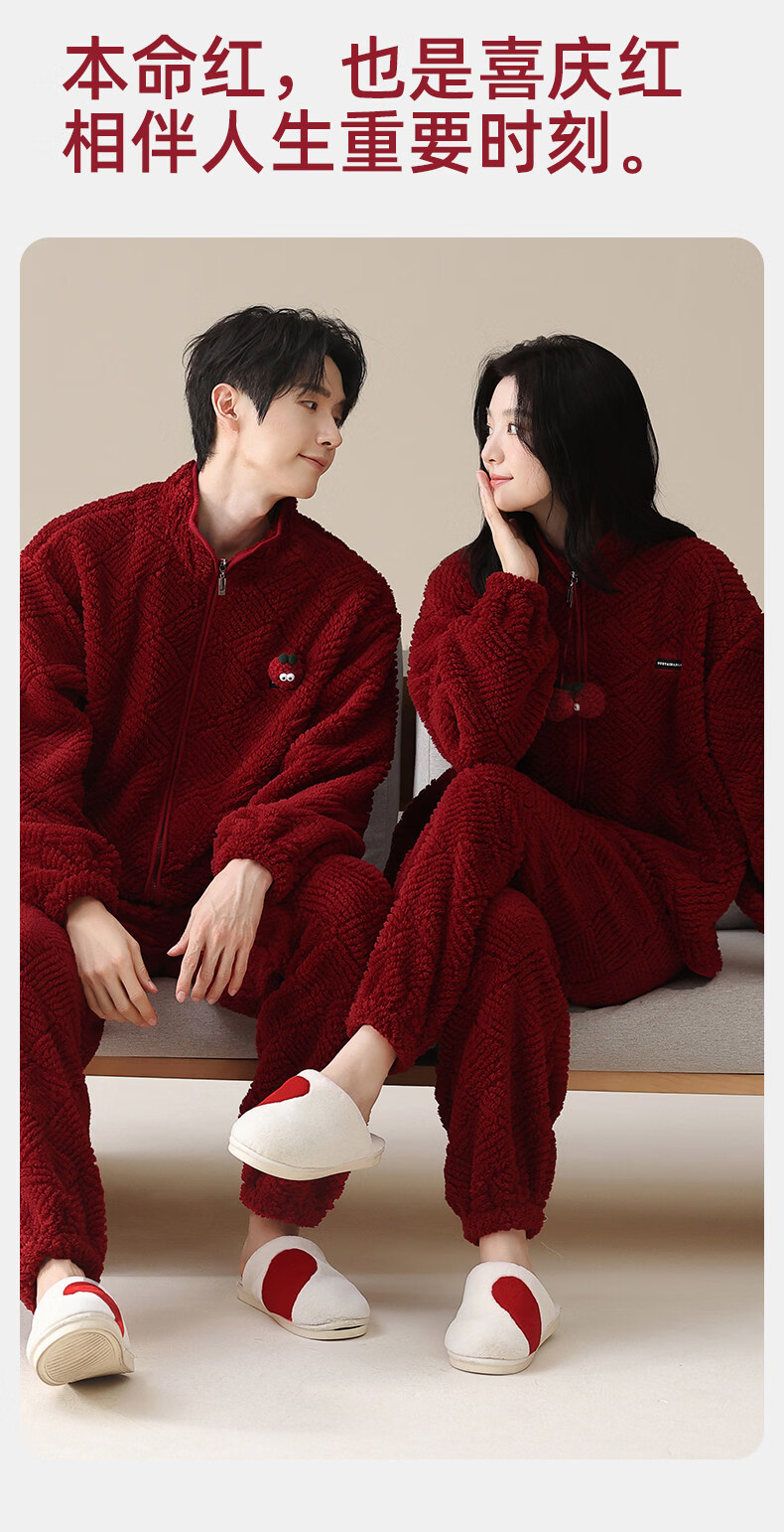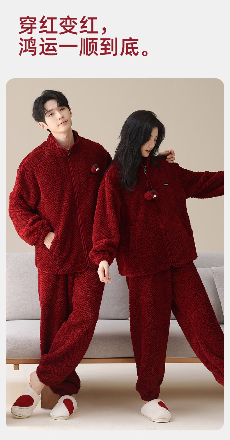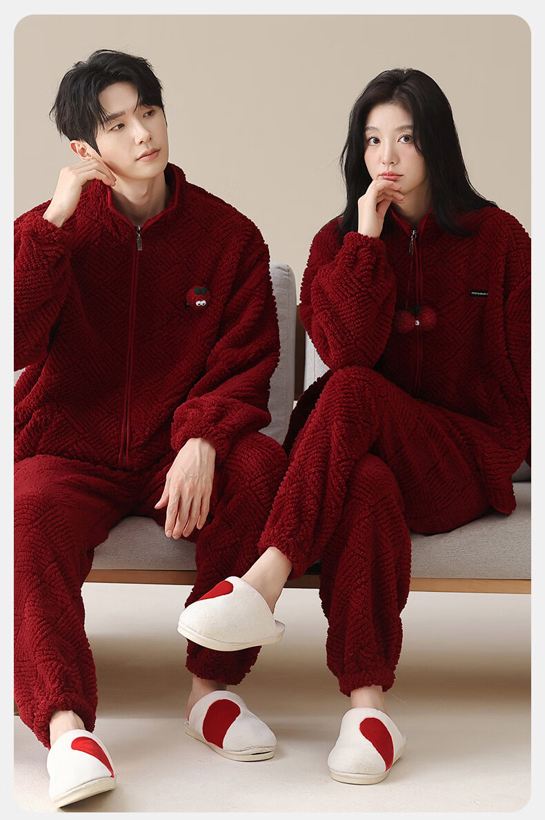 MiiOW Coral Fleece Couple Pajamas Women's Winter Thickened Warmth New Year's Eve Red Wedding Home Clothes Set, Love each other, Thickened Flannel, Warm at Home/Can be Weared Outside 2XL - Women's Recommended About 170-178c140-