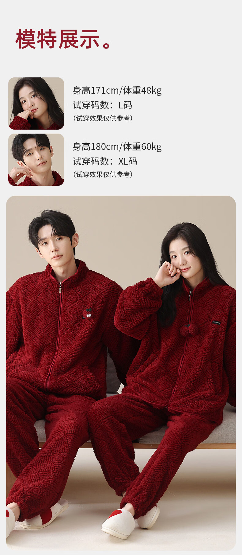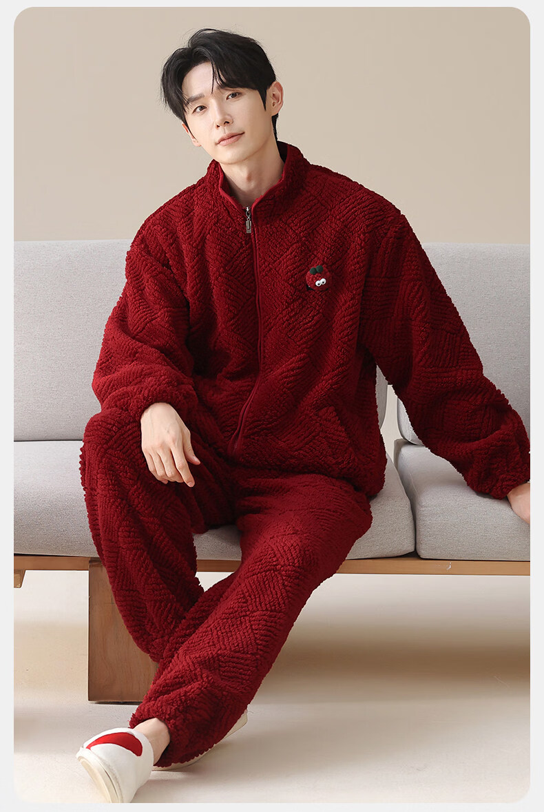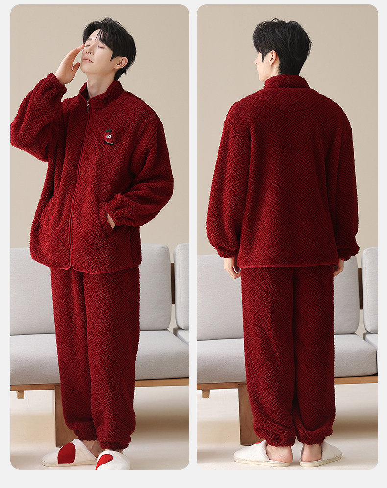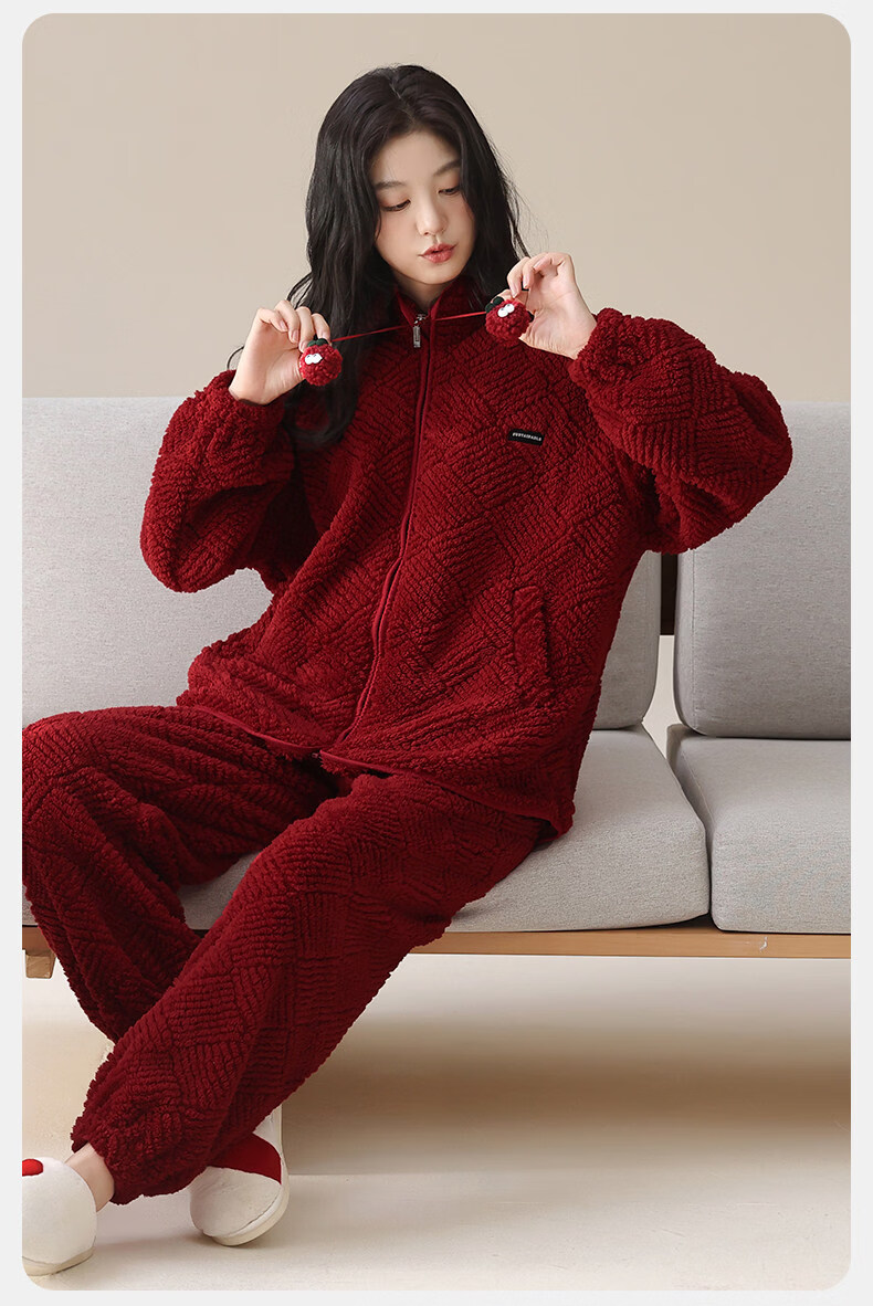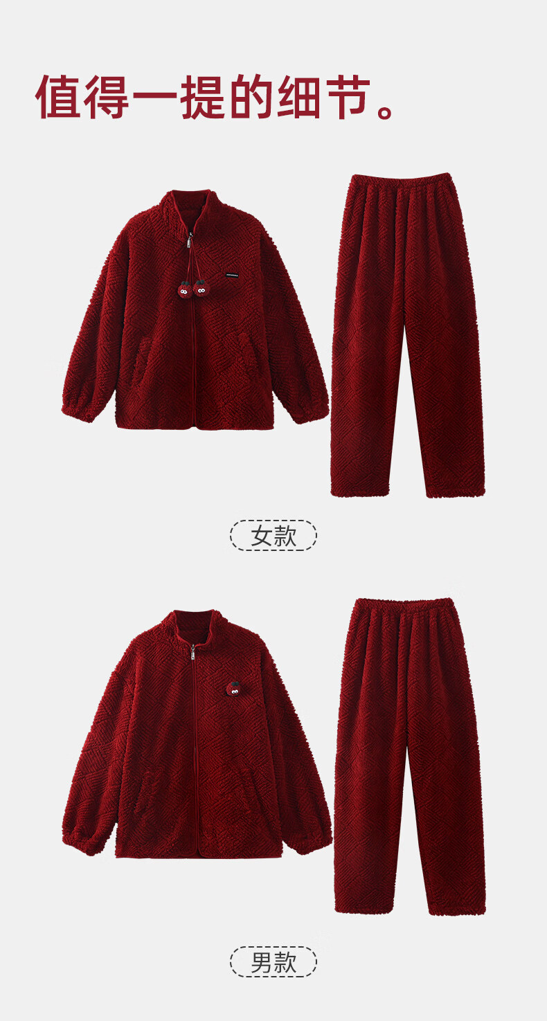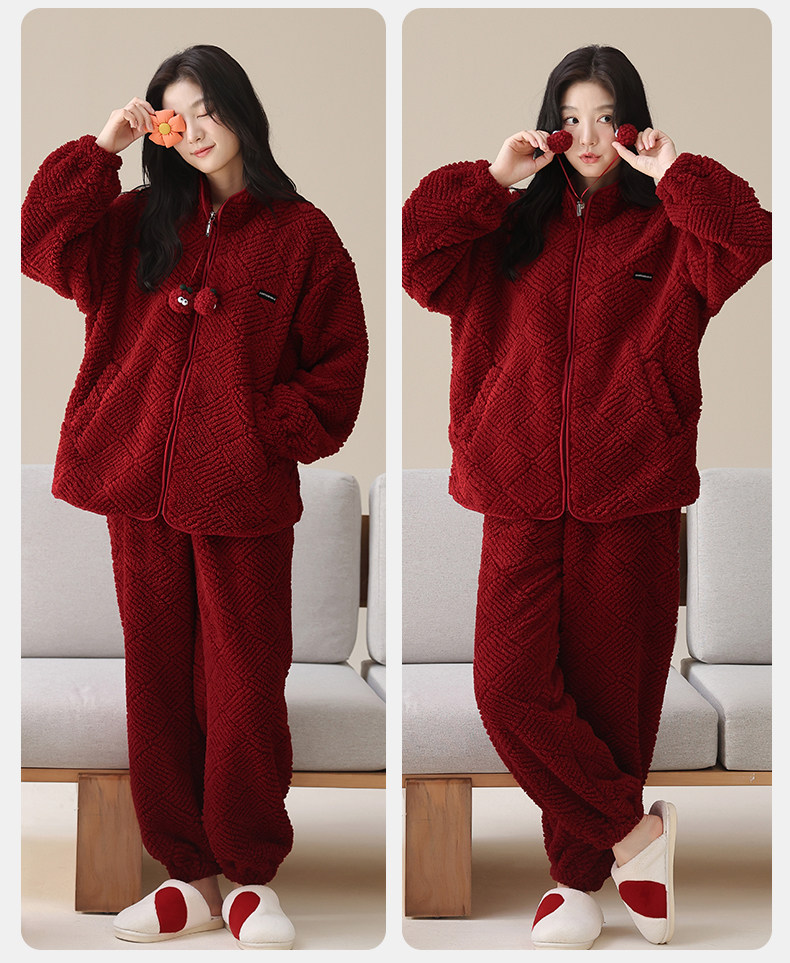 MiiOW Coral Fleece Couple Pajamas Women's Winter Thickened Warmth New Year's Eve Red Wedding Home Clothes Set, Love each other, Thickened Flannel, Warm at Home/Can be Weared Outside 2XL - Women's Recommended About 170-178c140-